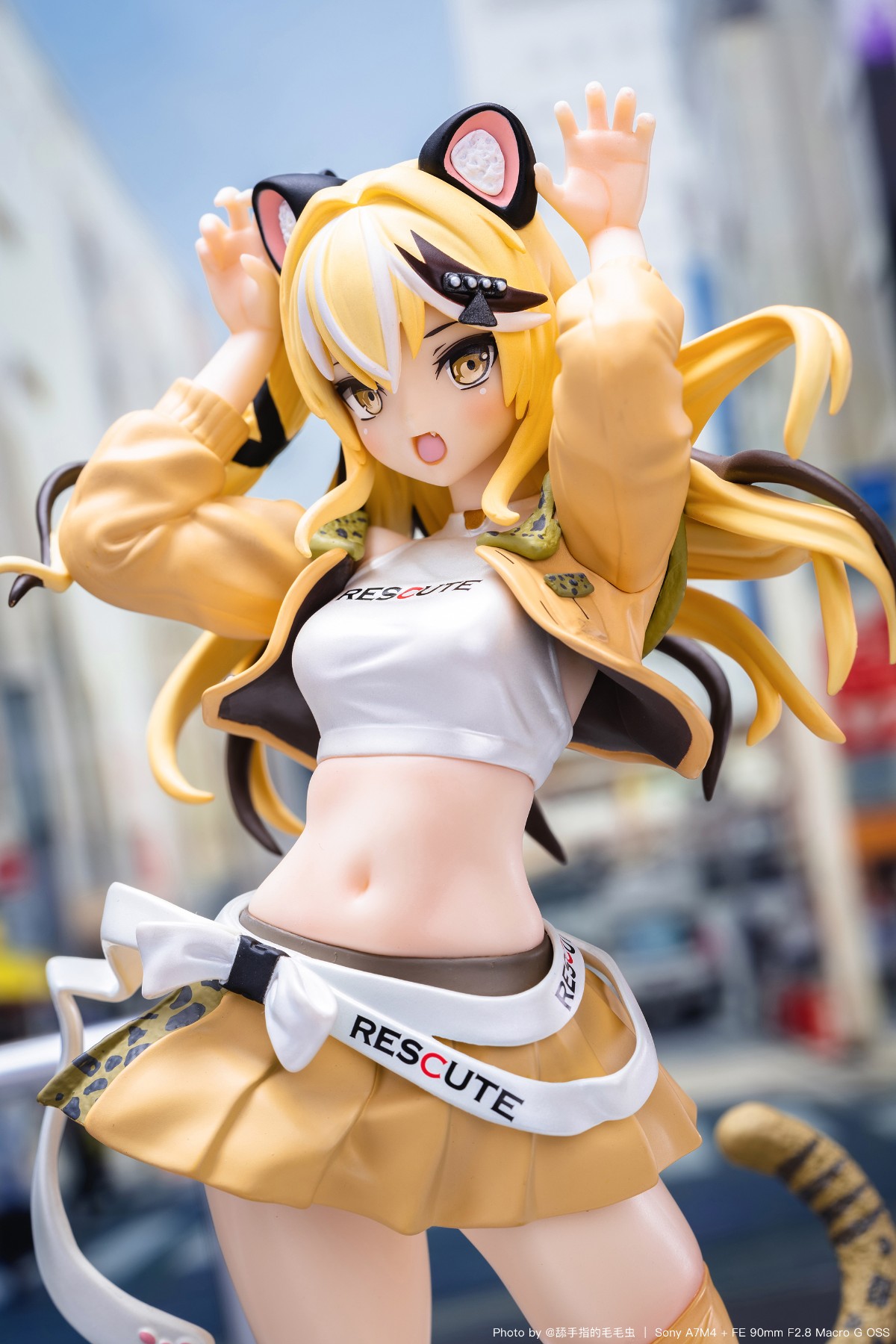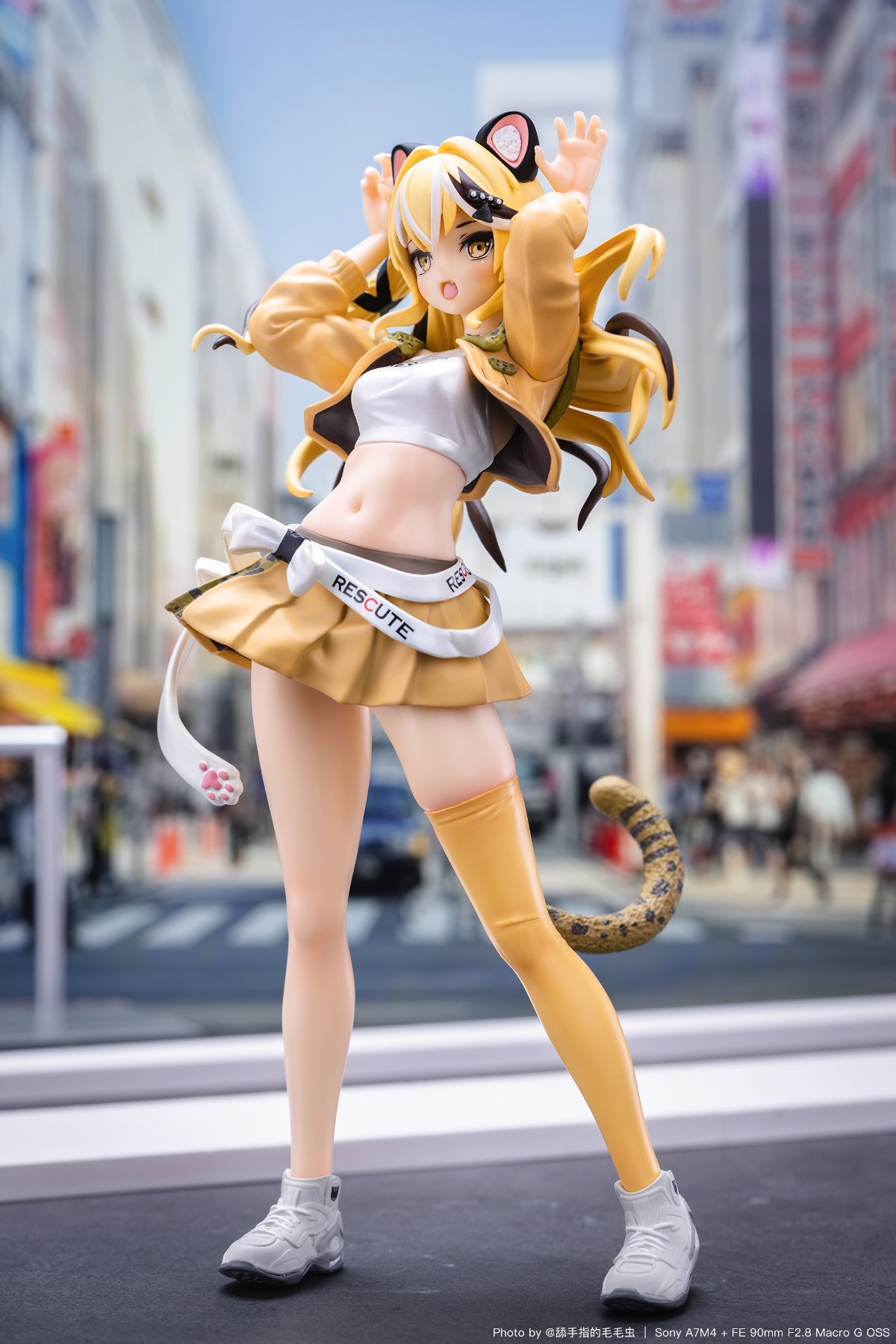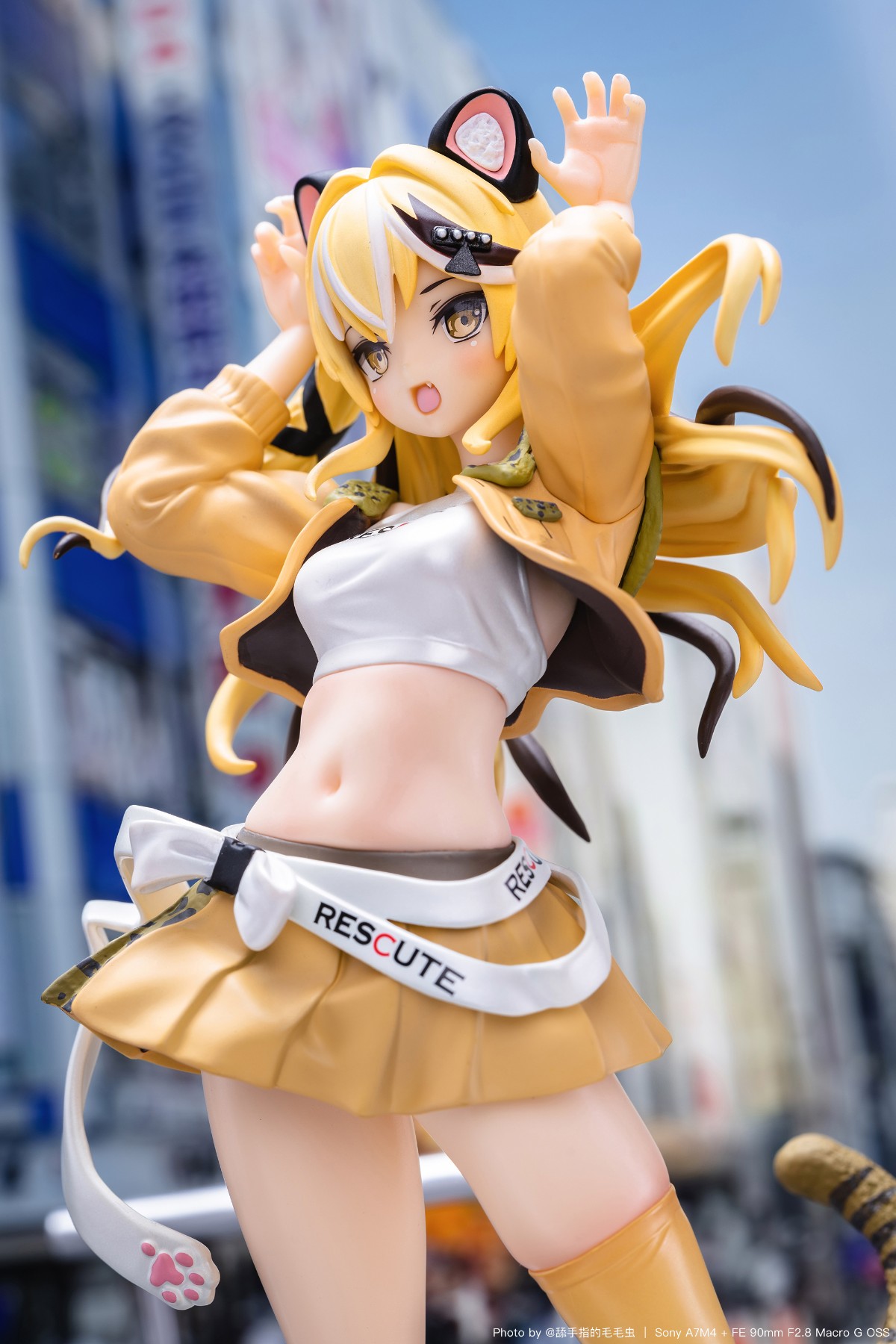 造型比原作里的要潮不少,服设算是有点小心思,紧身露背上衣,超短裙,黄色条纹碗,单腿袜+小肉腿,色气的小肚子,专戳xp