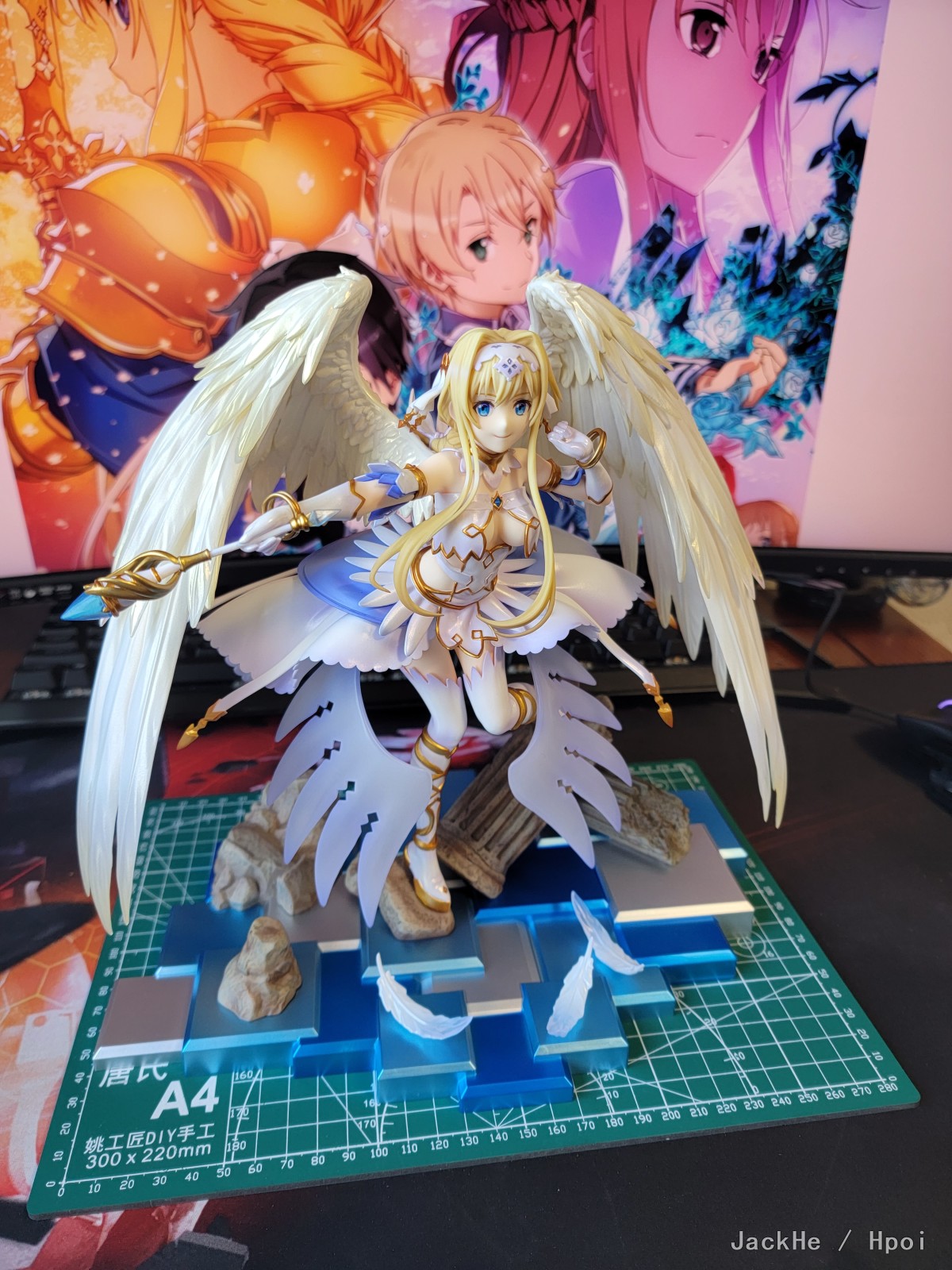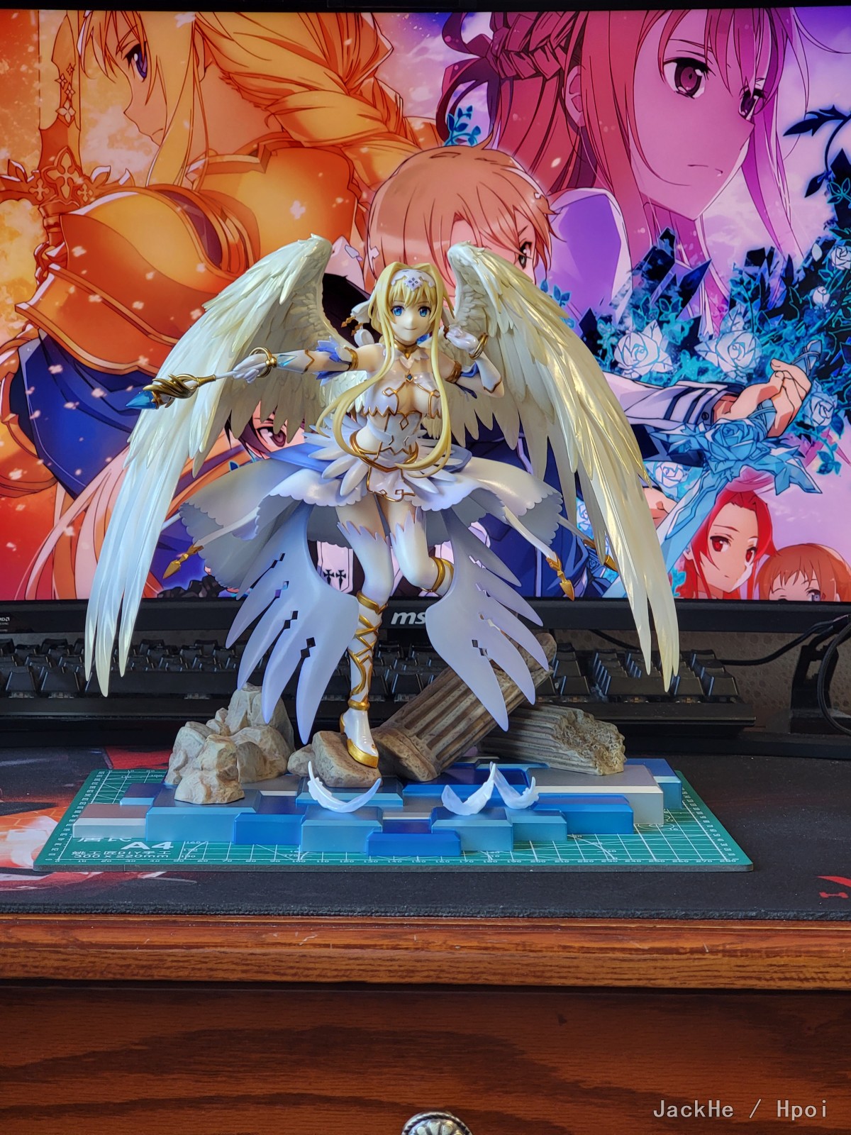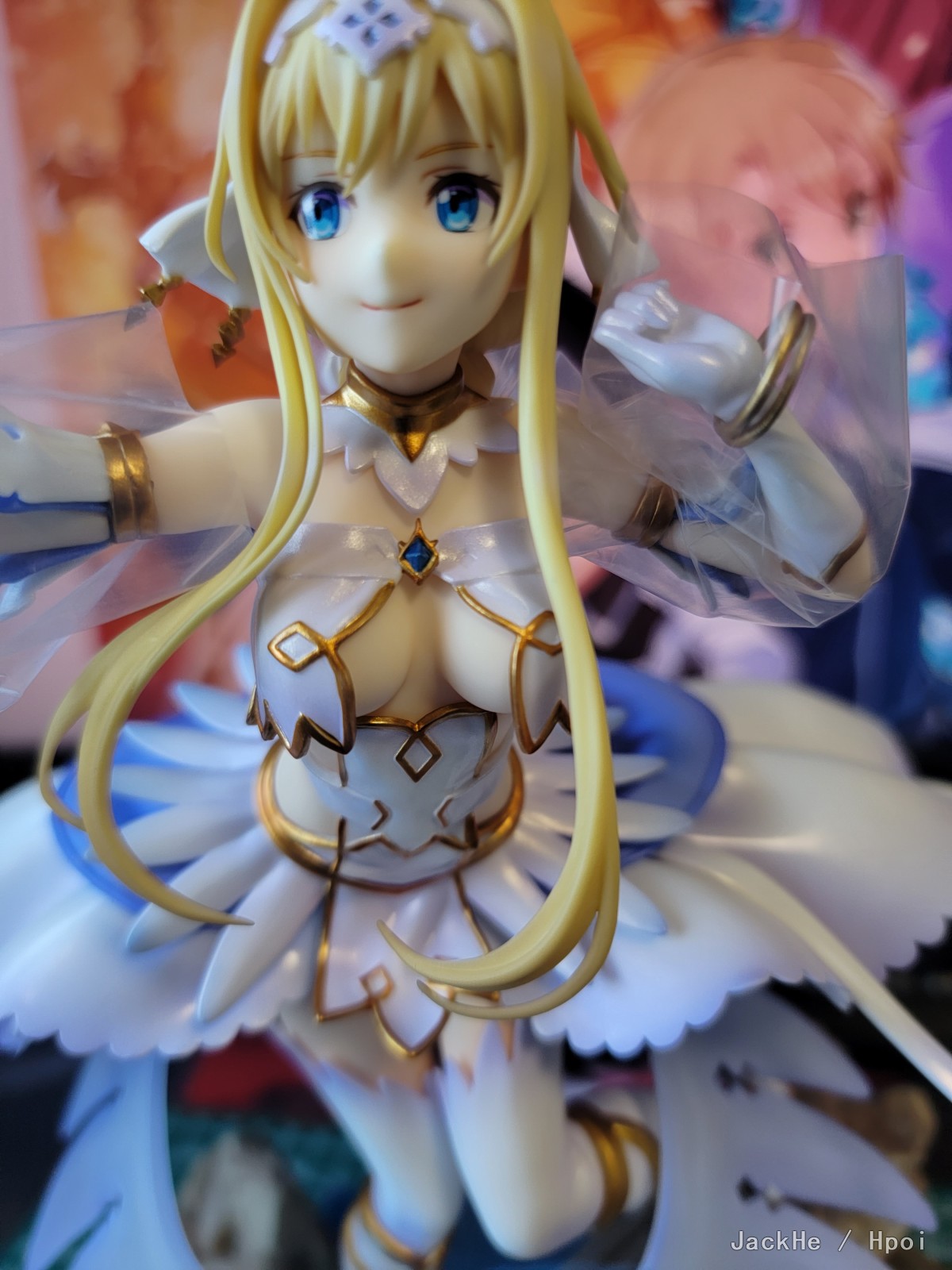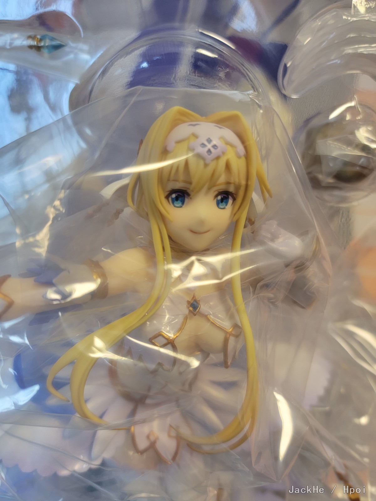 虽然去年就已经收到家里了,但是今天才拿出来开箱。 先说结论,个人认为勉勉强强令人满意,主要在于: 1.角度过于限定,我已经尽量贴近官图角度摆放,不过脸部仍显过于婴儿肥。尤其是脸部的起伏过于公式化,在某些角度会非常怪异(具体请看手机拍摄的部分)。这也是为什么这次主图只有两张,因为我实在是找不到其他好看的角度了(可能是我个人能力有限) 2.涂装过于草率,胸前的宝石,金线尤其明显,有严重的溢色问题。主图第一张左手臂环部分的颗粒感非常严重,感觉是没有仔细修正边缘以及颜料滞涩的问题(当然也有可能是我中奖了,这个还是看具体情况) 综合这两点,以及这个手办的价格(我是当了原价战士1659在叔叔家入的),总体只能说是差强人意。 (前三张相机拍摄,后面手机拍摄) 当时开箱刚看到面部的时候心里真的咯噔一下,但是因为是心爱的角色,就还是拆开了,具体如何大家自有评说吧。
