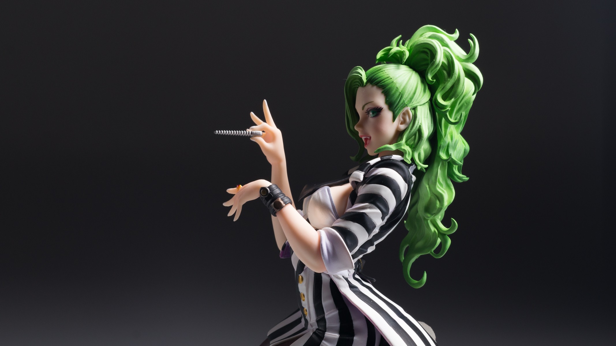 原作中标志性的的黑白条纹燕尾服当然也还原了,只不过变成了抹胸的款式。