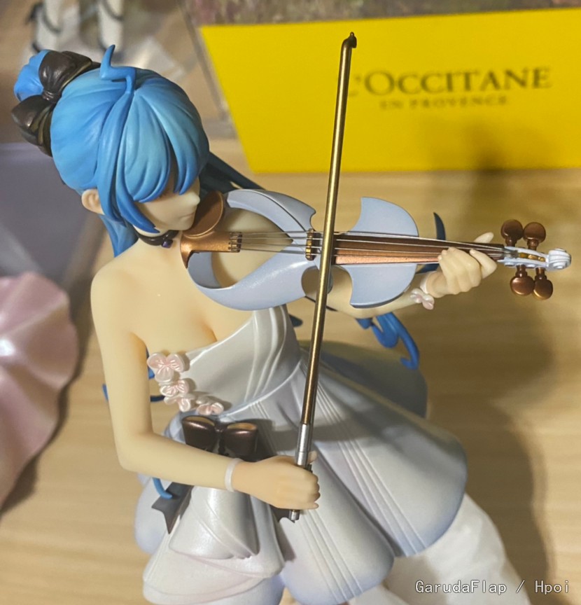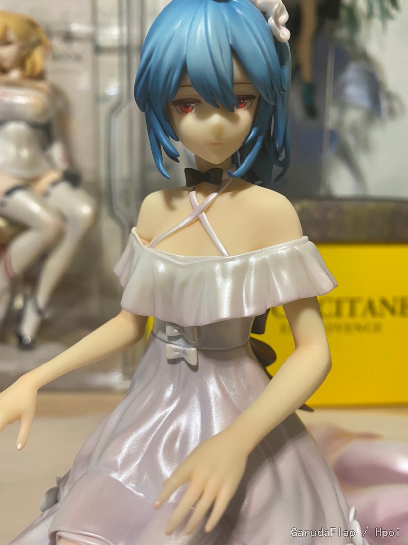 手办的面向见仁见智,我个人觉得22的闭眼脸实物看起来效果比照片包括官图都更加舒服,头发的表现有点肉。总的来说,相较于底座,人物的表现只能说勉强不拖后腿。不过这也很好理解,就这价位,底座每多一分投入人物都要少一点预算。