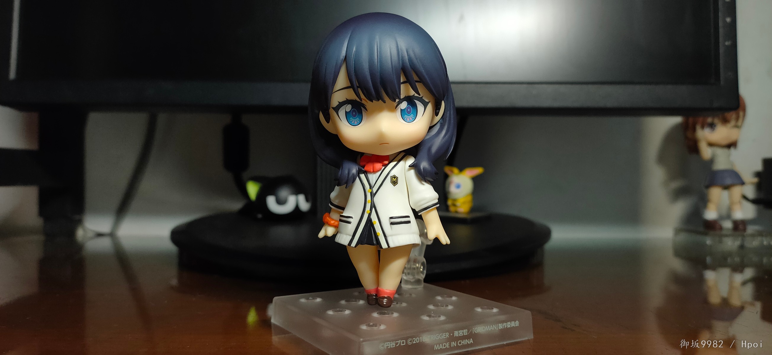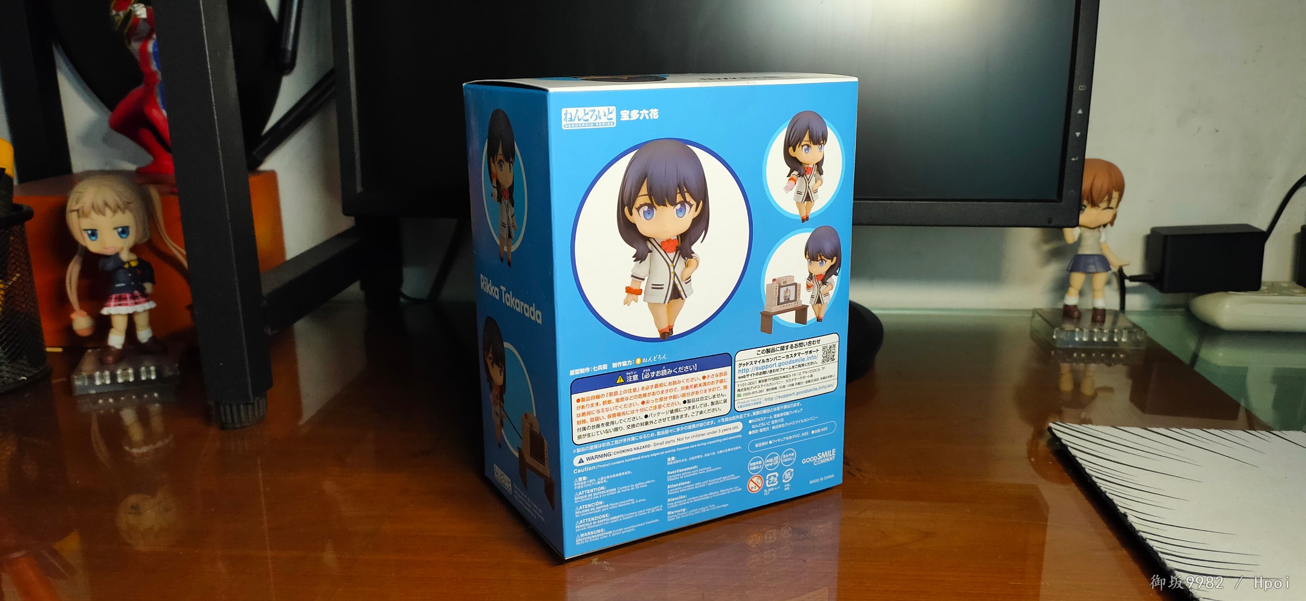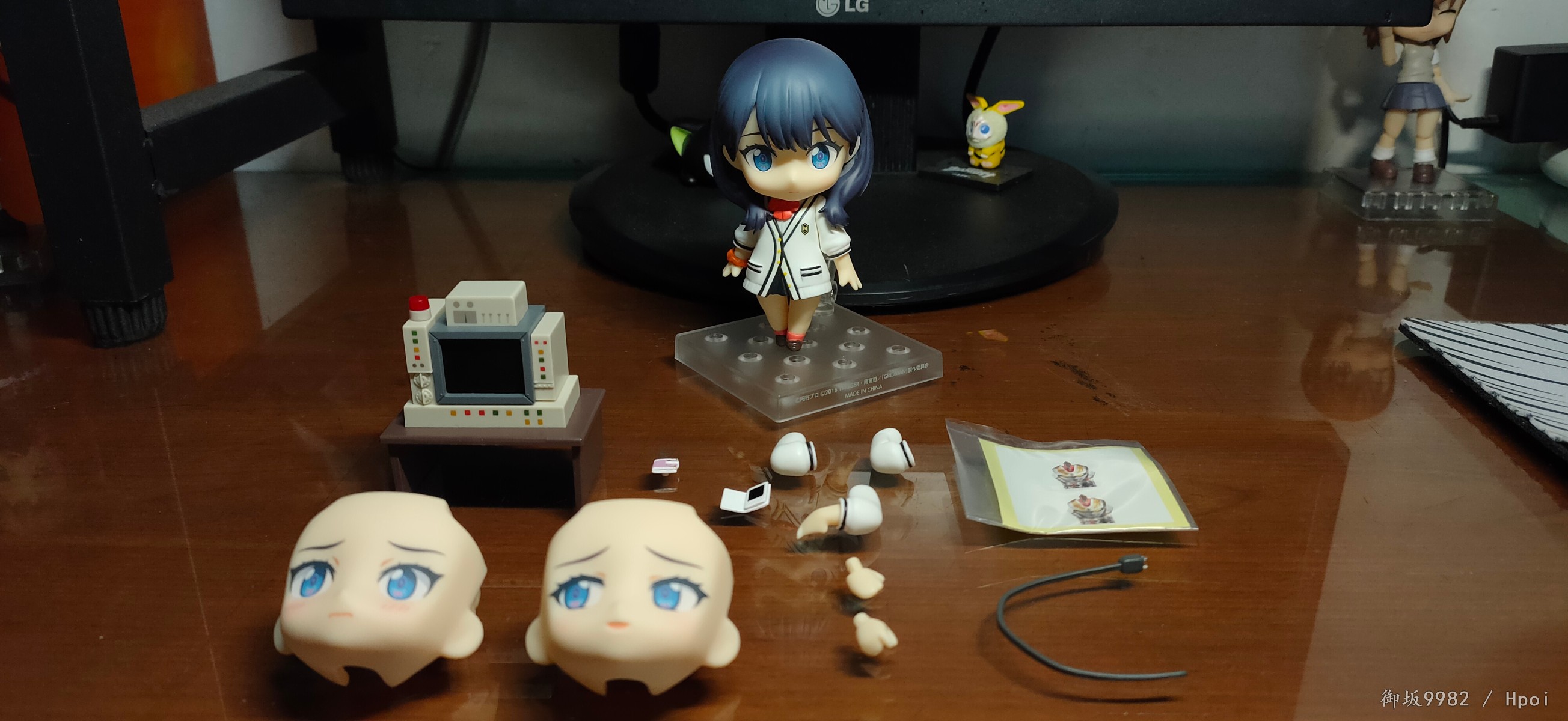 说回玩具,宝多六花的人物形象最大的特征应该就是两条大白腿了,加上修长的身材及过腰的黑发,还有沉默寡言的性格,妥妥的黑长直(゚▽゚)/。粘土人在这里也很好的兼顾到了腿的造型,往常的可动关节在这里被修改为了小球关使得双腿在外形上看着更为完整,虽然牺牲了部分可动性但毕竟奸笑的普通粘土人本身也不指望关节能有多灵活,取舍也算挺成功的吧╮(╯▽╰)╭,但往上看的话,这款发型确实会对可动造成不少的阻碍;4s古利特的两部画风个人还是相当喜欢的,特别是人物眼睛的作画,感觉有种与众不同的精致感,而粘土人正好占了大眼睛好做细节的优势,双眸刻画的相当漂亮且还原,只是替换脸的表情感觉有点少了,如果能有一张开心脸就更好了(*≧∪≦)~配件不少,小显示器还可以自己diy换台ヽ(°∀°)ノ和茜搭配起来也很有趣,有点意难平的就是目前还没消息出粘土人的南梦芽和麻中蓬...