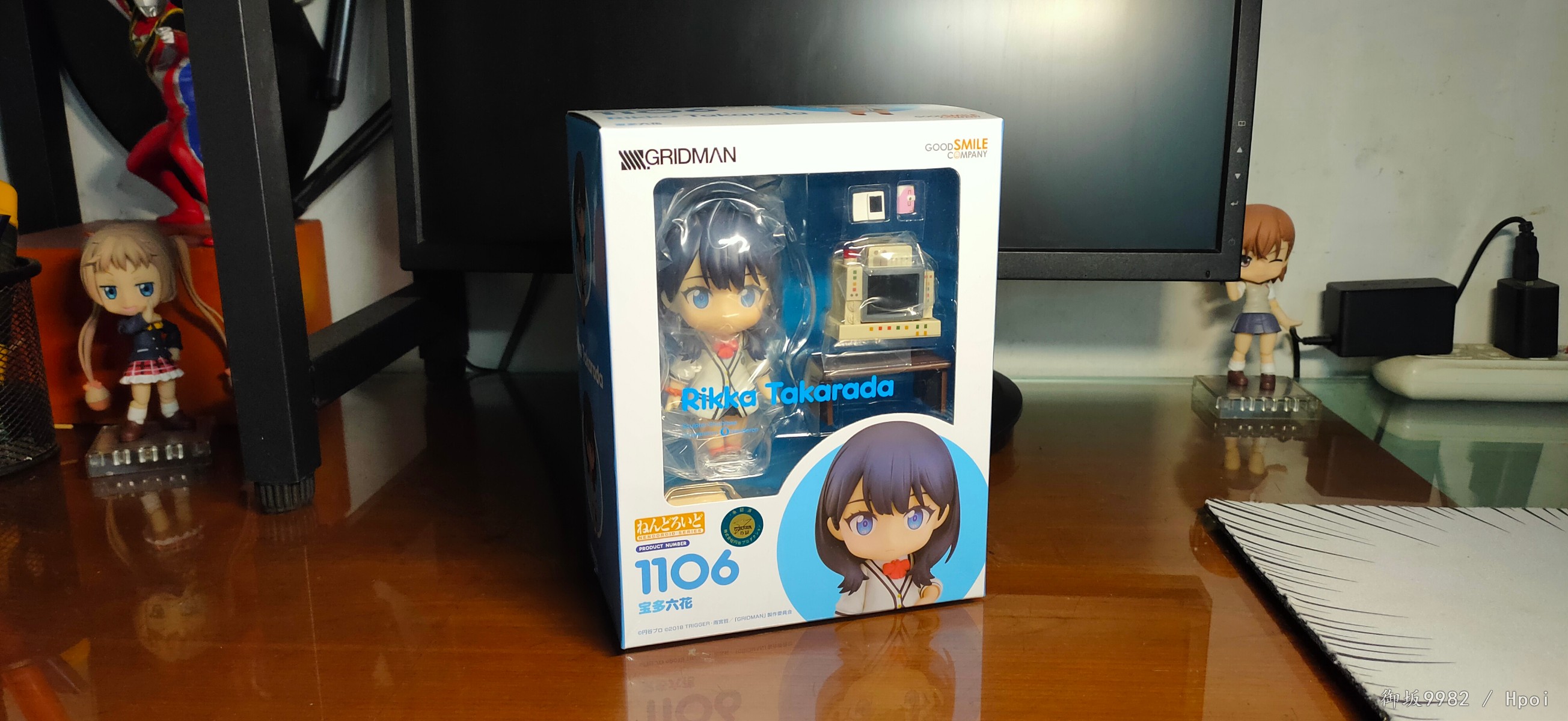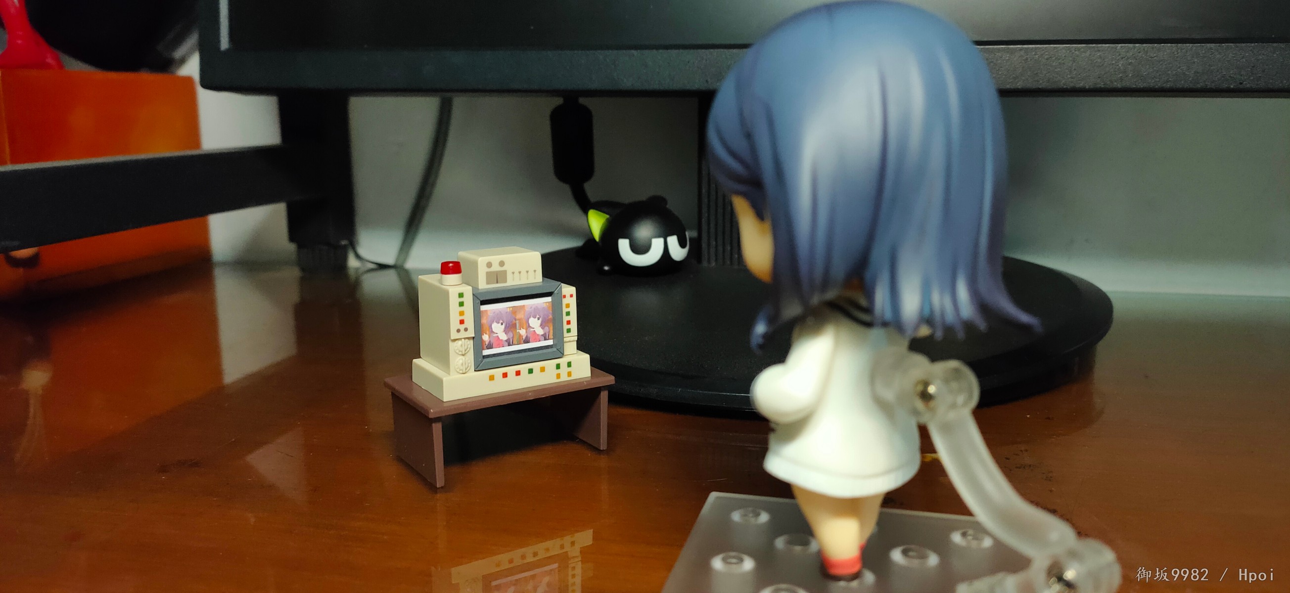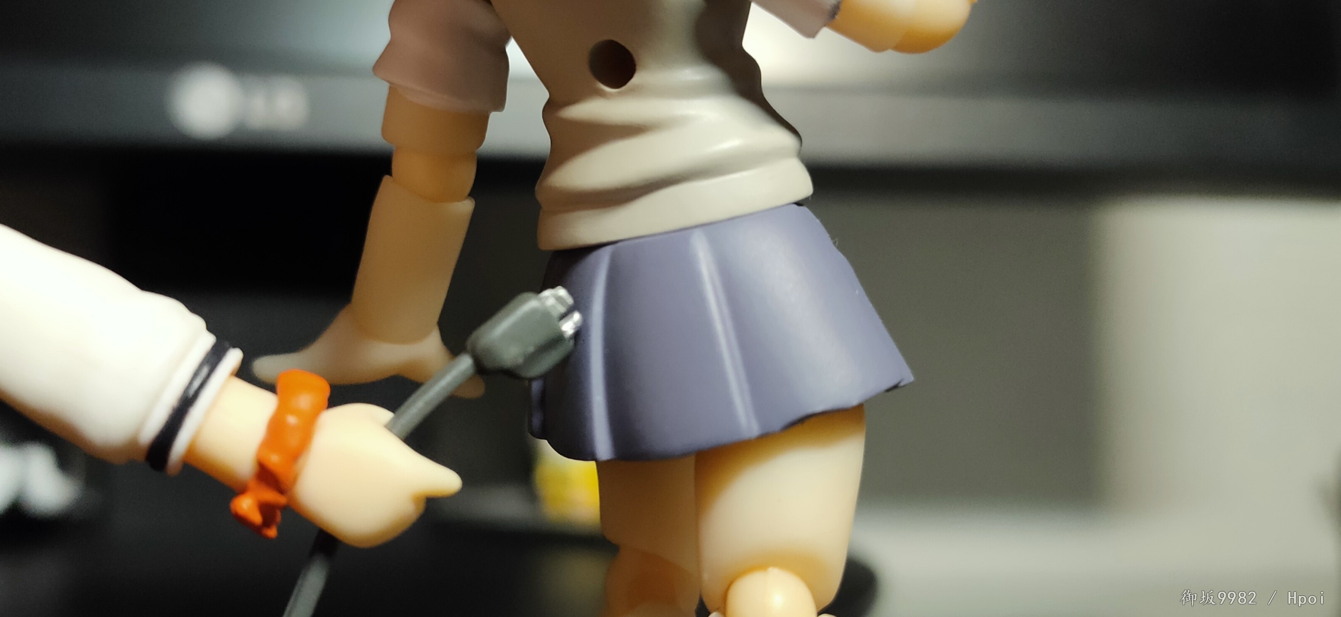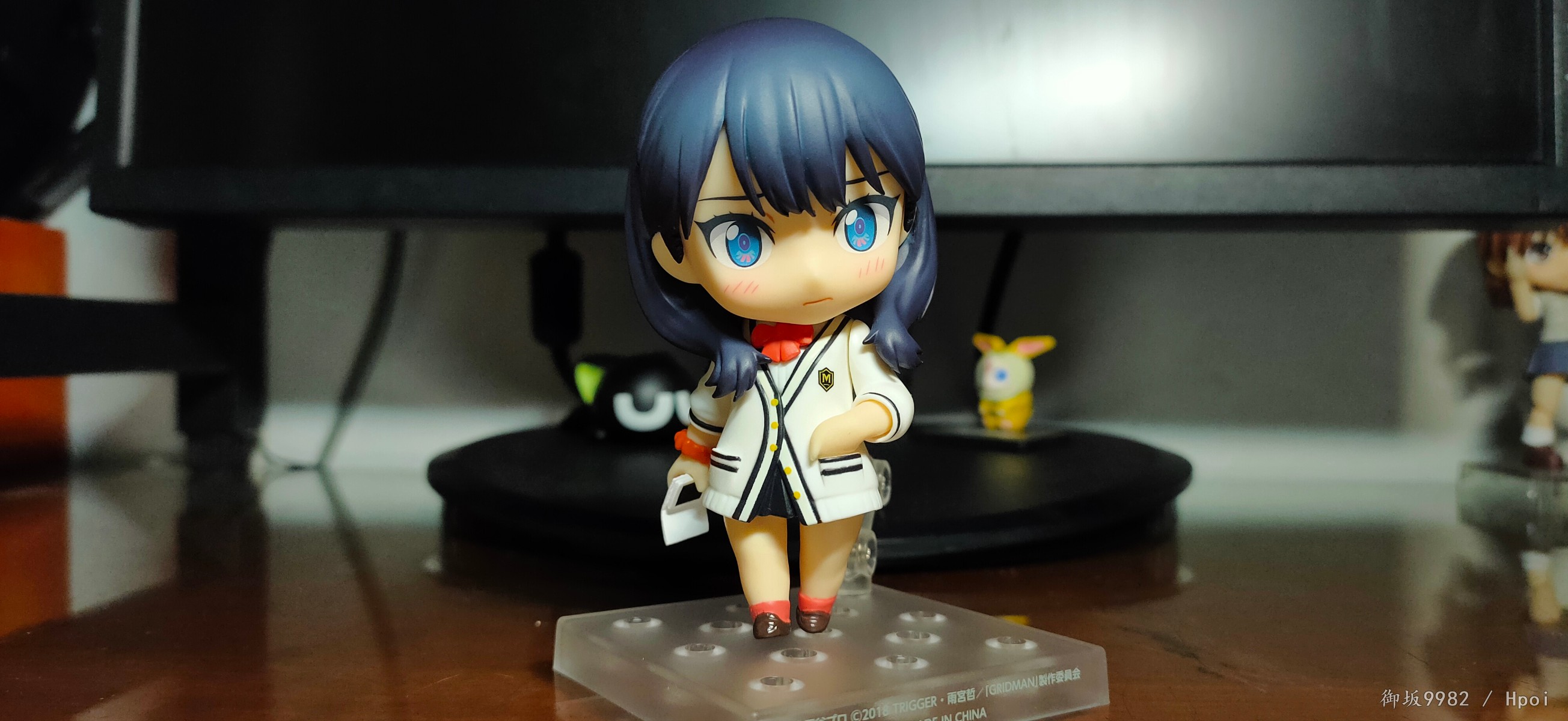 说回玩具,宝多六花的人物形象最大的特征应该就是两条大白腿了,加上修长的身材及过腰的黑发,还有沉默寡言的性格,妥妥的黑长直(゚▽゚)/。粘土人在这里也很好的兼顾到了腿的造型,往常的可动关节在这里被修改为了小球关使得双腿在外形上看着更为完整,虽然牺牲了部分可动性但毕竟奸笑的普通粘土人本身也不指望关节能有多灵活,取舍也算挺成功的吧╮(╯▽╰)╭,但往上看的话,这款发型确实会对可动造成不少的阻碍;4s古利特的两部画风个人还是相当喜欢的,特别是人物眼睛的作画,感觉有种与众不同的精致感,而粘土人正好占了大眼睛好做细节的优势,双眸刻画的相当漂亮且还原,只是替换脸的表情感觉有点少了,如果能有一张开心脸就更好了(*≧∪≦)~配件不少,小显示器还可以自己diy换台ヽ(°∀°)ノ和茜搭配起来也很有趣,有点意难平的就是目前还没消息出粘土人的南梦芽和麻中蓬...