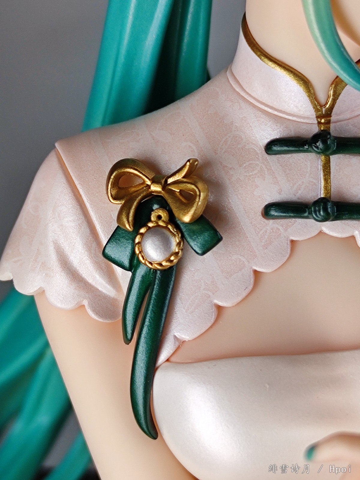 怼近了细看还是能看到底座上有些胶水白痕,还好我这个初音本体没有溢胶,湿布擦擦就没了。