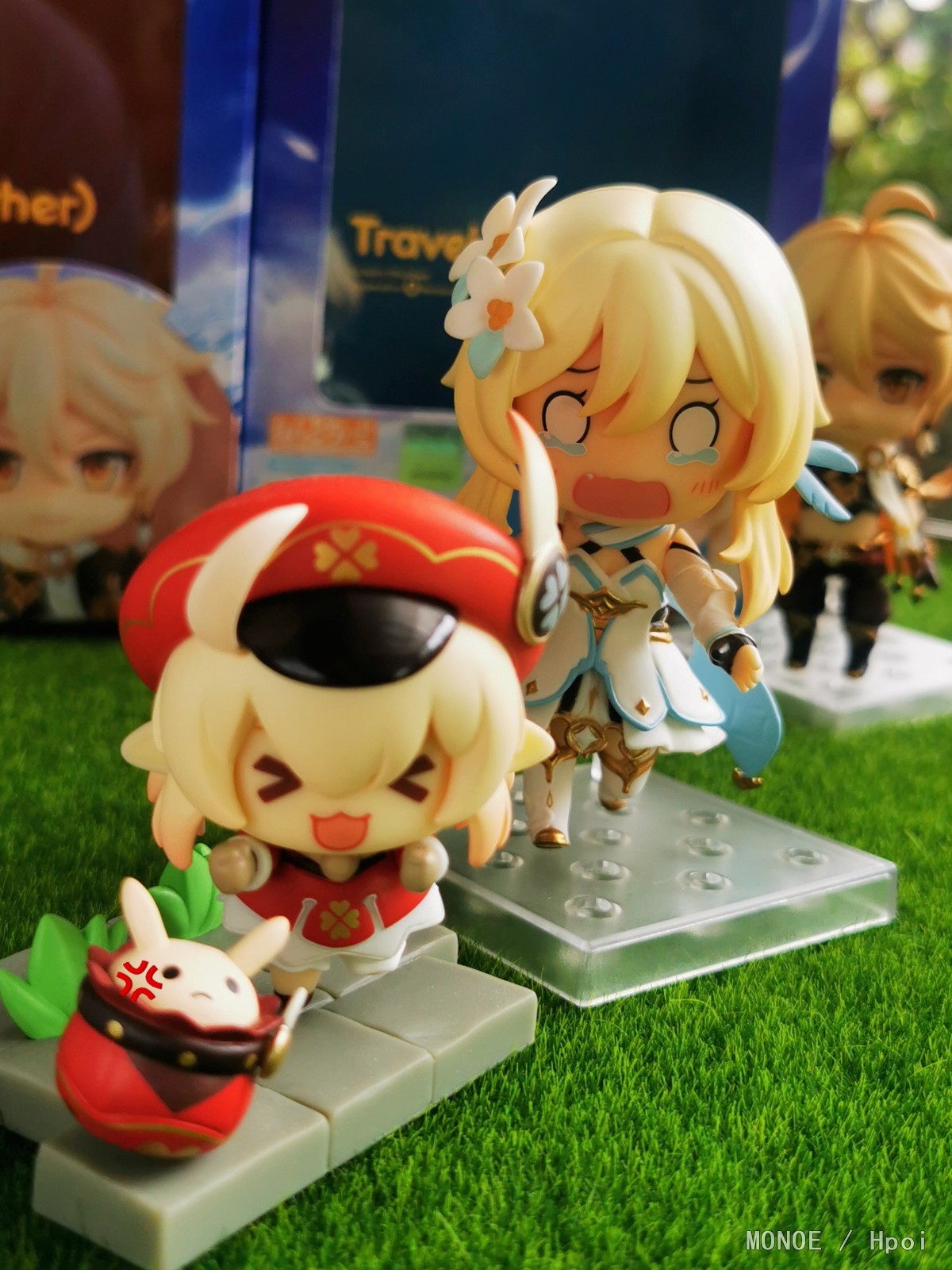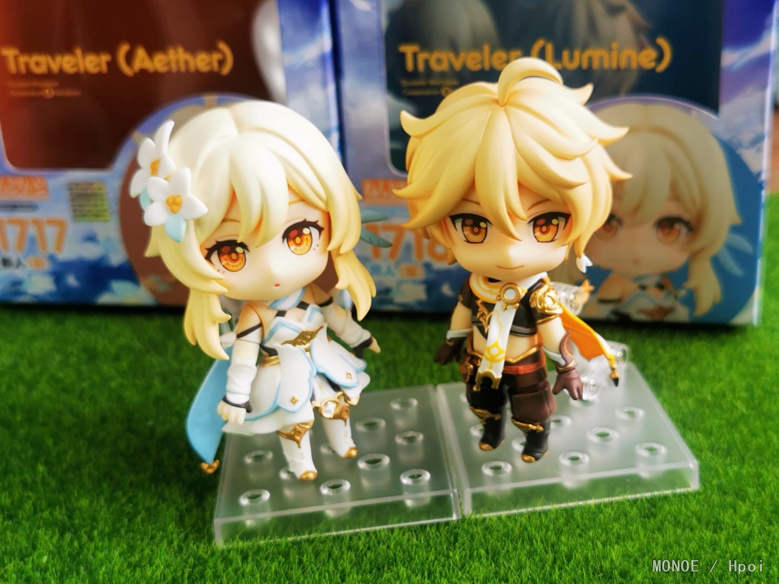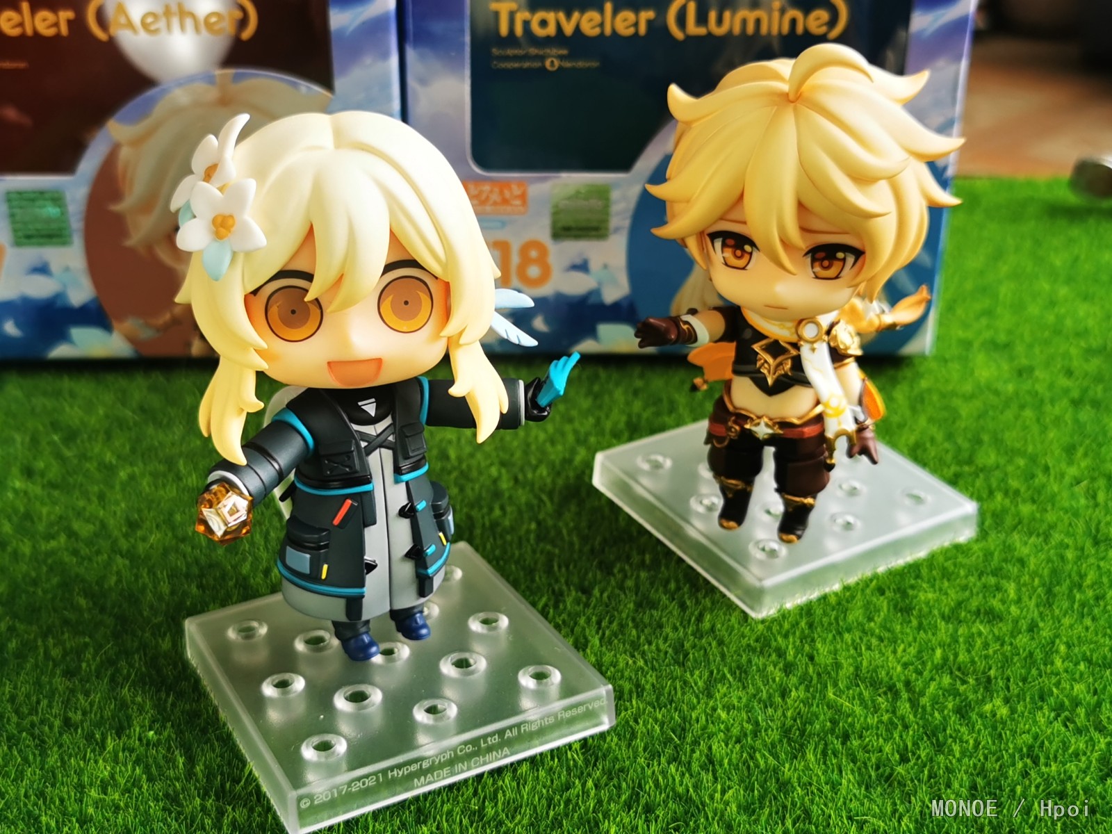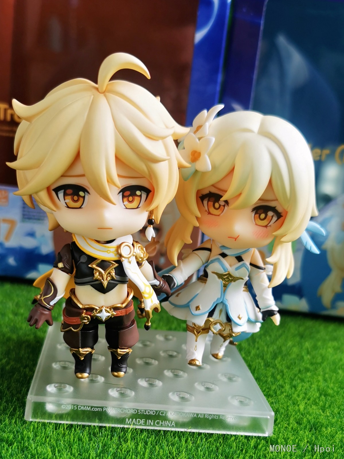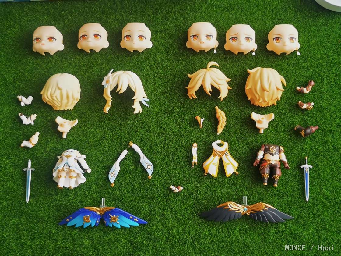 昨天收到的两只小可爱,今天就迫不及待的拿出来拍些照片了,渣拍还请见谅了.... 简单说一下自己的感受吧...本体方面,我收到的妹妹没有什么可挑剔的地方,至于哥哥这边,头发能感觉出比荧妹要水一点,不过身体组的细节却是比妹妹精细不少;表情只给了非常普通的三张脸,不过游戏里本来也就没什么表情也不奢求了;配件方面则中规中矩,其中翅膀和剑两边都是不一样的,本体围巾(披风)可拆卸,妹妹的披风比哥哥的围巾要好装很多,虽然没有给原石和小派蒙还是有点遗憾,但细节部分做的还行,个人是比较满足了,最后面可能会更新一些盒子和说明书的图片,怕被坑的小伙伴可以参考一下