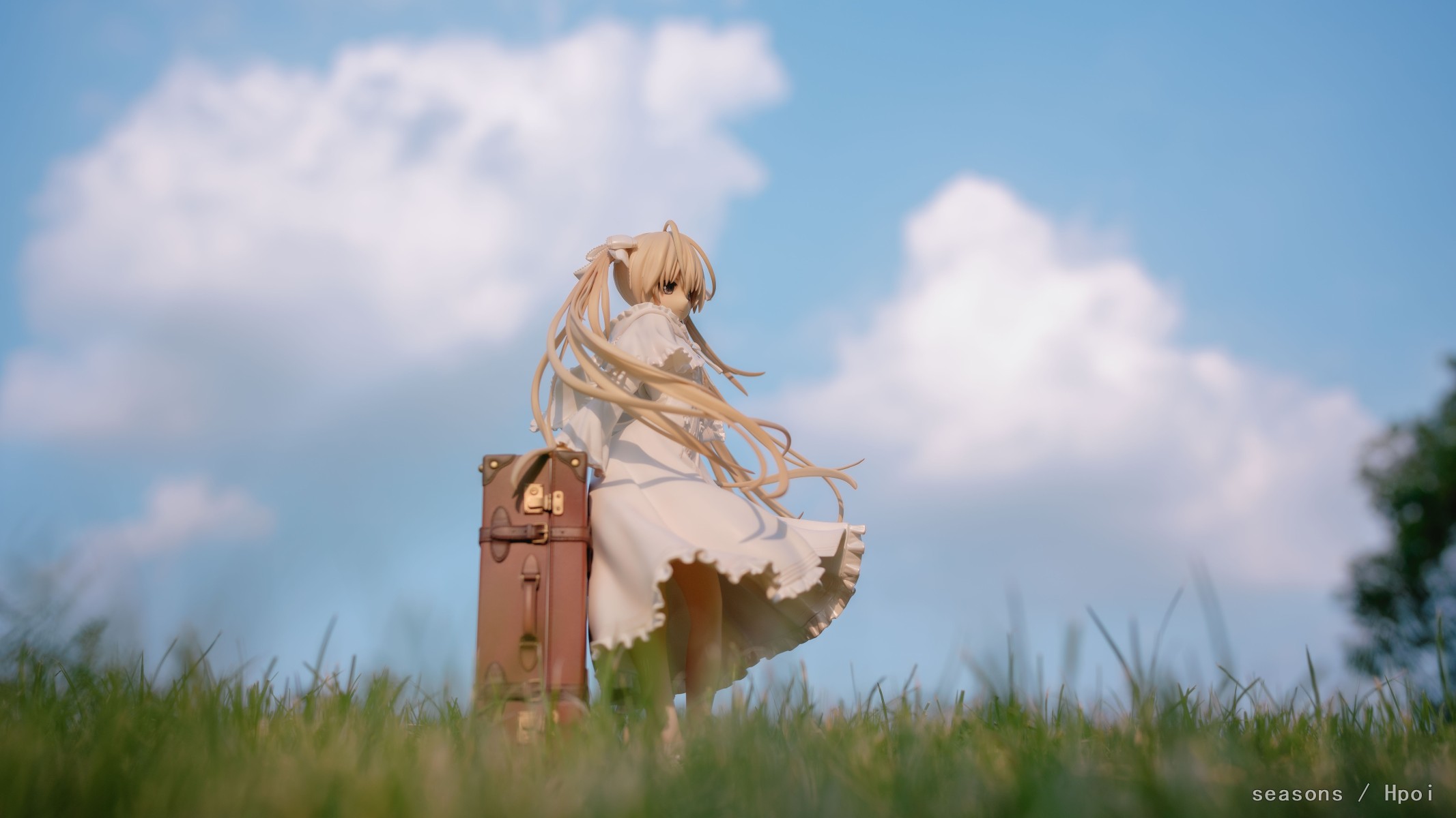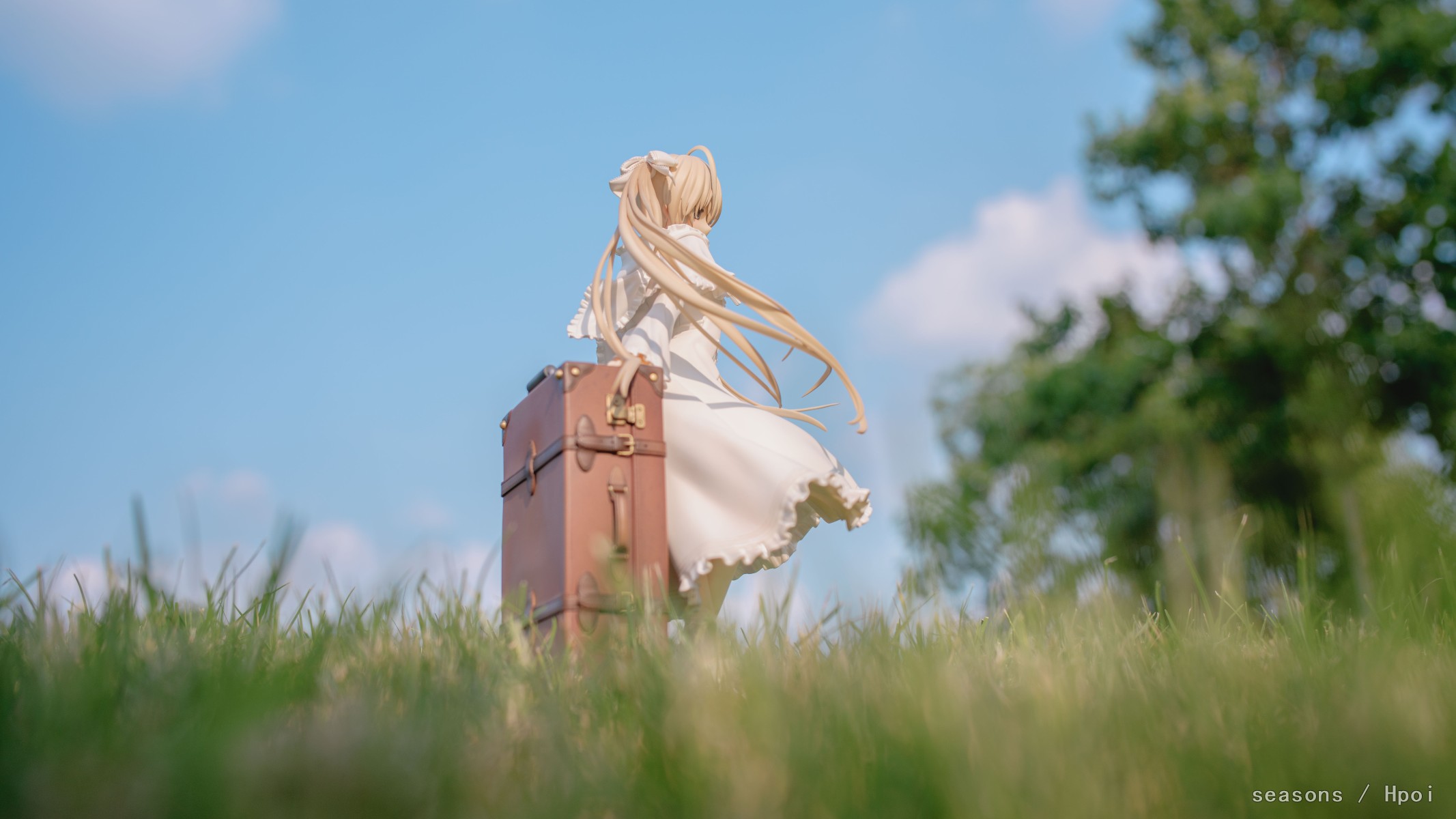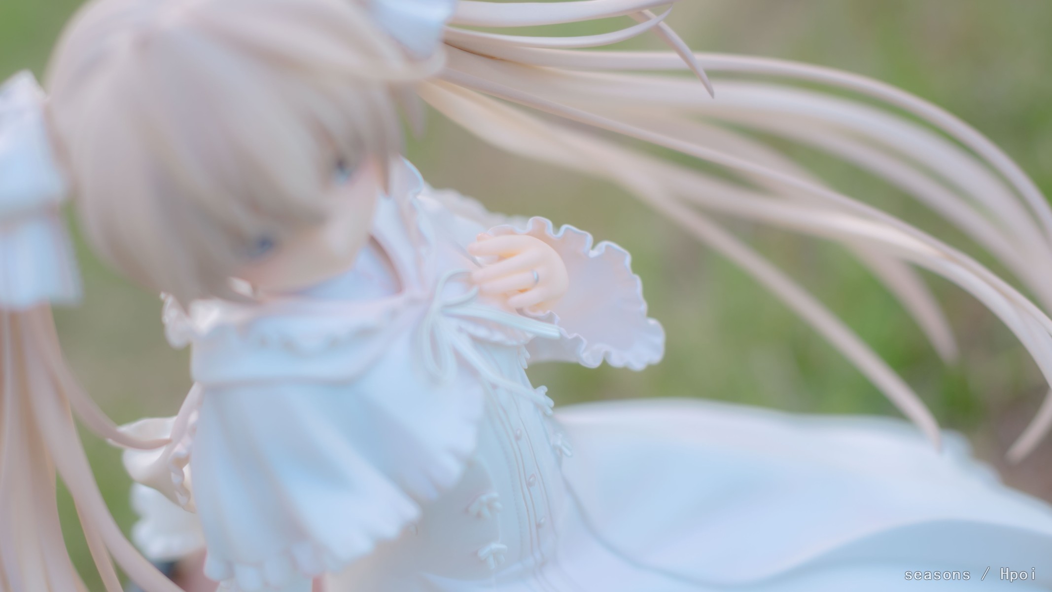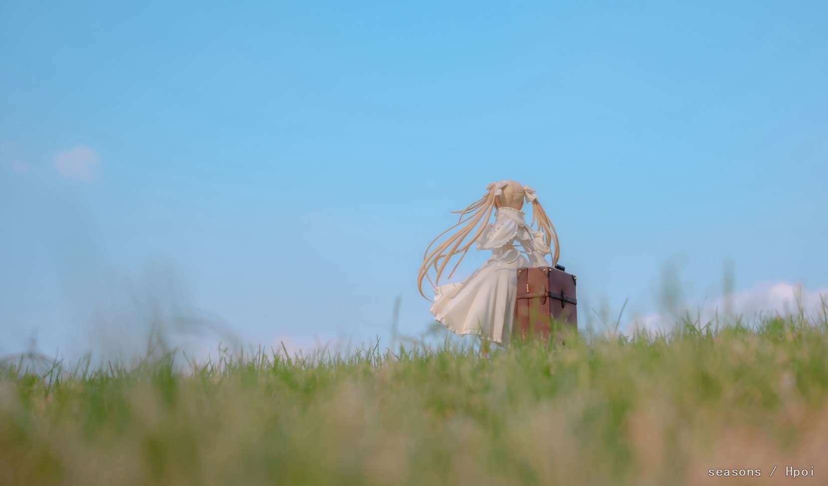 无论何时,无论何地,我们的上方都是那广阔的蓝色天空。我们为了守护自己最想守护的人努力、奋斗。在这亘古不变一直延续的天空下,我们的思念也会这样一直强烈地延伸下去。我们的心就像那天空一样,不分离。直至苍穹的尽头。」--缘之空 啊啊啊,穹妹好可爱呀。好喜欢,我也想要一个穹妹。 手上的戒指亮闪闪的,各种意义上。 在学校玫瑰园旁的小草坡上拍的,不知道算不算主题里。 主要参考了游戏《悠之空》里,穹和悠初到北欧时,在草原上等着的场景,选择了一个可以过滤背景草坡,学校里就这么一块合适的小草坪,傍晚时分的阳光也能很好的洒在这一片。学校还经常性的修剪草坪,还得等草长得差不多的时候抓紧好天气拍。