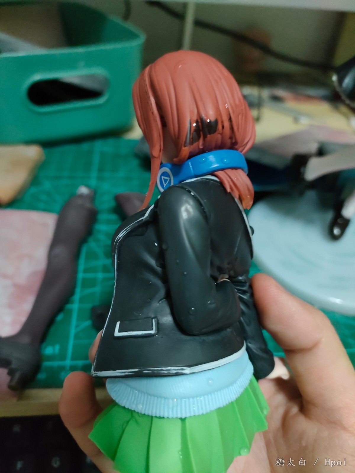 费了一番功夫发现行不通后还是把头拆了,衣服上的白线条涂了,但边缘明天还得再修修