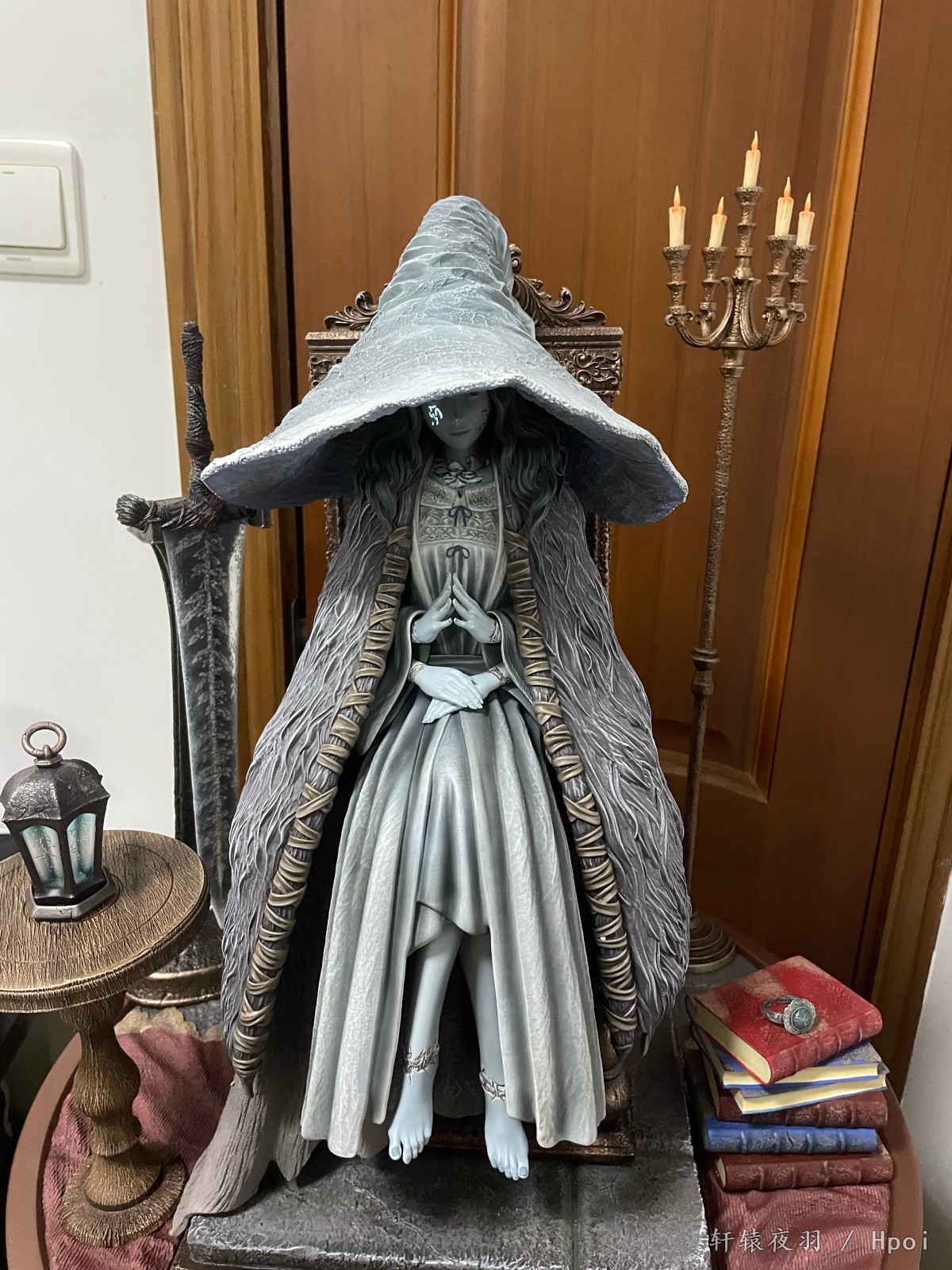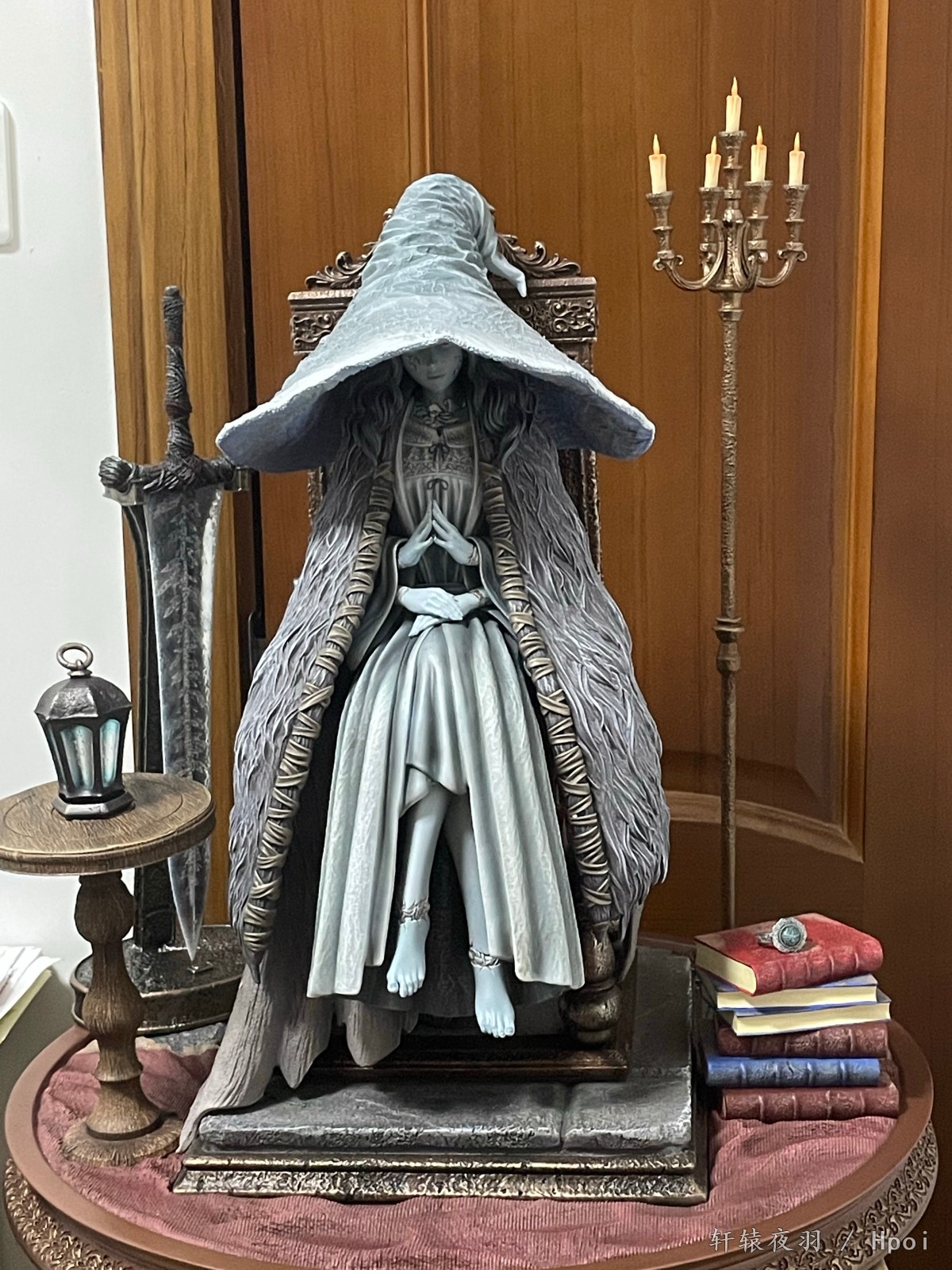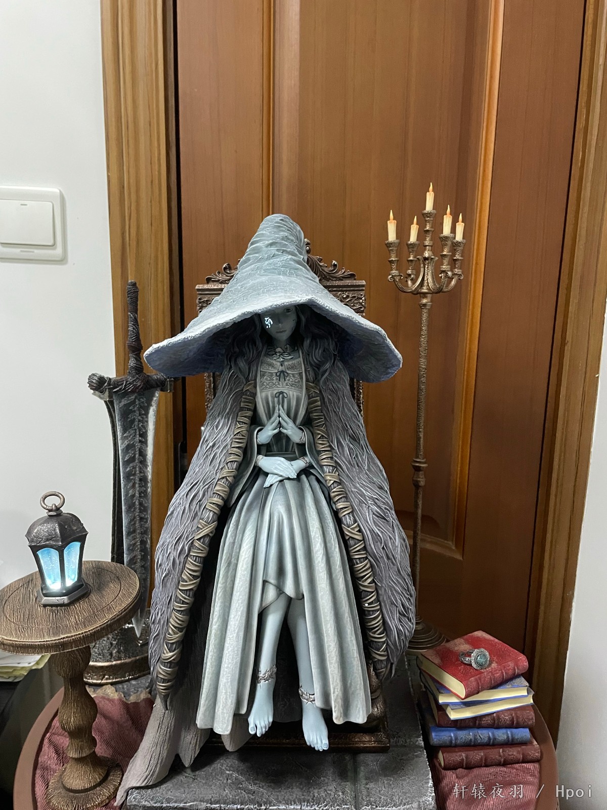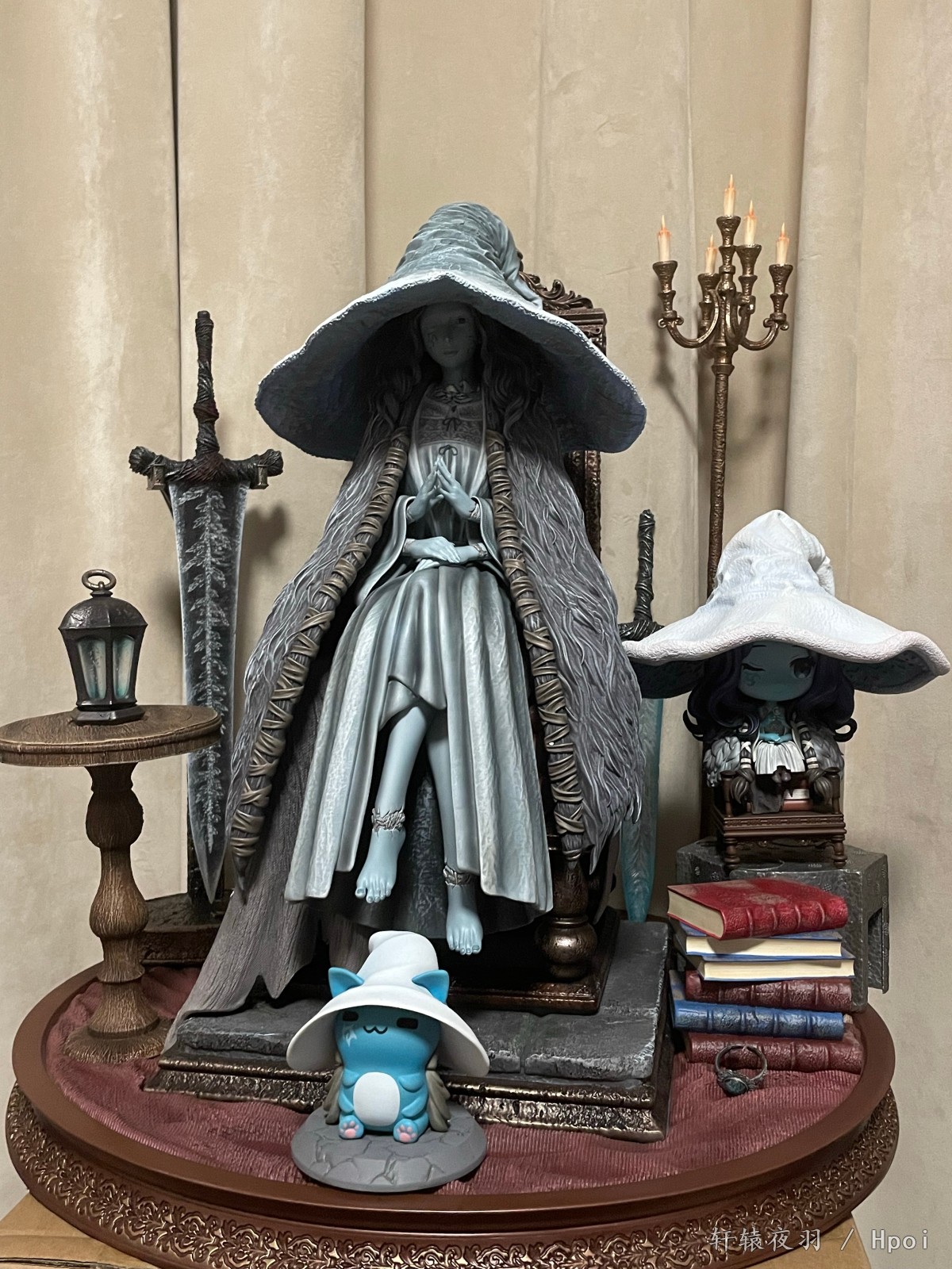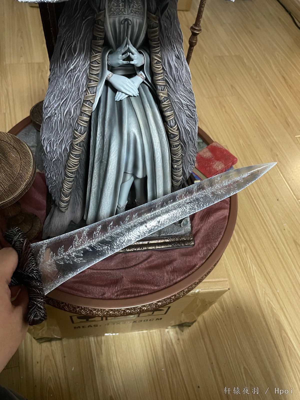 送来的这天,外面正是大雨,一大早,两个一米见方的大箱子,到f310我都惊了。我买的时候知道大,但我没想到这么大,更重要的是,这么沉!这没有50斤也有30斤了,想过秤,地台比我秤都大盖上去看不见数字了,遂作罢。经过一上午重体力劳动,唯一的尴尬是,我那个组装架,现在我不敢摆了,怕塌……其余就都是赞美了,老婆太棒了!小灯造影效果也很好,看得出来角度是设计过的,脸上的印记能发光一开始我还没发现,发现之后有种惊艳的感觉。设计师自曝是足xp了,不过其实我更喜欢曲线柔和一些的,现在这个棱角有点…群里讨论之后,觉得可能是预留了,舔一阵子就圆润了(拖)。至此菈妮全家福三只,希望其它厂商不要再设计出更好的了,让我能在w和w的另一种形式之间维持现有的和谐,感恩!
