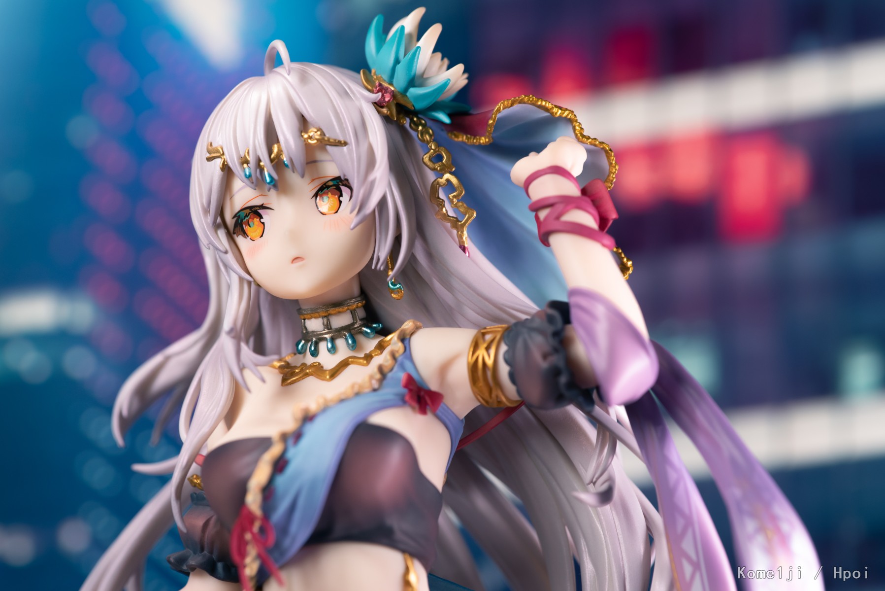 舞娘这只妹子我个人的拍摄和调色思路都是尽量烘托、强化手办本体强烈的异域风情。