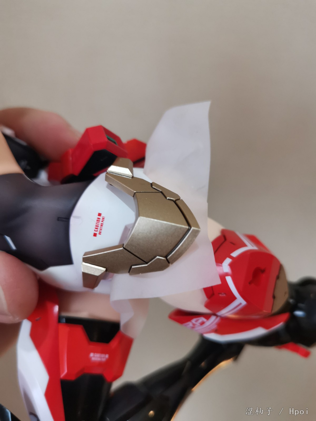 漆面方面,集消光,珠光,光面,金属漆于一体,漆面质感表现非常出色,标识移印清晰准确,且品控优秀,无溢色缺色,这么大比例的手办想找出一处瑕疵都难,简直了。个人认为已经达到甚至超越了很多gk代工的水准,机体方面品控绝对薄纱代哥。