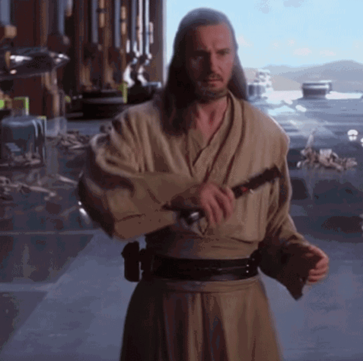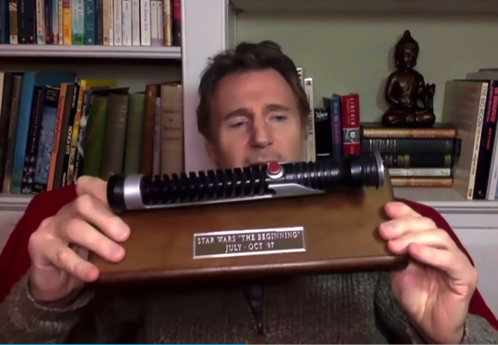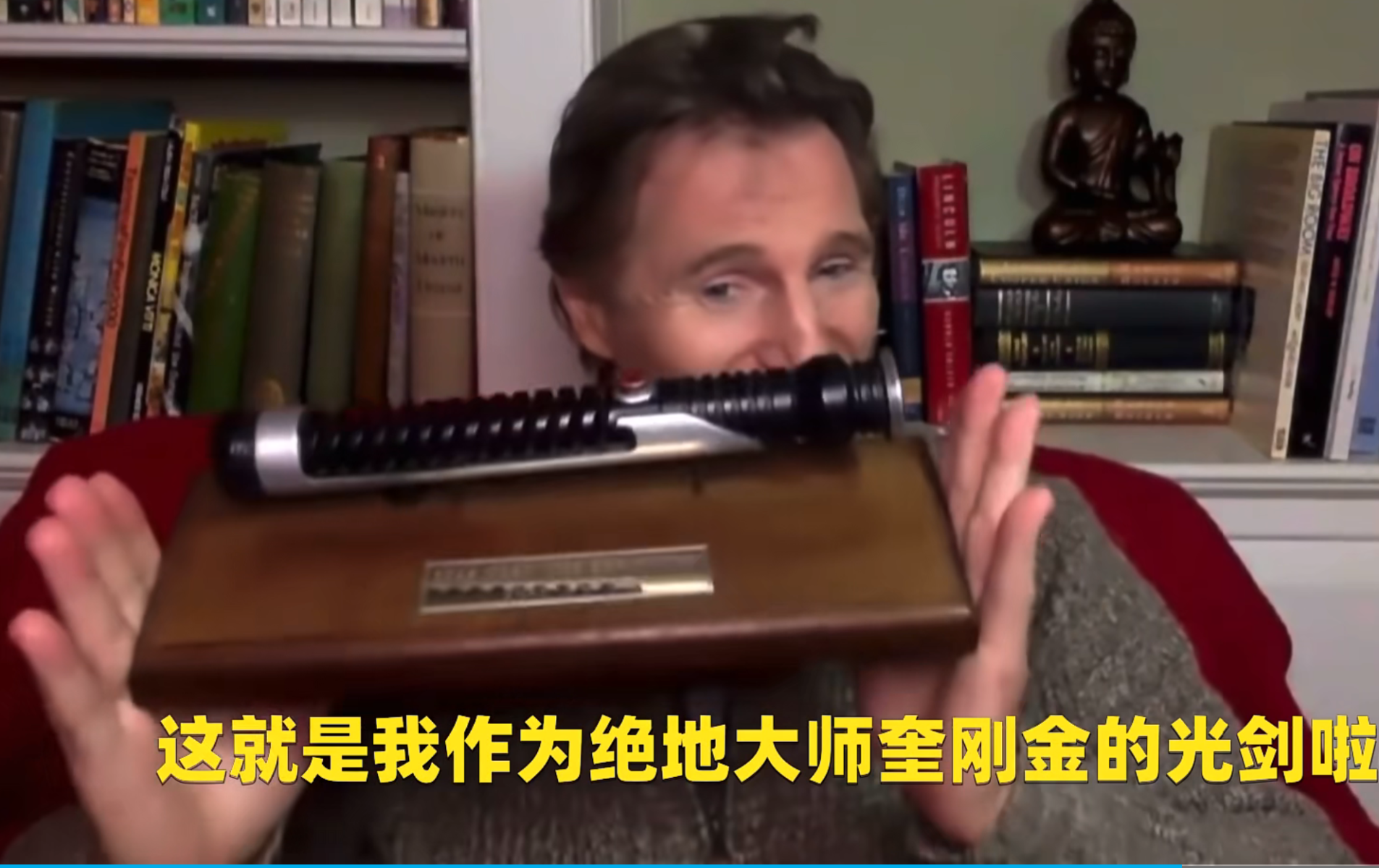 连姆尼森展示魅影危机的拍摄道具: