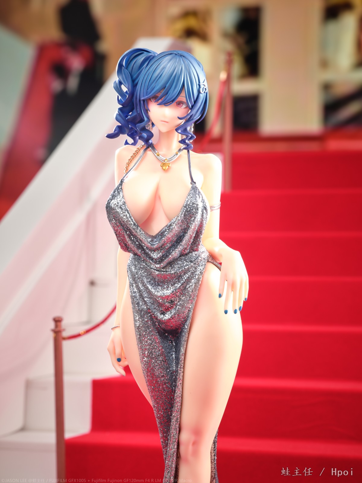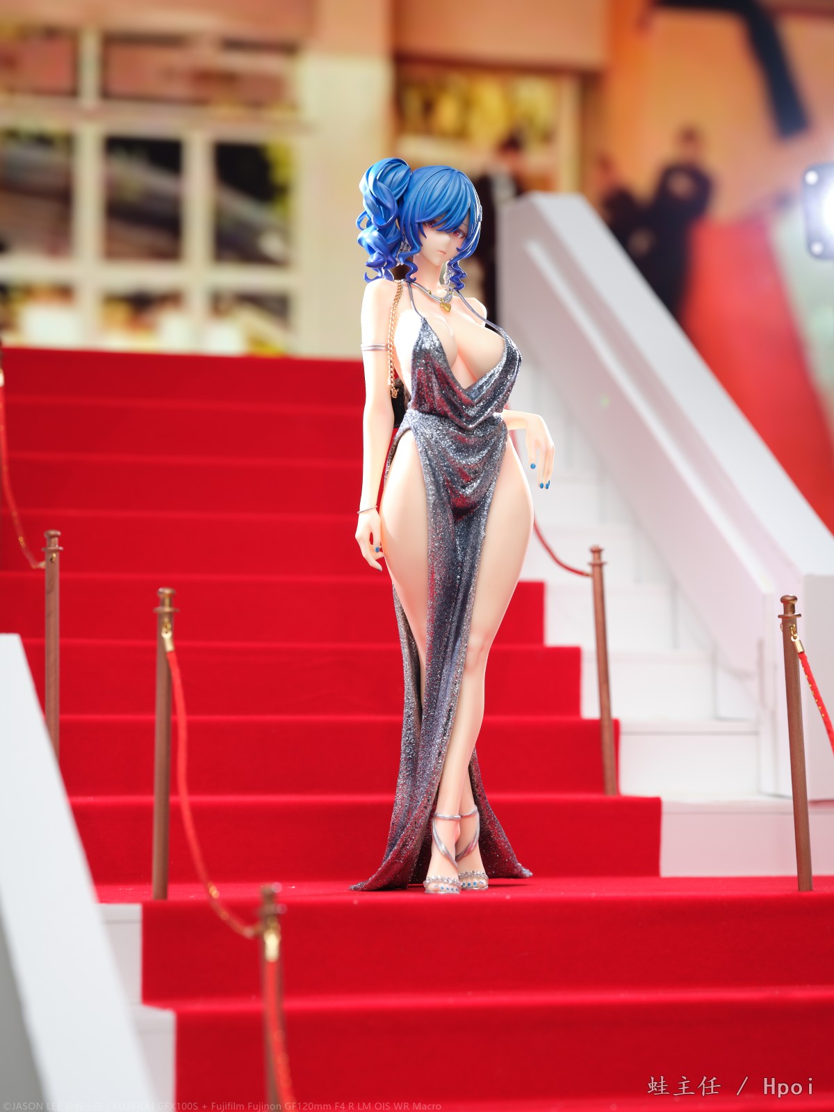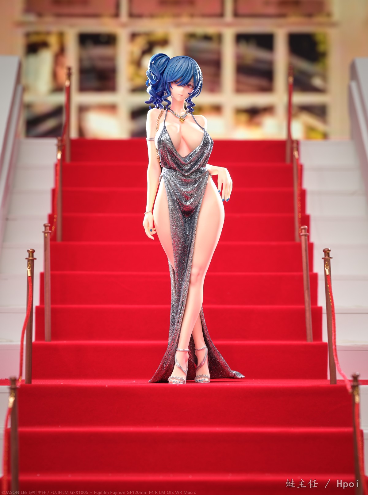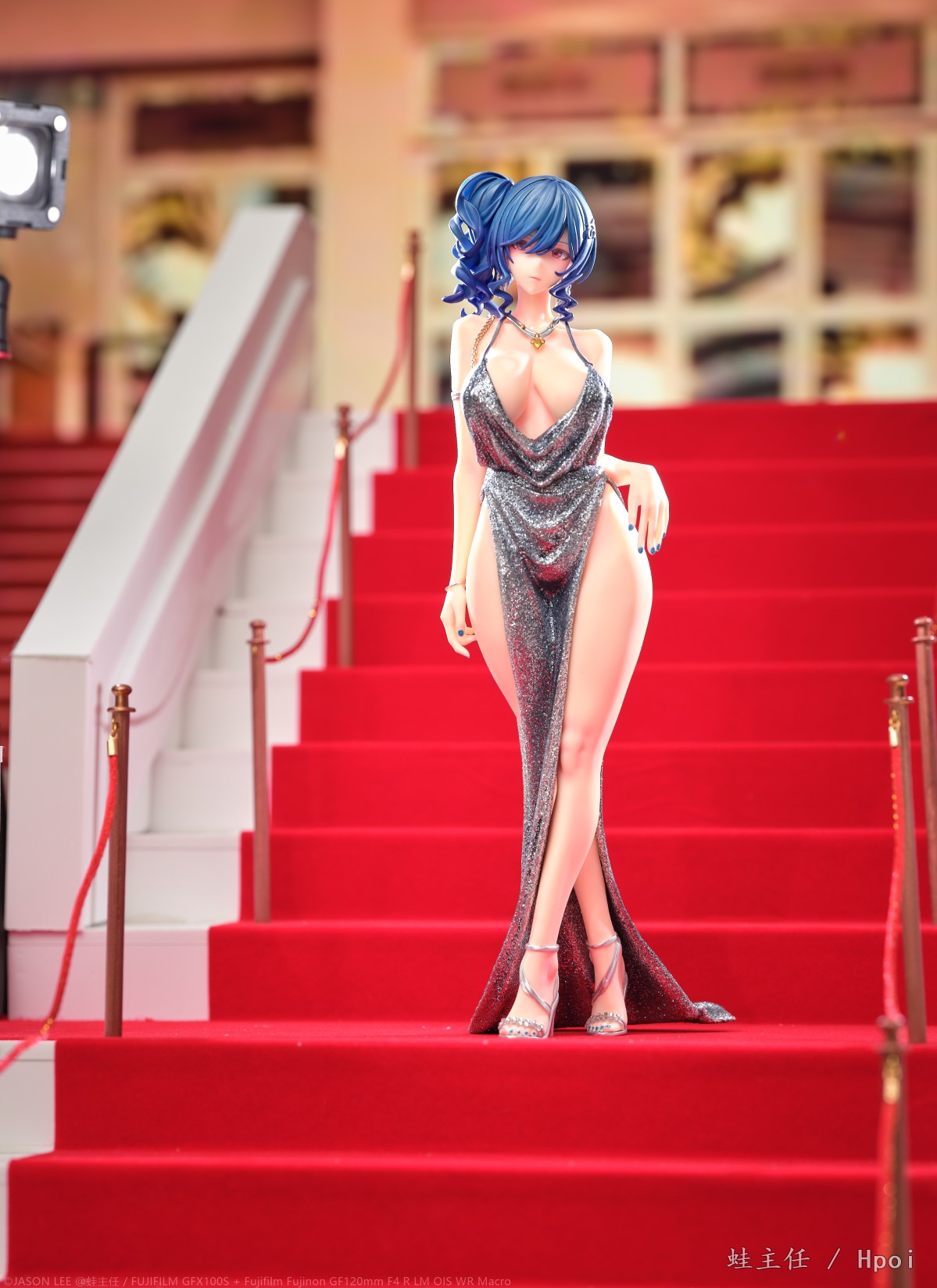 花了一周多的时间,从头到尾制作了一整个红毯楼梯来拍摄这个GK,确实花了些功夫。试图从灯光,构图,各种方面去模拟这个楼梯上的pose,参考了相当多的实拍案例。