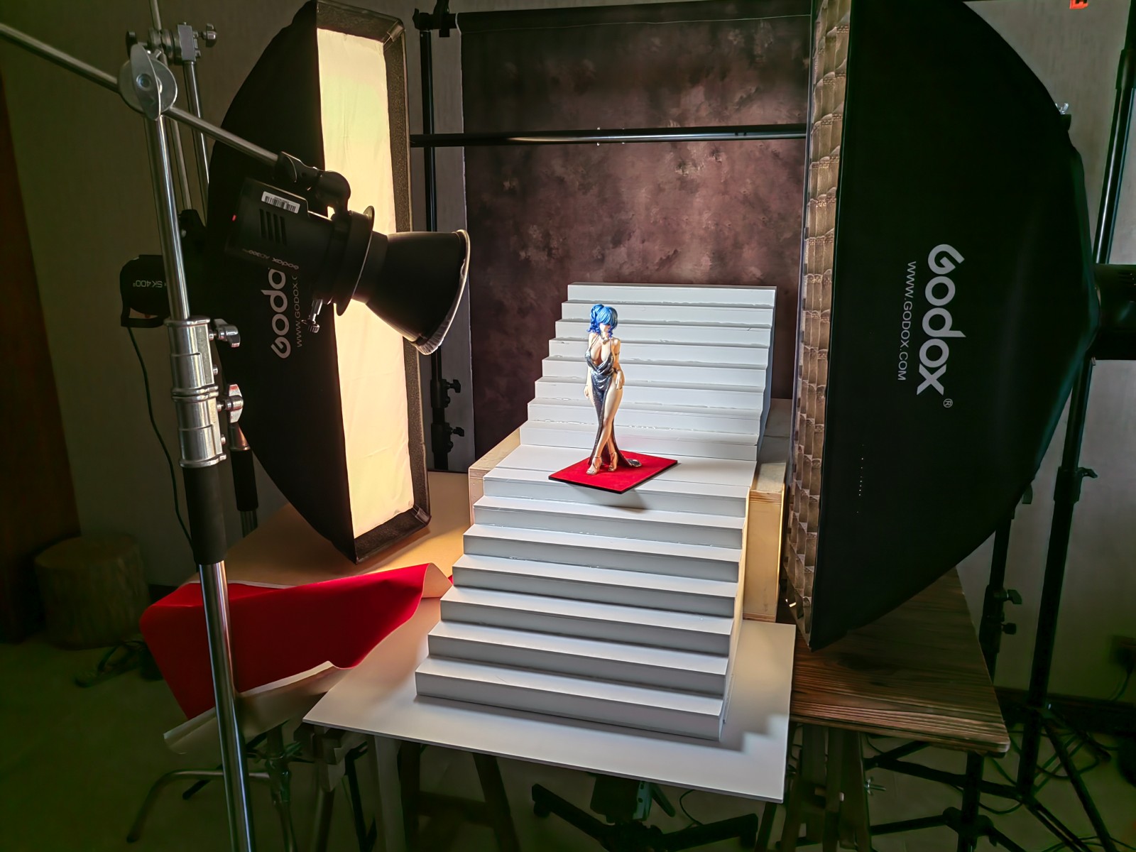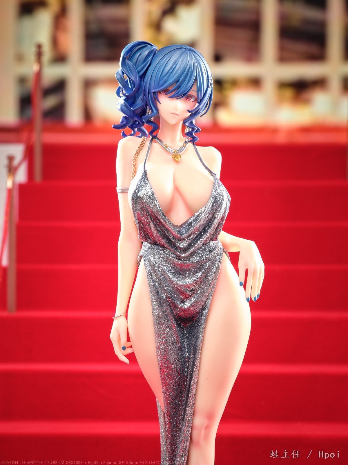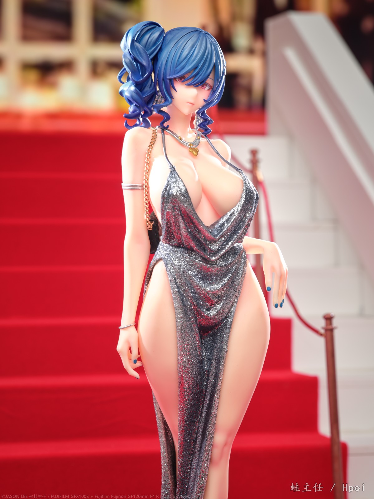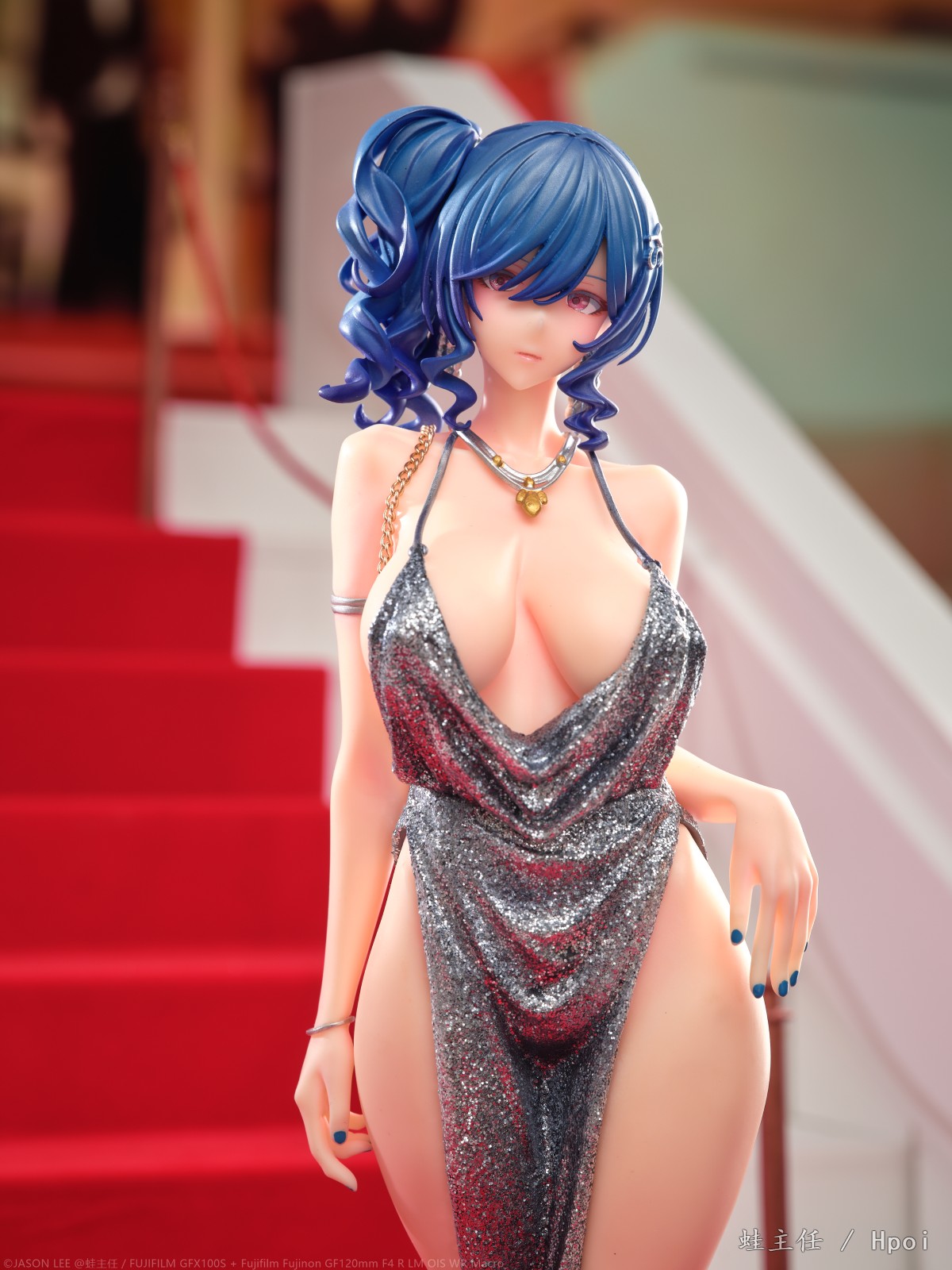 花了一周多的时间,从头到尾制作了一整个红毯楼梯来拍摄这个GK,确实花了些功夫。试图从灯光,构图,各种方面去模拟这个楼梯上的pose,参考了相当多的实拍案例。