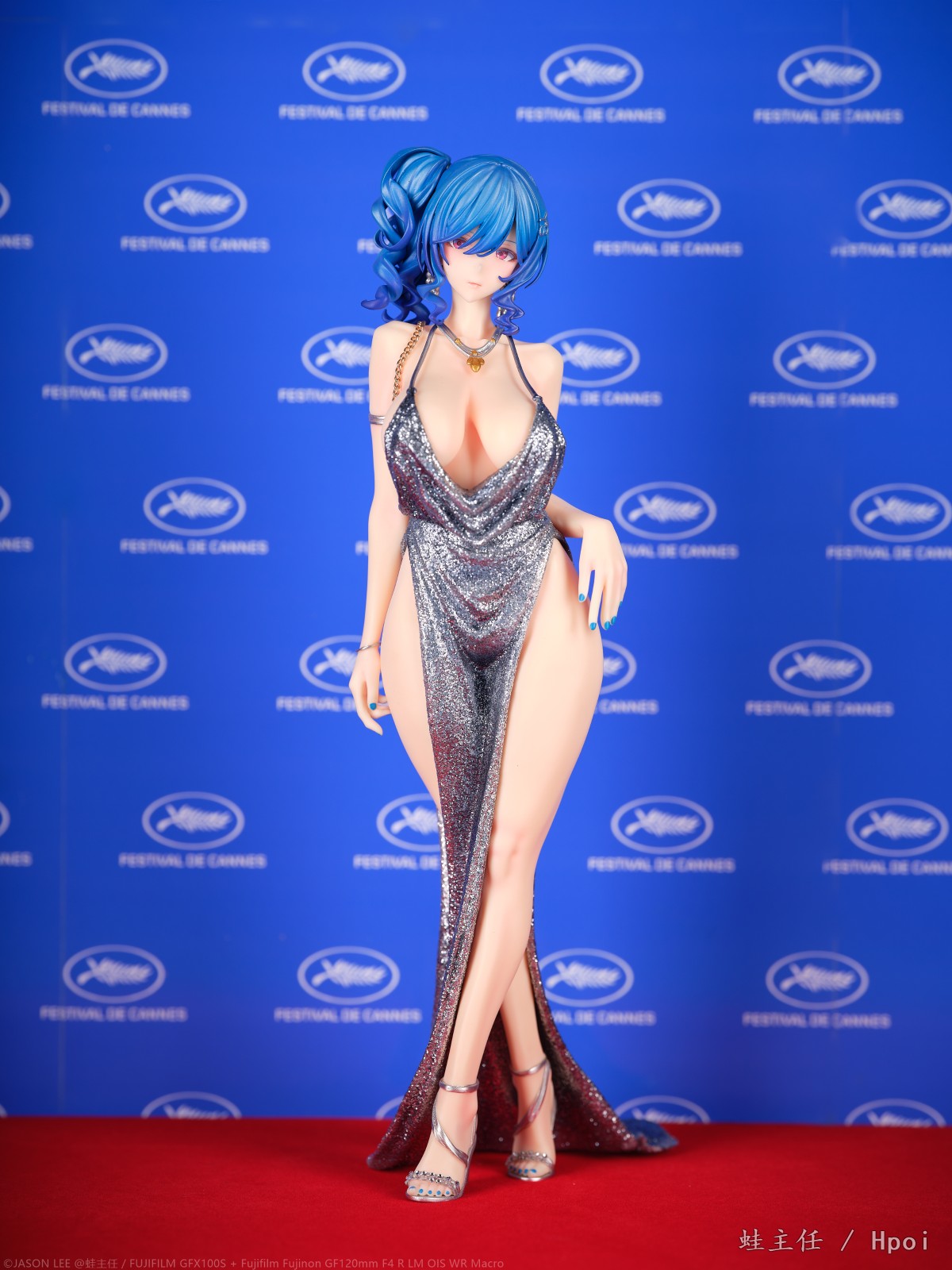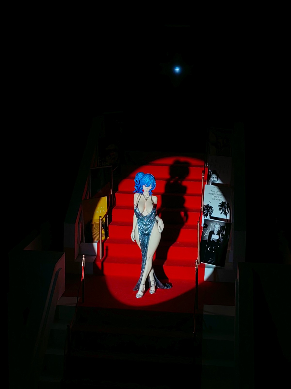 这套照片拓宽了我个人拍摄时制作道具的限制,以往大多都是用半成品拼凑,这次是从零开始自己设计场景,还是挺有意思的。至于照片,我尽可能在拟真的好看之间寻求了一个平衡点,事实上红毯照大多都是机顶闪直打,满面油光沟壑纵横是常有之事,离好看还是很有段距离,就做了些修饰。另外戛纳红毯门外有一整面顶光作为照明, 这点也用闪光灯打天花板做了还原。
