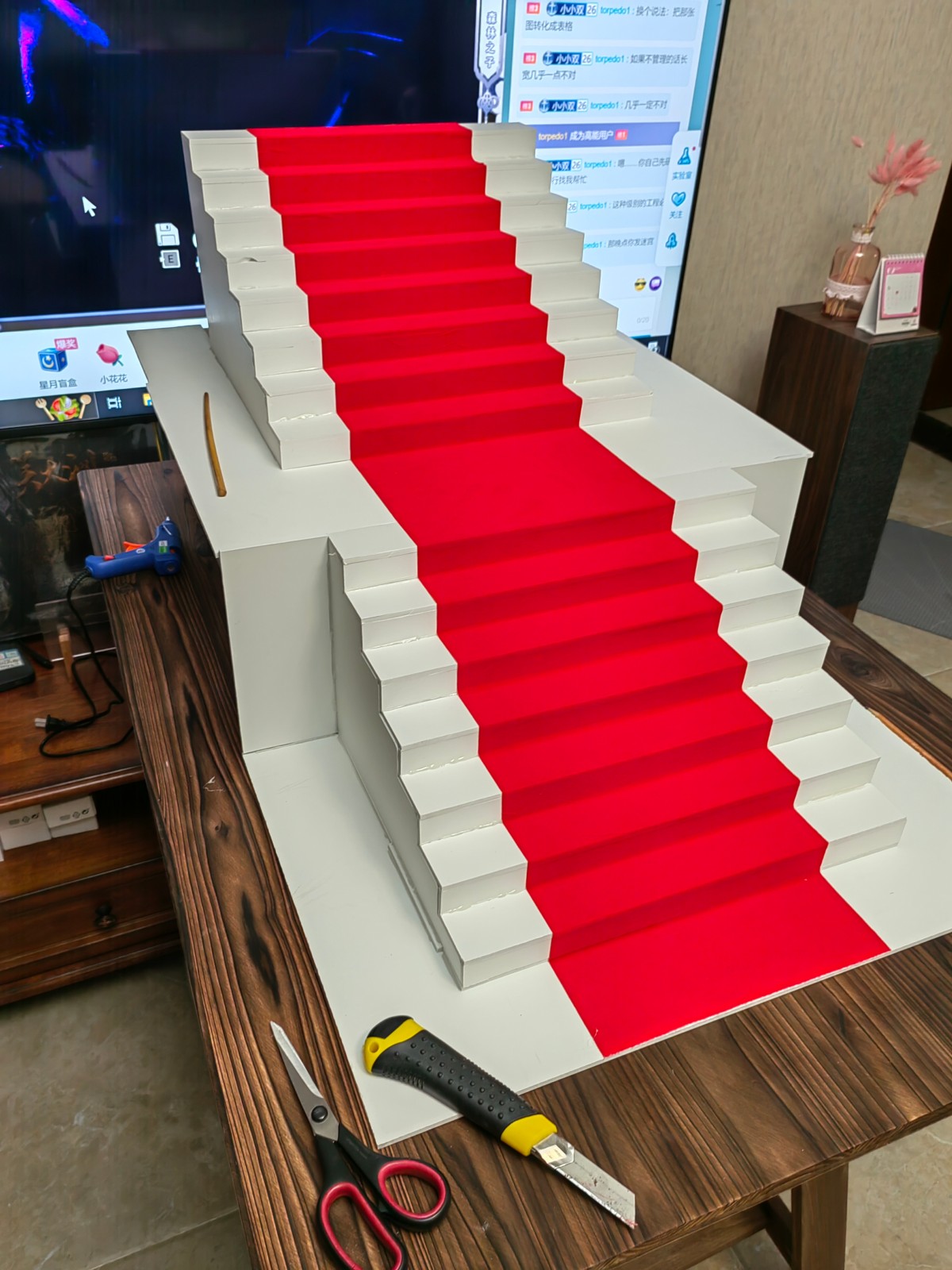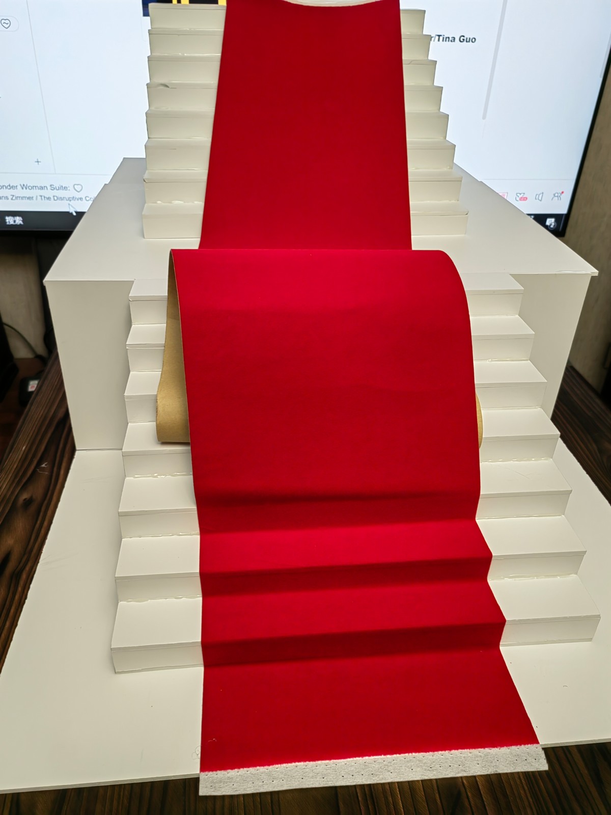 然后发现衣服后摆会干涉,就一不做二不休做了两节,中间有个缓冲平台(参考的戛纳也是这么个设计,不过戛纳那个台阶要宽得多):
