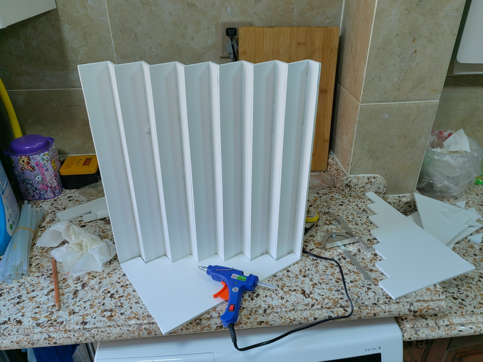 最开始只是想做一个红毯,后来想干脆做个楼梯吧,就从雪弗板开始画线切割: