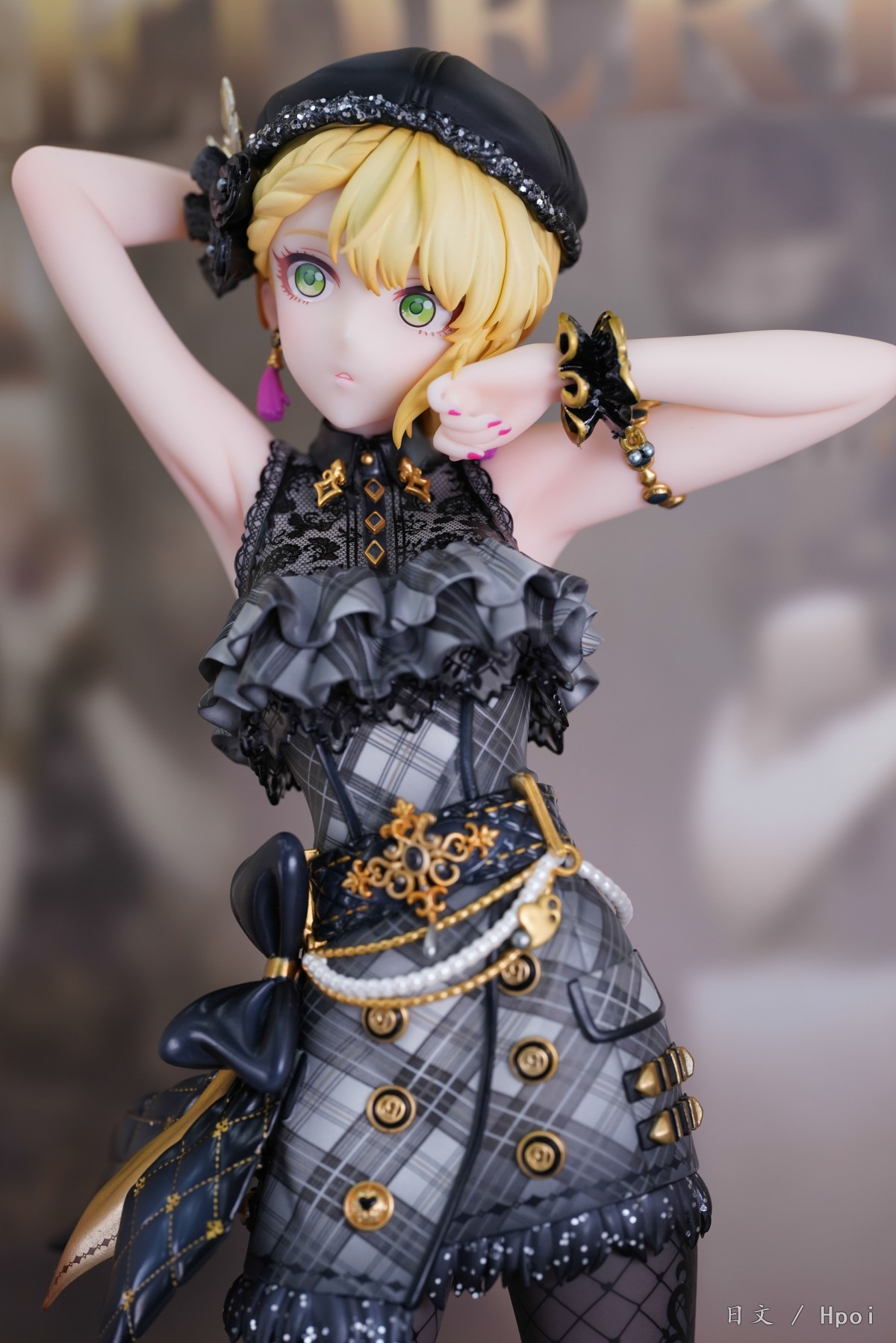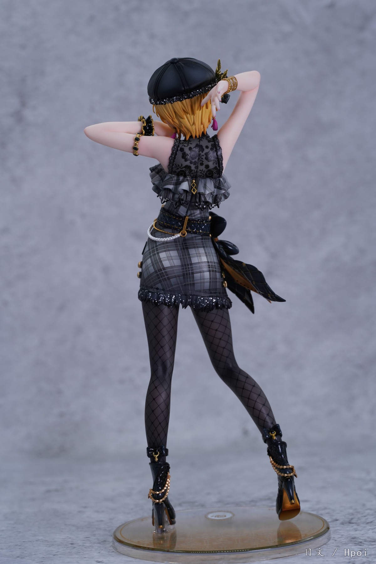 俗话说越简单越难做,因此站姿造型特别考验原型和涂装的功底。所以大A开始在螺蛳壳里做道场。手臂摆出的造型貌似JOJO,但却没有用力过猛的感觉。腿型拿捏到位,黑丝涂装炫技拉满。服饰的黑色色调简约但不简单,也是炫技拉满。