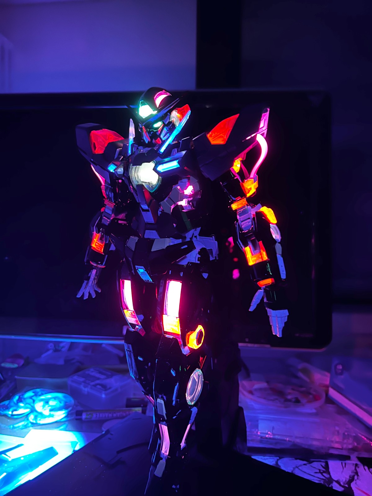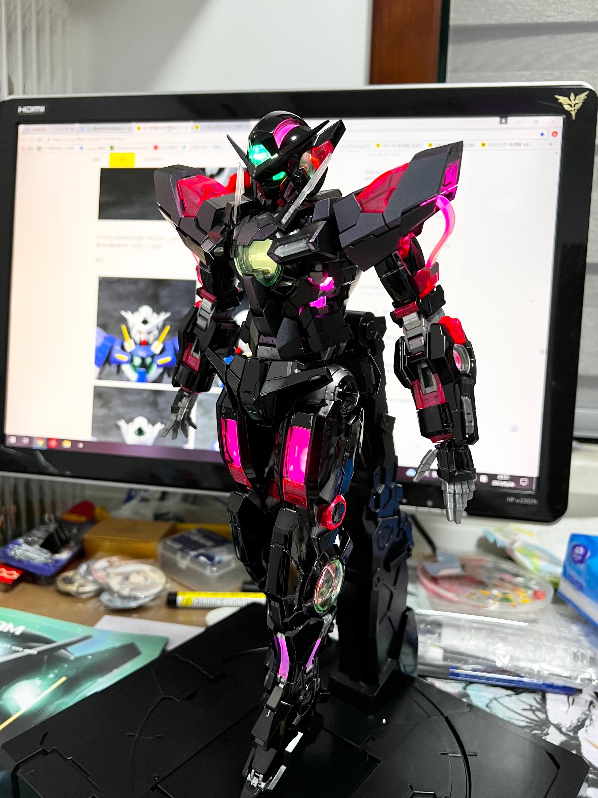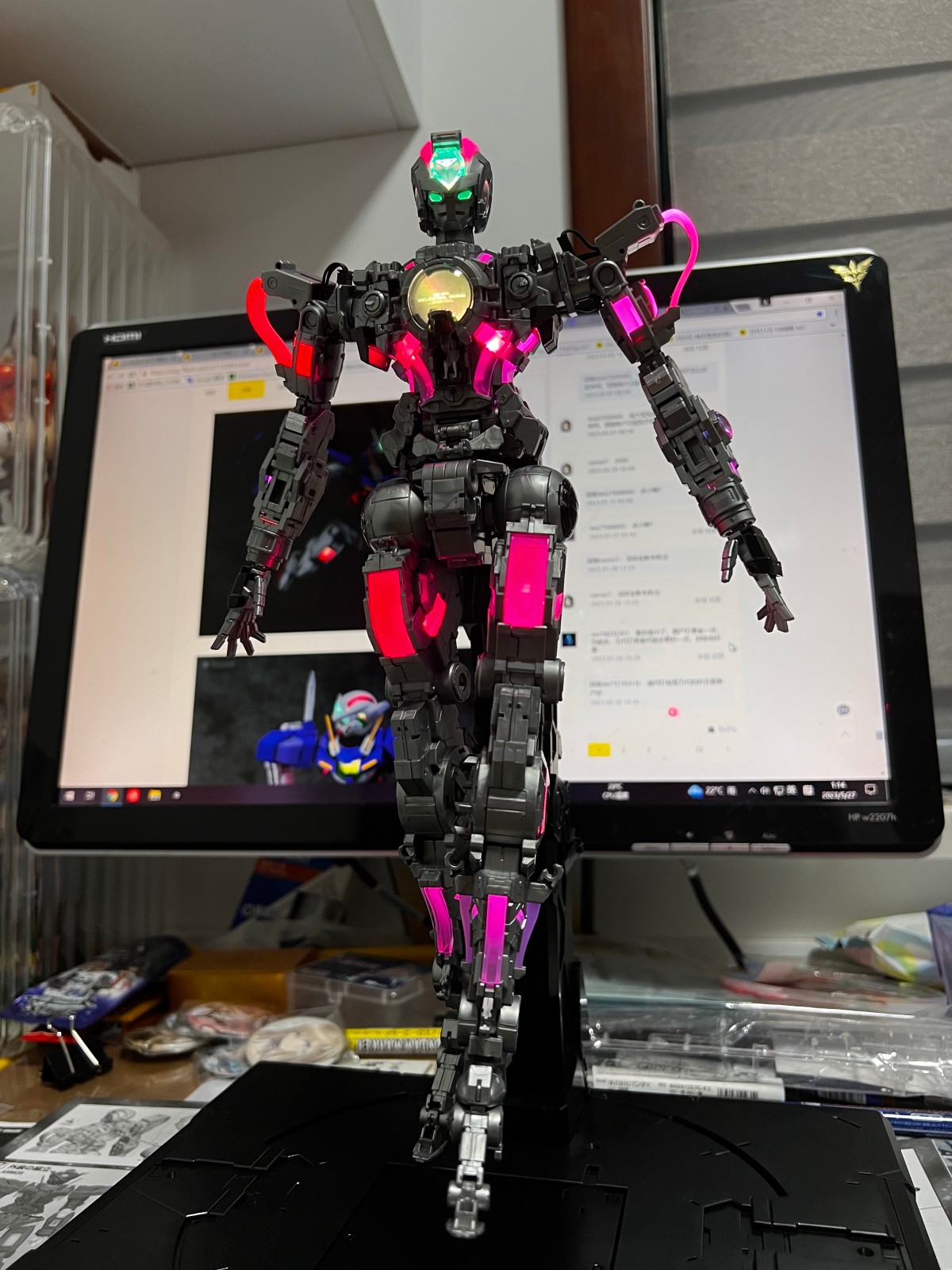 更新外甲,真.五彩斑斓的黑,肉眼视觉效果还是赞的。零件可能因为多了一层电镀涂层的关系组合起来更紧实了,部分拆解会很艰难,所以后续可能不考虑替换战损版了