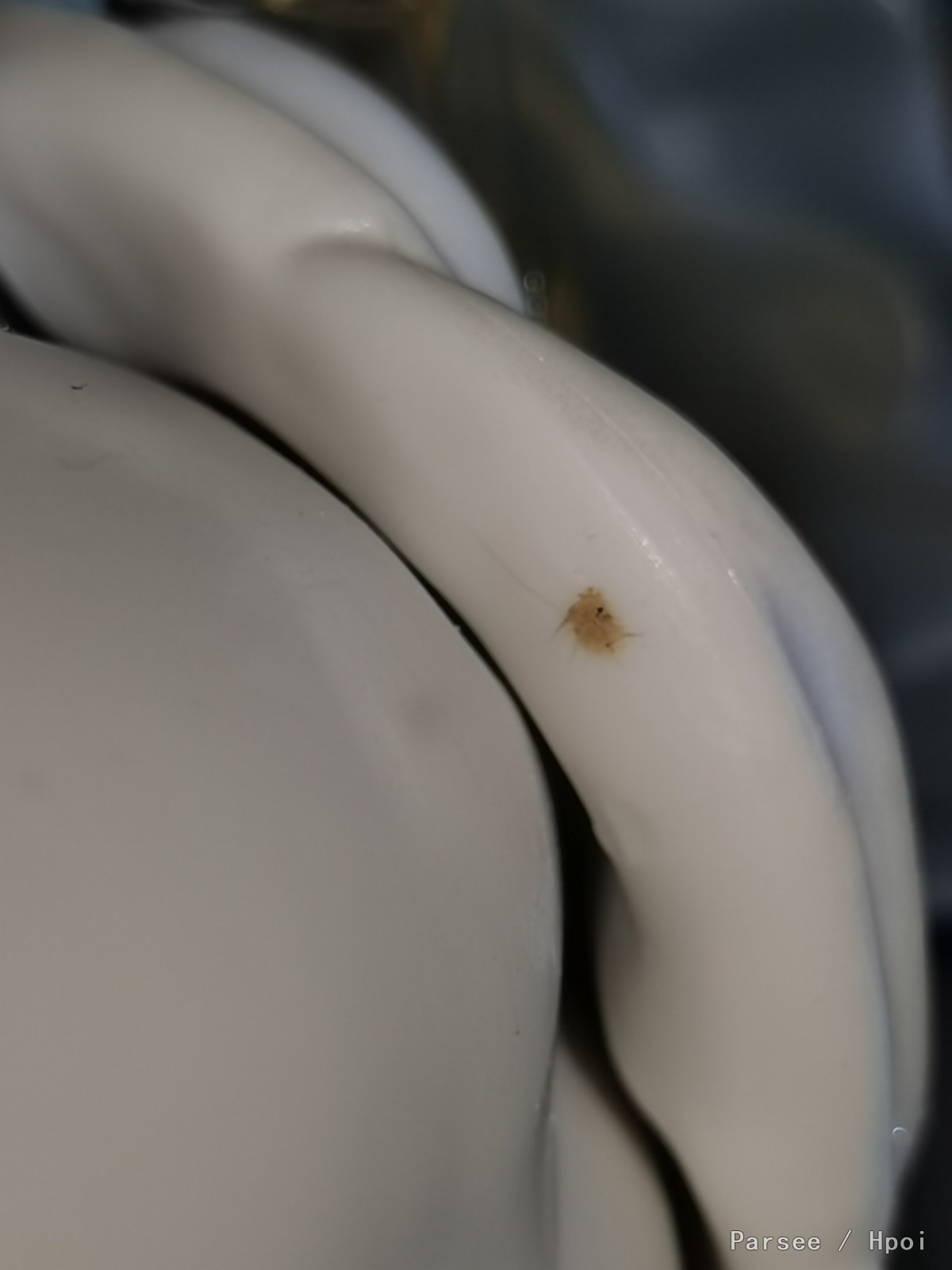□ 头发分模线明显,而且有少量胶粒