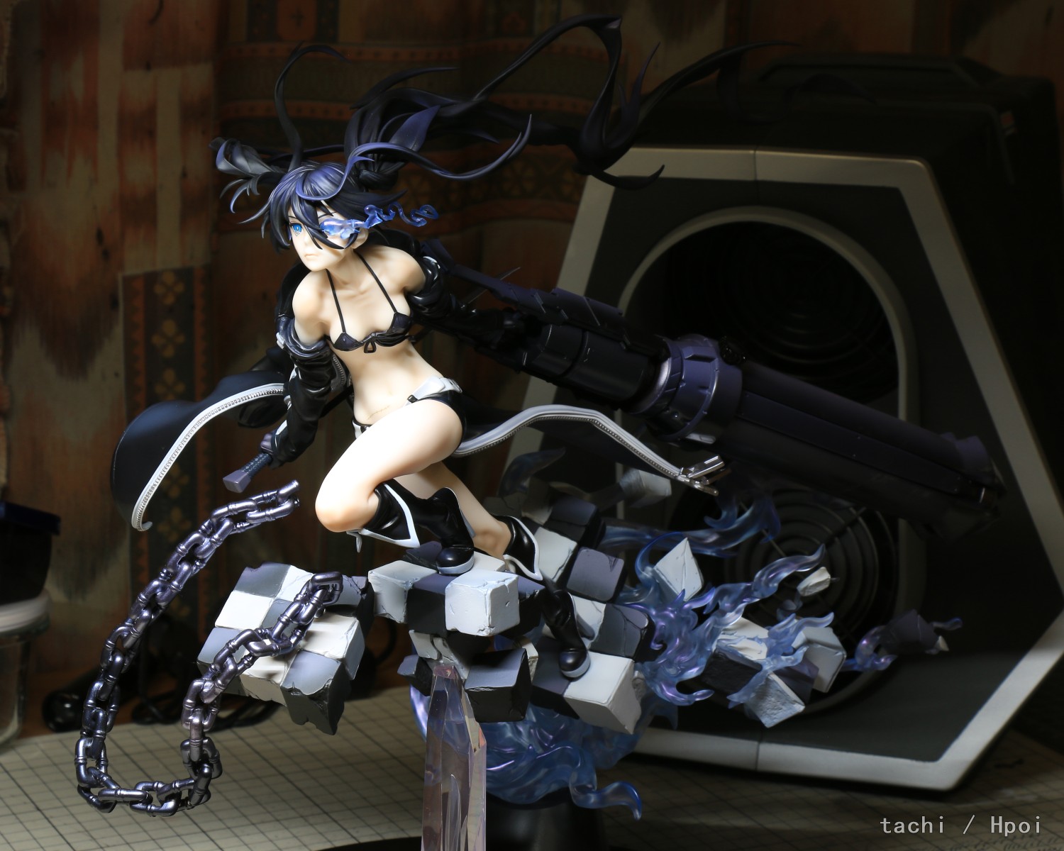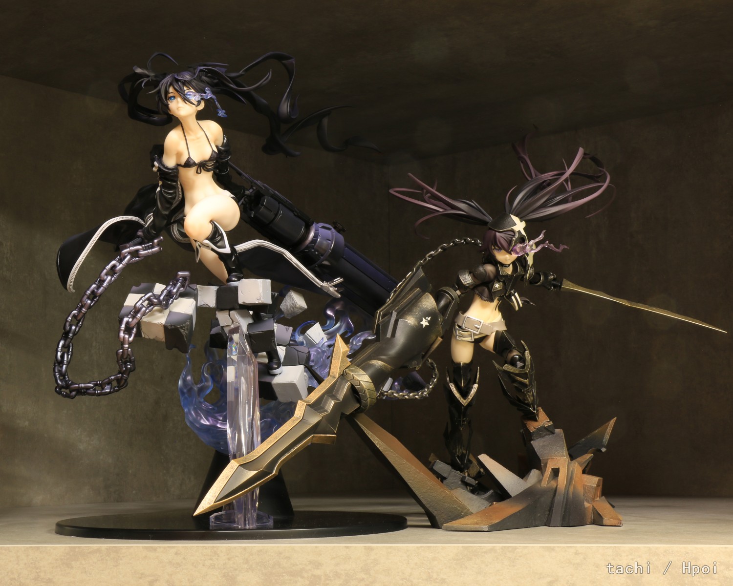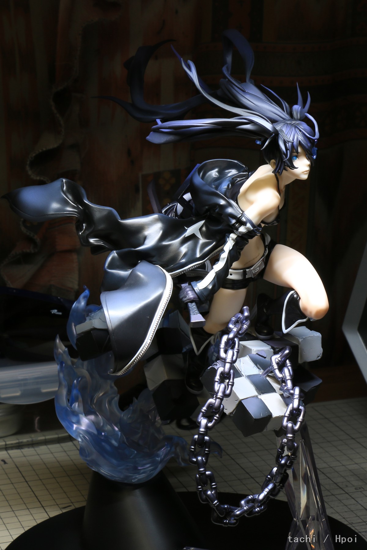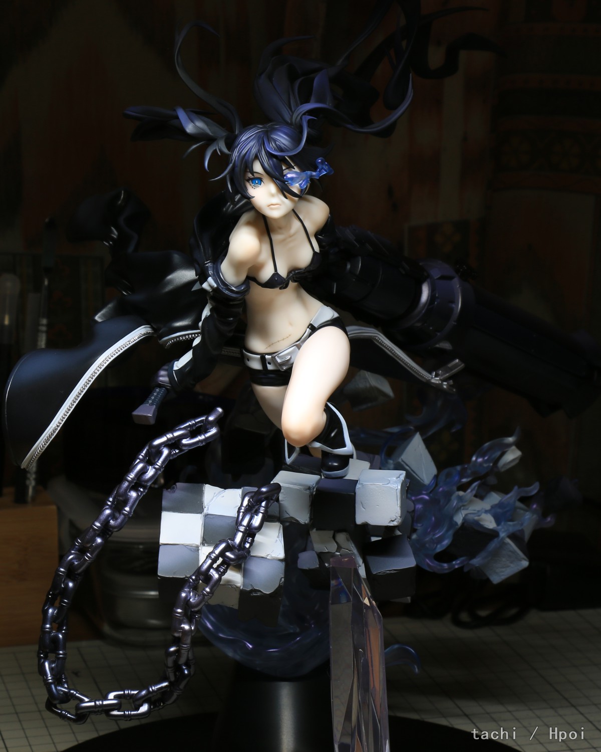 十周年直接弃单,所以对这只还是抱有很大期待。 拆包装塑封开始就觉得怎么紧得离谱,组装也是各种紧。既要对桩位又要避免干涉剐蹭,插桩大力出奇迹细小结构绝对会断,要注意哪些不是吃力结构。大部分组装桩位还是能摇一摇晃一晃慢慢怼进去,金属方桩无法完全安装到贴合。最后组装的辫子半截塑料桩怎么也进不去,只好拔出来打磨几下再装。 至于缺陷就看个人了,部分头发明显“z”字形分件痕迹、合模线,右辫子发尖打磨瑕疵,肩部阴影涂装略重,靴子白色分色界线与造型有偏差,炮内部做了膛线但是组合缝隙明显、旧化太塑料,剑刃太厚。 胜在造型优秀,作为黑岩15周年是非常不错的纪念