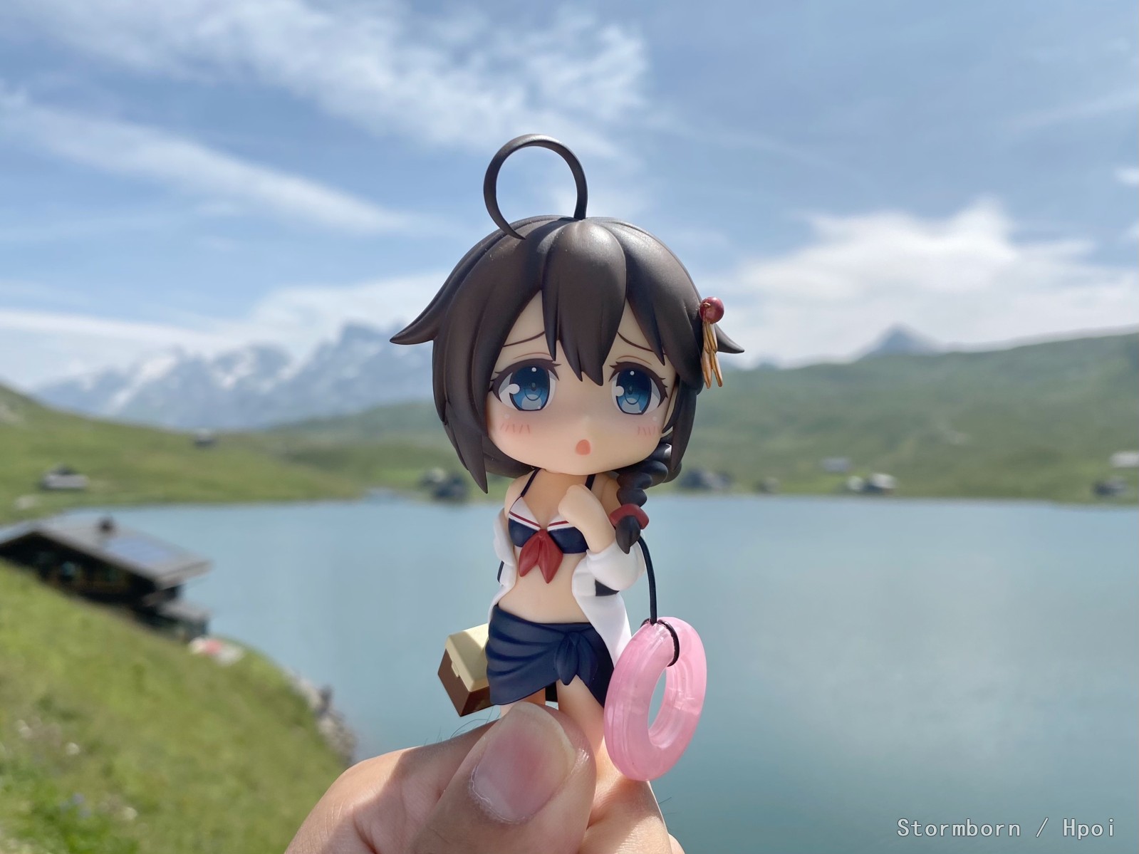 但是天天躺着也不是个事,于是趁着周末和n天一遇的好天气,绑上支架拄上拐,带上坐了十个小时飞机从某宝上领回来的女儿上山游湖。