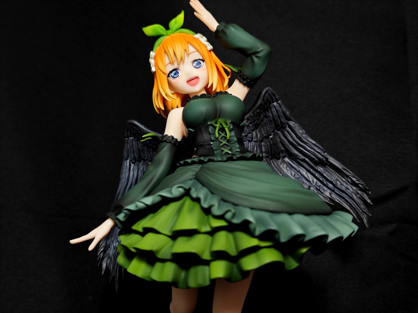 这款手办的整体造型非常吸引人,中野四叶以堕天使的形象呈现在手办上,给人一种优雅而神秘的感觉。细节方面,手办的涂装非常精致,色彩搭配也非常到位,使得整个手办看起来非常逼真。此外,手办的比例也很合适,中野四叶的身材和姿势都非常自然,展现出了堕天使的魅力。