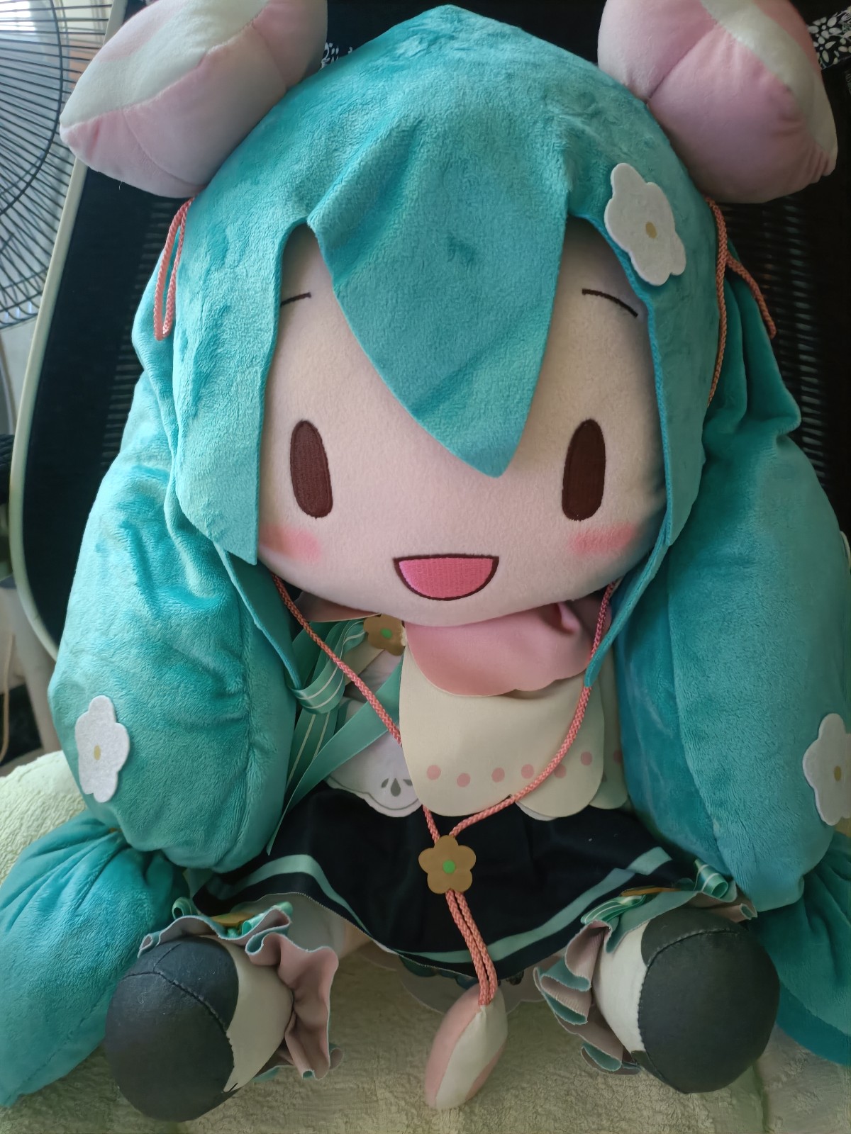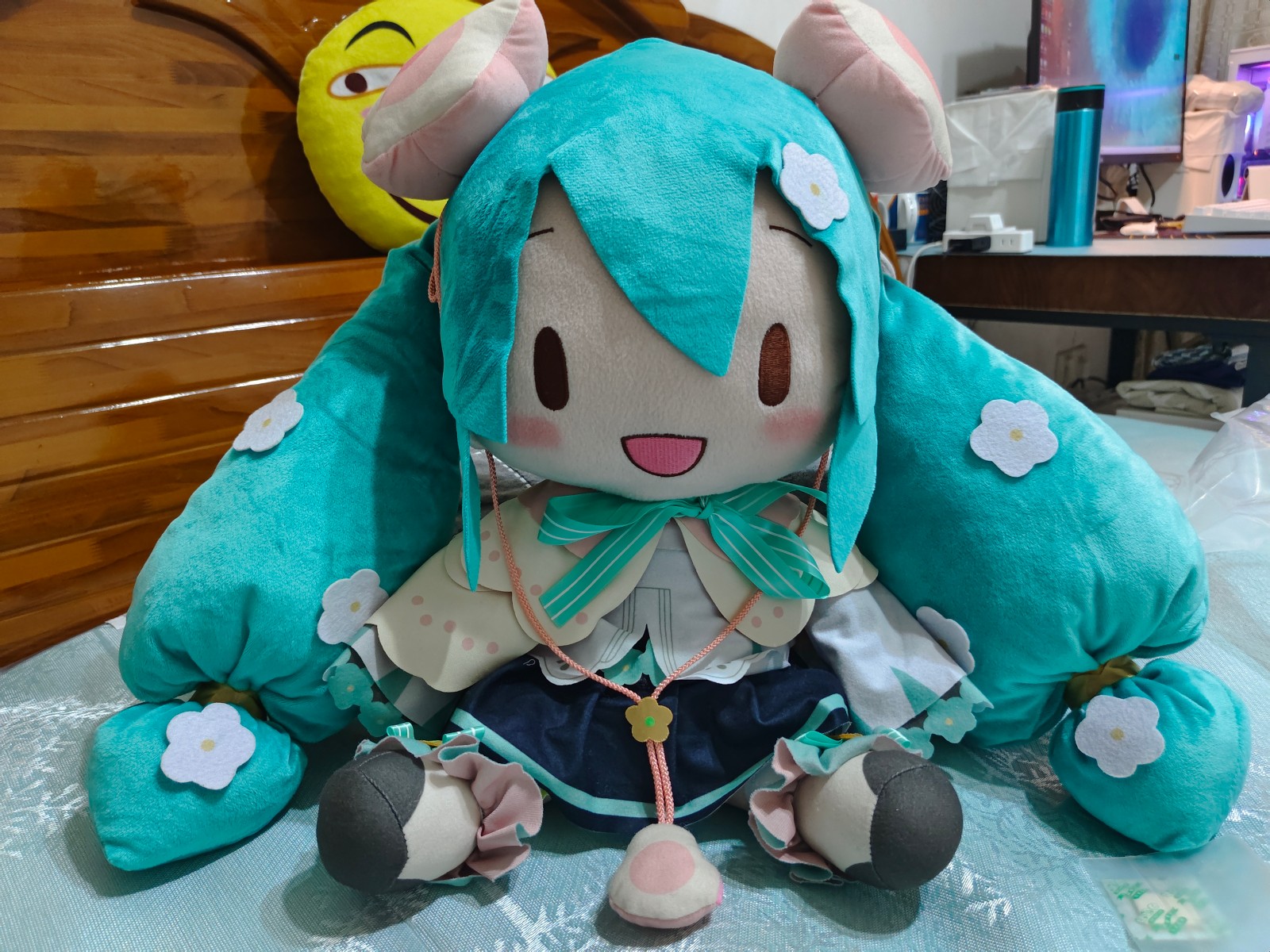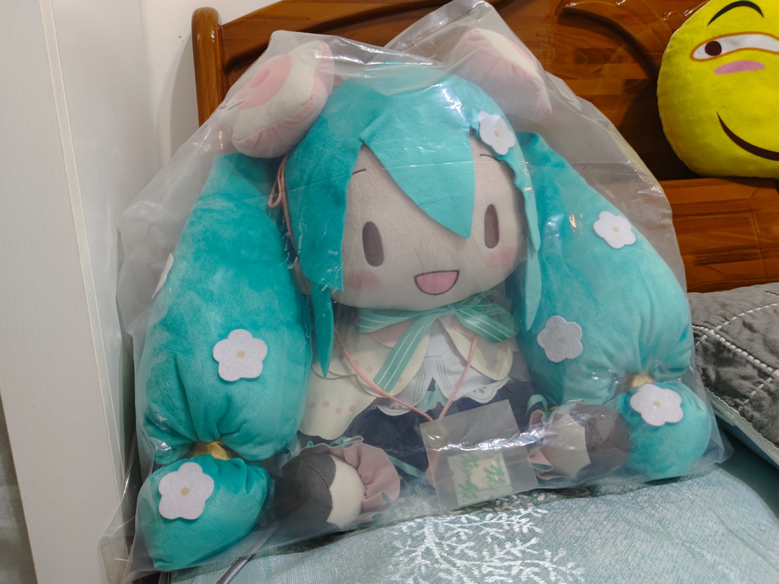 40cm花花是我最喜欢的fu,没有之一,在天猫进口超市蹲到了最后一批正版一手。刚开始买fufu的时候没有防尘概念,一直裸放枕头边,rua了几个月感觉有点脏,脑抽直接放洗衣机里洗,然后如图。 第二张图是刚买回来的时候,是不是很有小美女的感觉,第三张图就是洗完的样子,当时感觉天都要塌下来了。 因为自己不会裁缝,于是闲鱼找手作娘,寄修了两次,两个小姐姐都很棒很细心。第一次把大体恢复了,但是棉花充多了,然后第二次又弄。 最后弄完依然没有恢复当初的样子,都想重新买一个了,但是想着不能抛弃我的花花。 我依然最爱花花,所有fu里笑颜最治愈的花花!