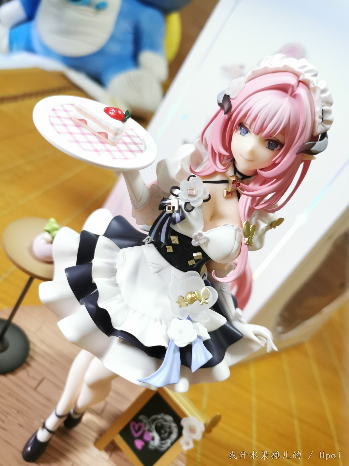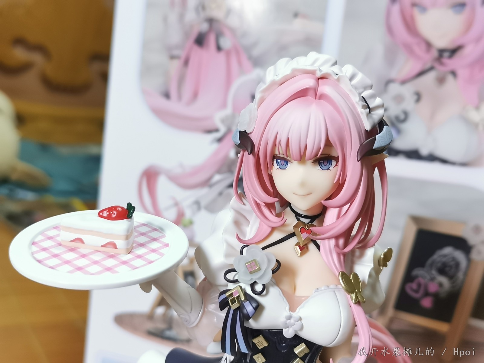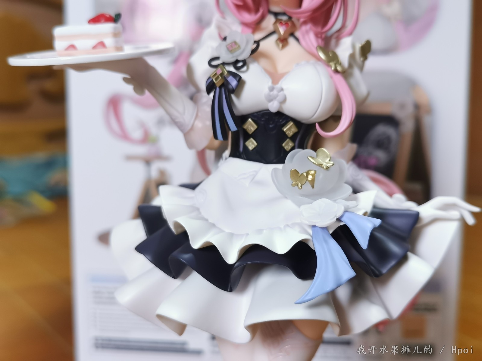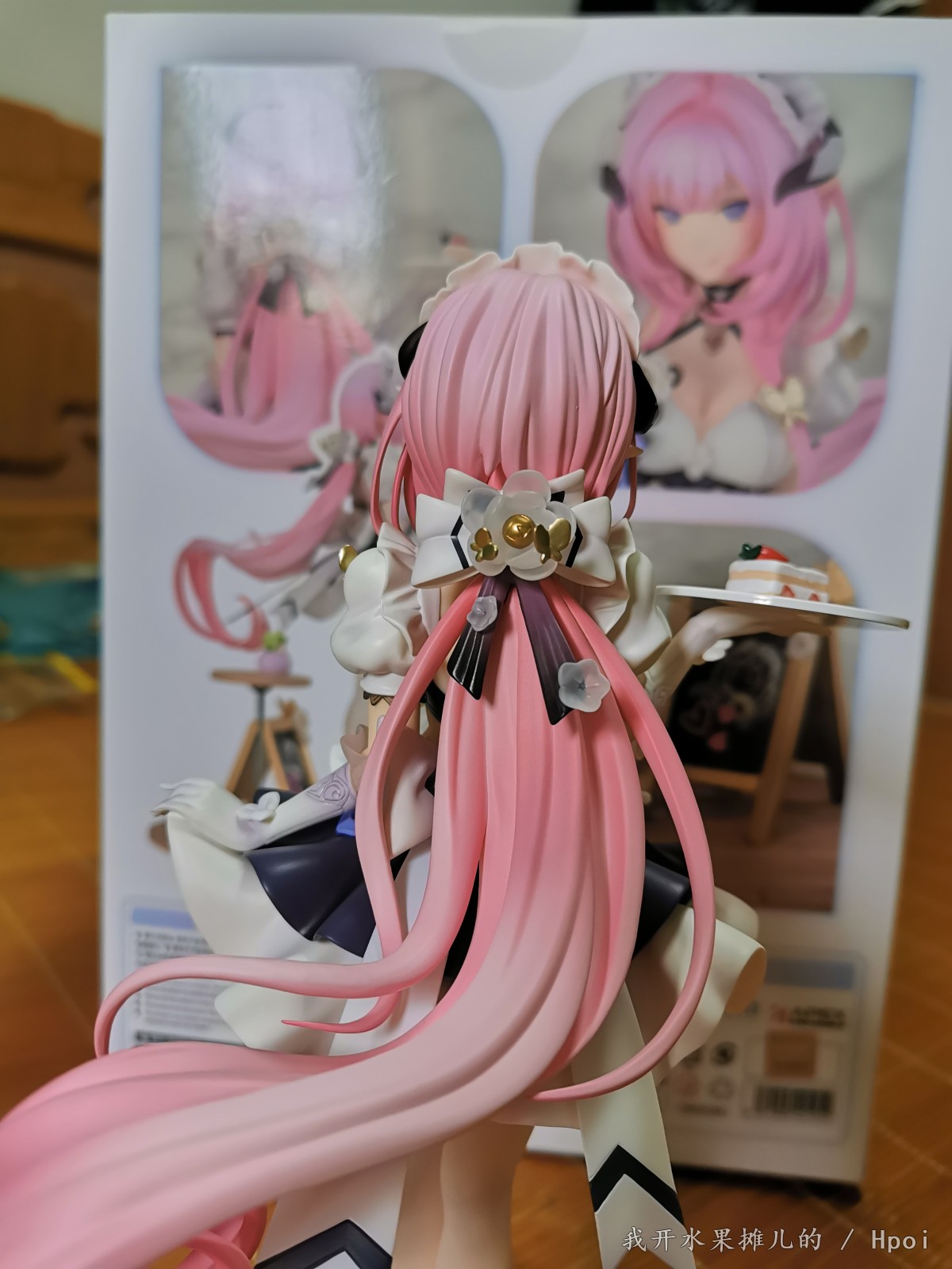 手办的外壳非常漂亮,虽然从正面看可能稍显平淡,但是其他面都印着爱莉真的非常的漂亮(可以用来做展示盒 但是因为其他几面都不透明的原因,可能观赏会受到很大的角度限制)。而且顺带一提就是这个手办,真的闻起来好香,我不知道apx的手办是不是都是这个味道,也不知道是我心里面爱门的加成还是怎么?