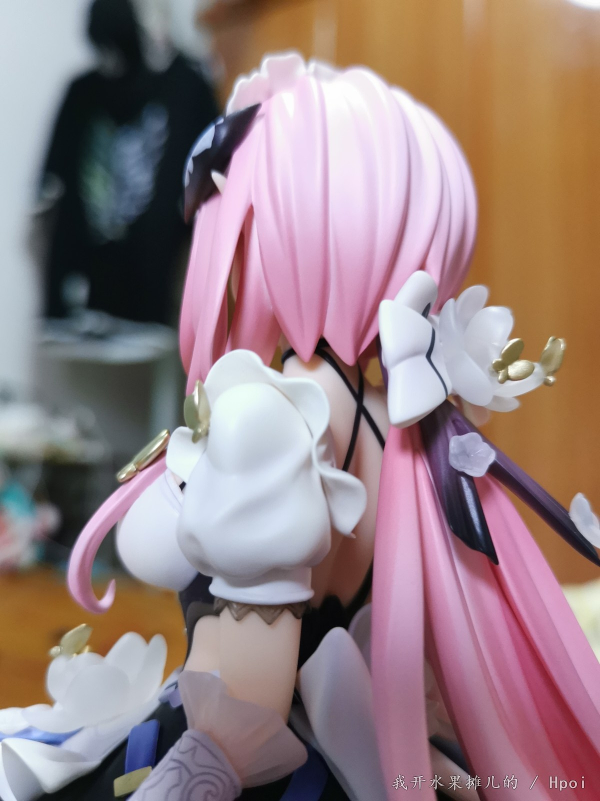 或许正面不能看出头发的精细,但是转到背面就可以看出来了,头发的绑带甚至都有渐变,同时也有花朵和蝴蝶的装饰。