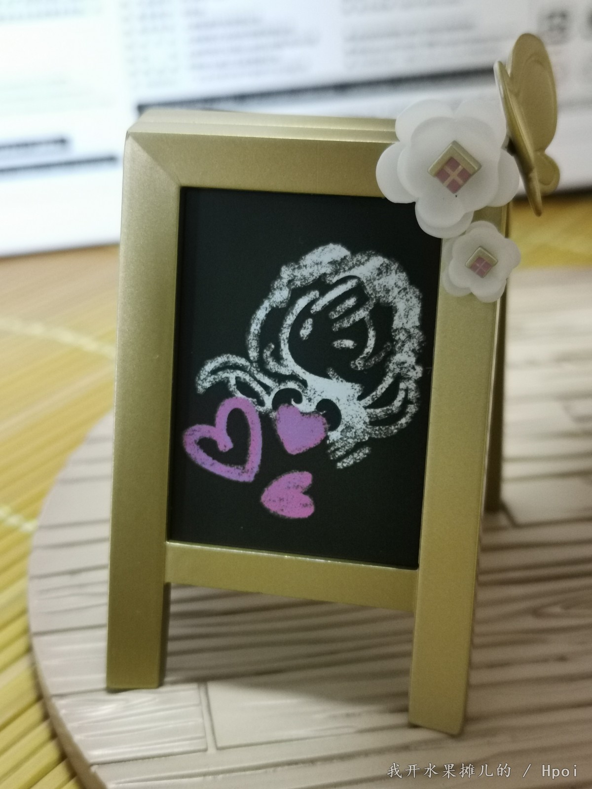 甜点店的小招牌也做了出来,粉笔涂装非常有真实生活的那种感觉,周围金边的表现以及花朵蝴蝶的刻画,让这个小牌子又多了一份色彩。