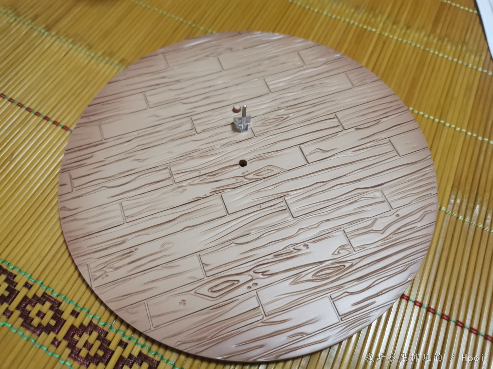 先来看看地台,地台的话是薄薄的一个仿木制的圆形底座,边缘有做阴影的处理,木制地板的纹路刻画还可以。