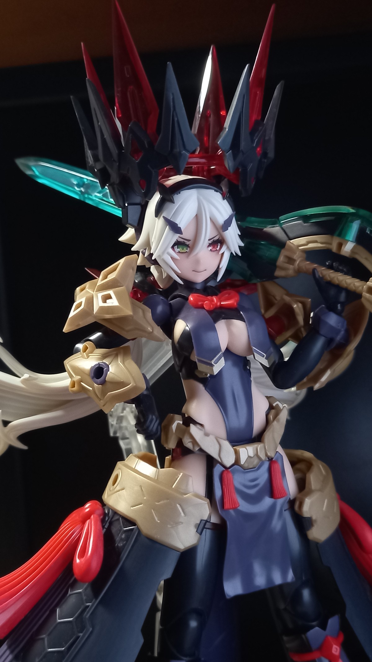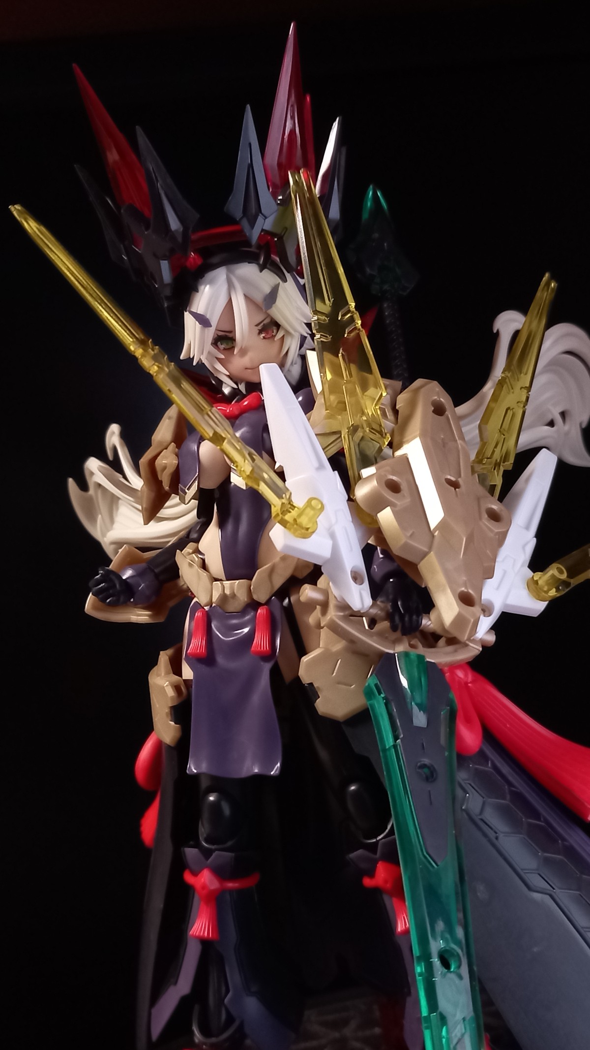 轻装版的套路和朱罗的很像,武装共通但位置+武器组合 风格上轻装和式风格,重装更有机械感 个人感觉上重装的配件和轻装不搭 但相反轻装的装上重装好像不错 关于十束剑是绿色一事,有时是需要违和感产生奇怪的化学作用 在一堆红黑金色中那把剑颜色更容易引人注意 而且安在圆环和天丛云剑交叉很帅