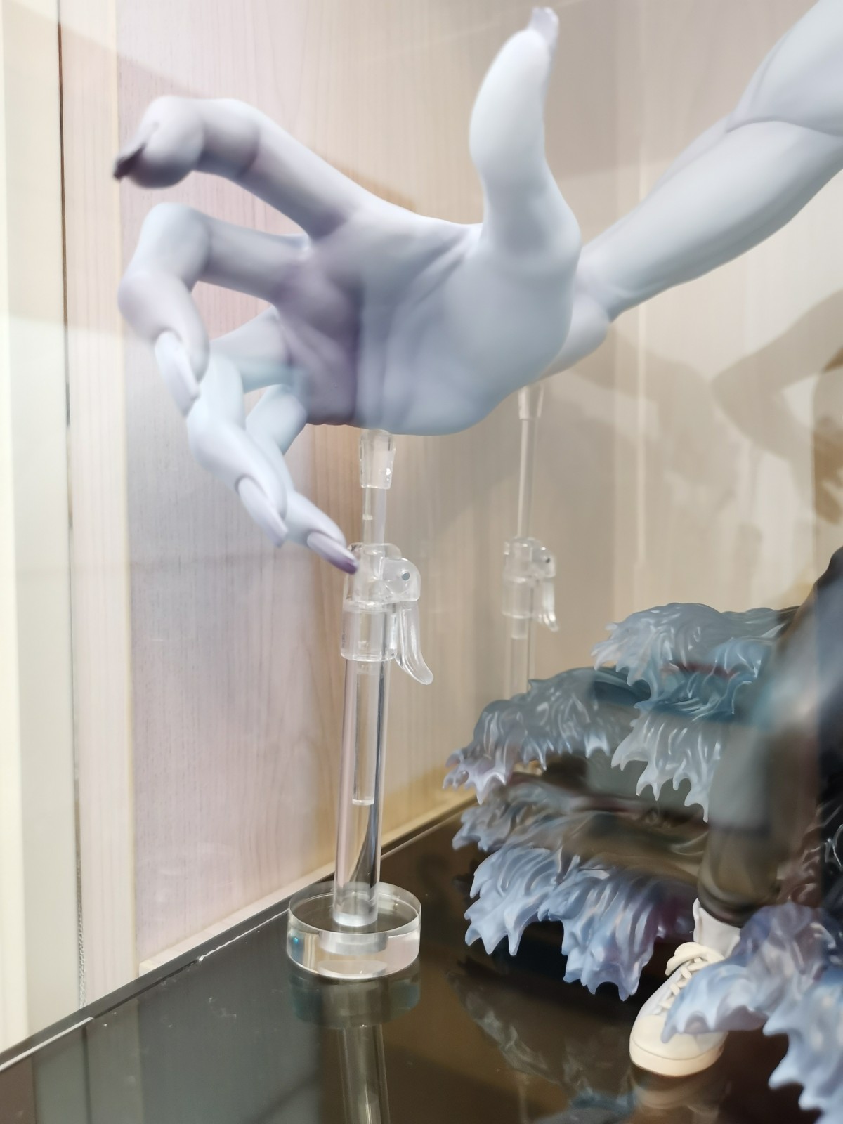 最后支撑的效果甚至把底座,摆过的人都知道这手办有多重,我现在的支撑甚至都把底座给抬起来了一些