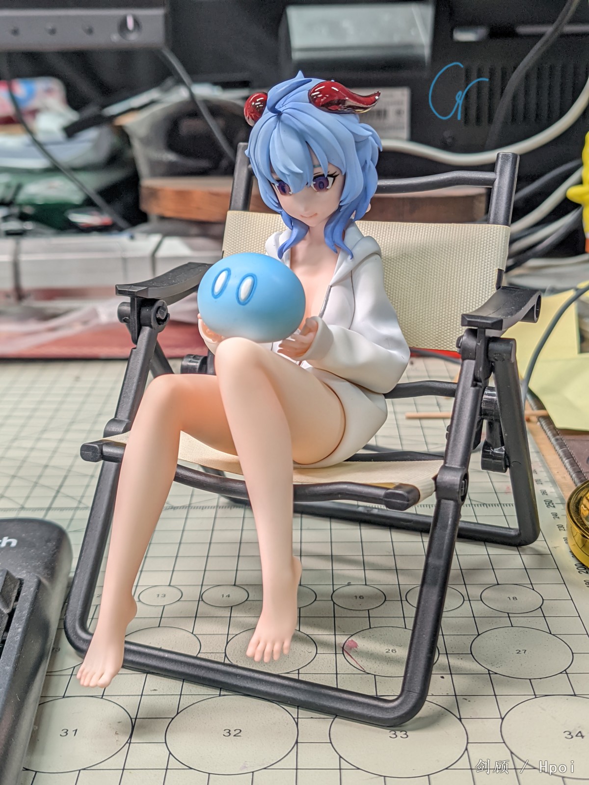 第一次做人形gk,涂装水平不是太好,这一只甘雨没有附带水贴,眼睛是手绘的,修改的次数有点多,眼睛边缘稍微有点脏。