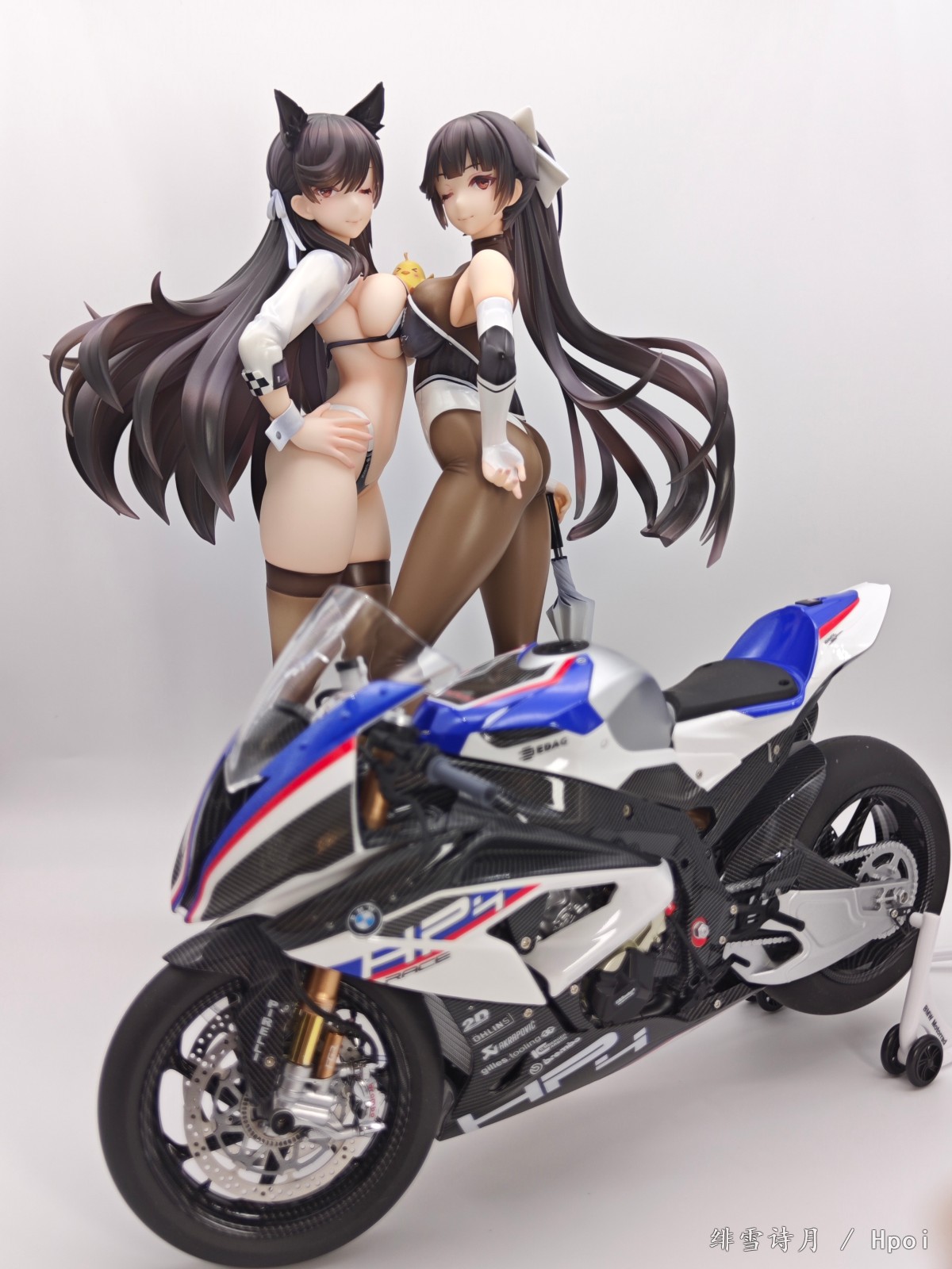 本来想用1/8的乐高兰博基尼当背景,太大了,40厘米小灯箱放不下,拿1/9的宝马HP4摩托凑合了。