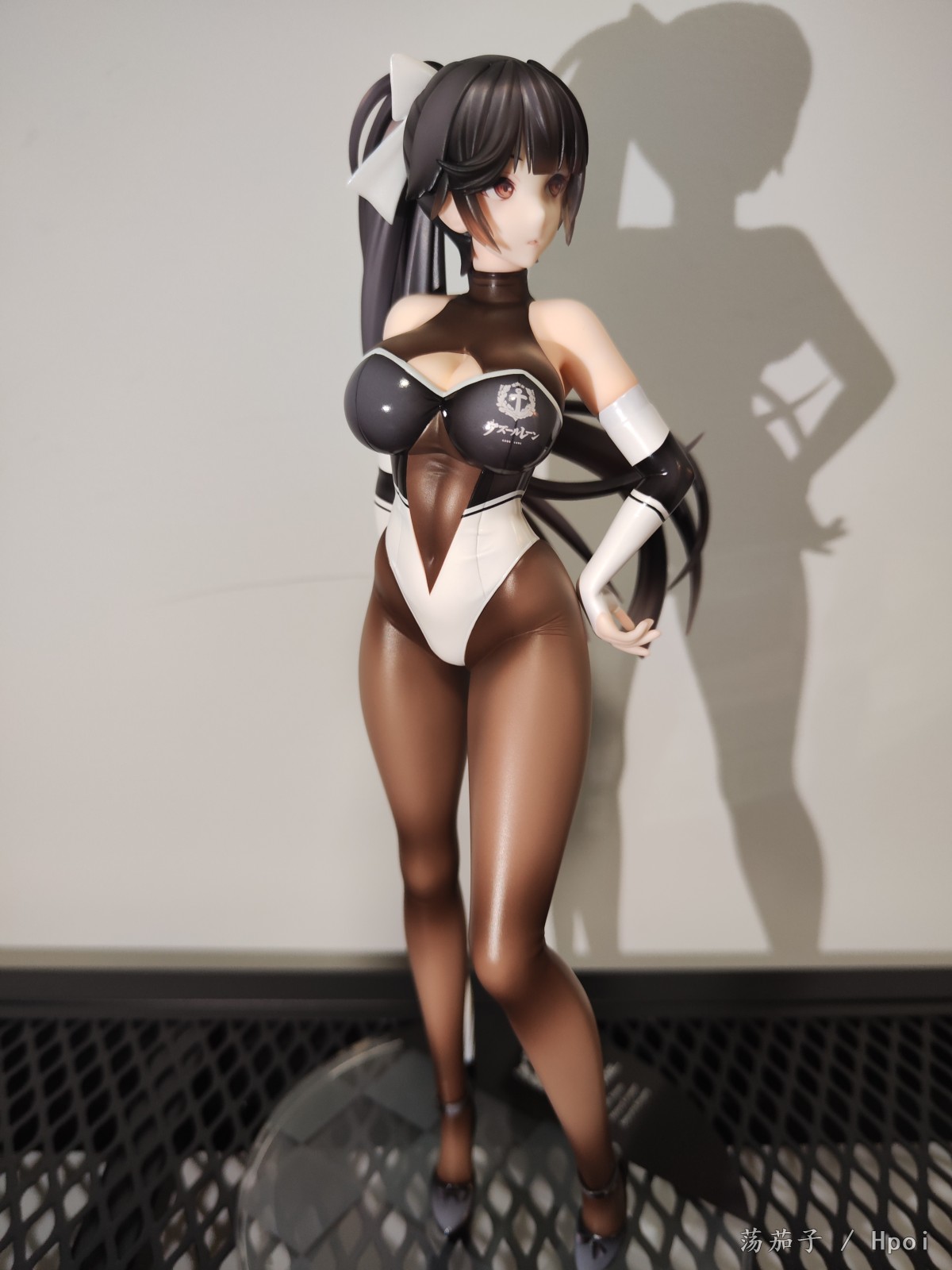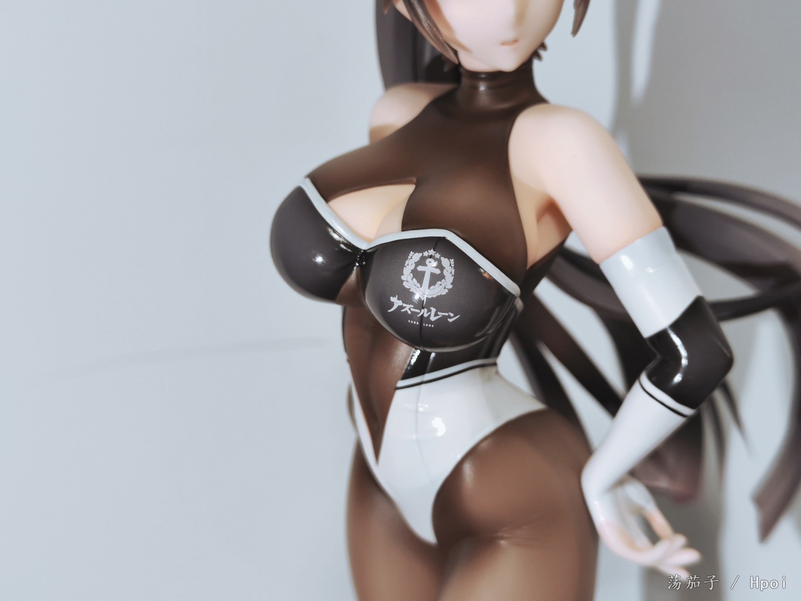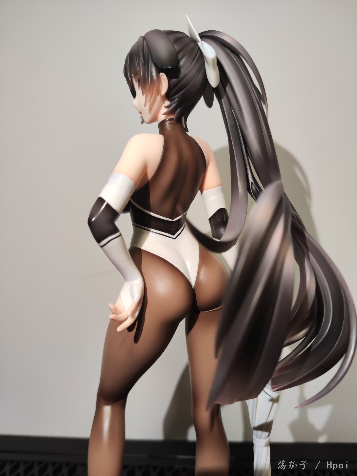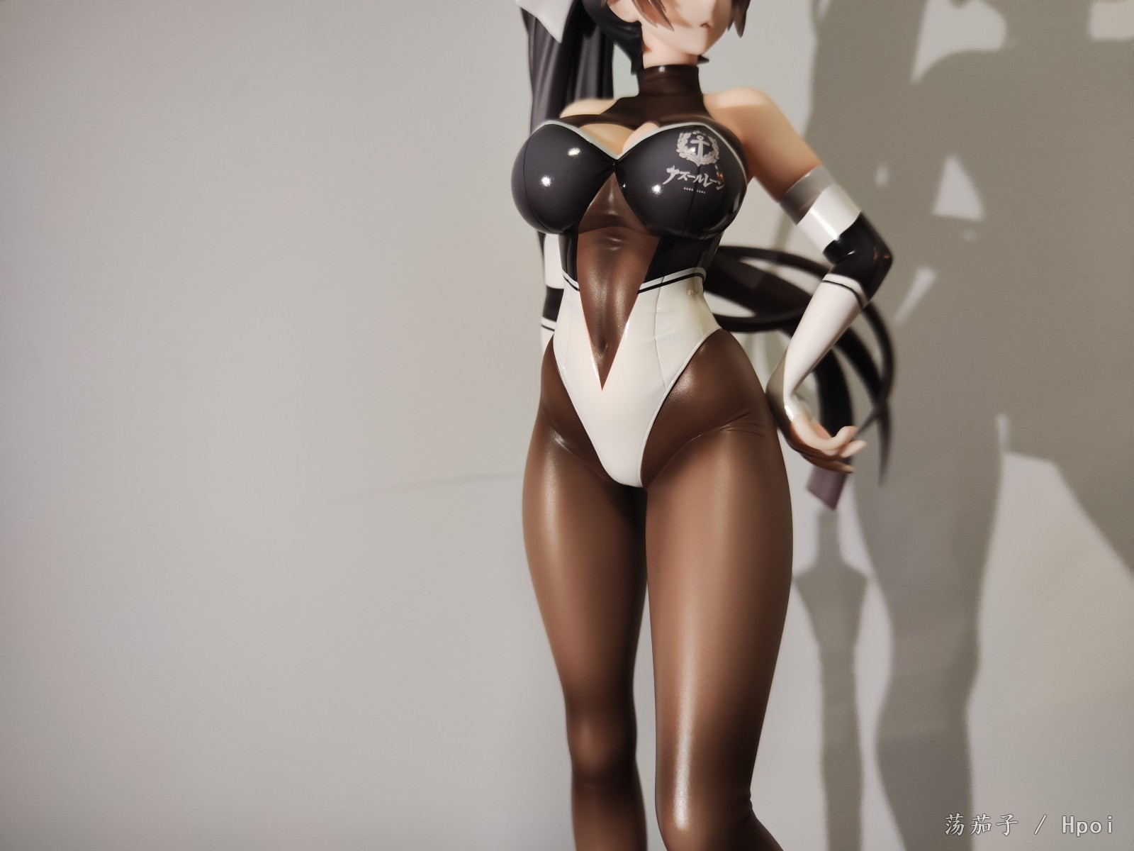 如其名字“至高焦点”,她确实抓住了我的视线,成为了我的焦点。我给她的主题是冷淡认真尽责高傲又自带神秘感。 1.面部:是该主题最明显的体现。 2.整体:最抓眼球的莫过于20D左右的微光深咖丝袜质地连体衣。收束肉体的同时,将小腿后肌群、大腿肌群、蜜桃臀、沙漏腰、小腹、北半球、锁骨、背部的肉体线条勾勒的淋漓尽致。 胯部、腘窝、臀线处的丝袜褶皱和颜色渐变,加上被胶衣和黑丝包裹的南半球上唯一的开放区域,让你可以从微观角度发挥想象,进入她的肉体和丝袜间的空间进行游走,你猜双球在看不到的地方是如何被温柔包裹的呢? 和深色连体衣形成强烈对比的白色深V赛车女郎制服,引诱着视线从上往下聚焦于天堂和地狱,一不小心就会沉沦难以自拔。 照片是想借用光和阴影来展现出身体线条和连体衣质感,点题:至高焦点。 3.想改进的地方:从南半球的地方可以看出这连体衣做的太厚了。实物的连体衣颜色是深咖,我还是更喜欢木shiyo原画中的颜色。 题外话:如何在物化和欣赏之间找到平衡点呢?总之,她很美。