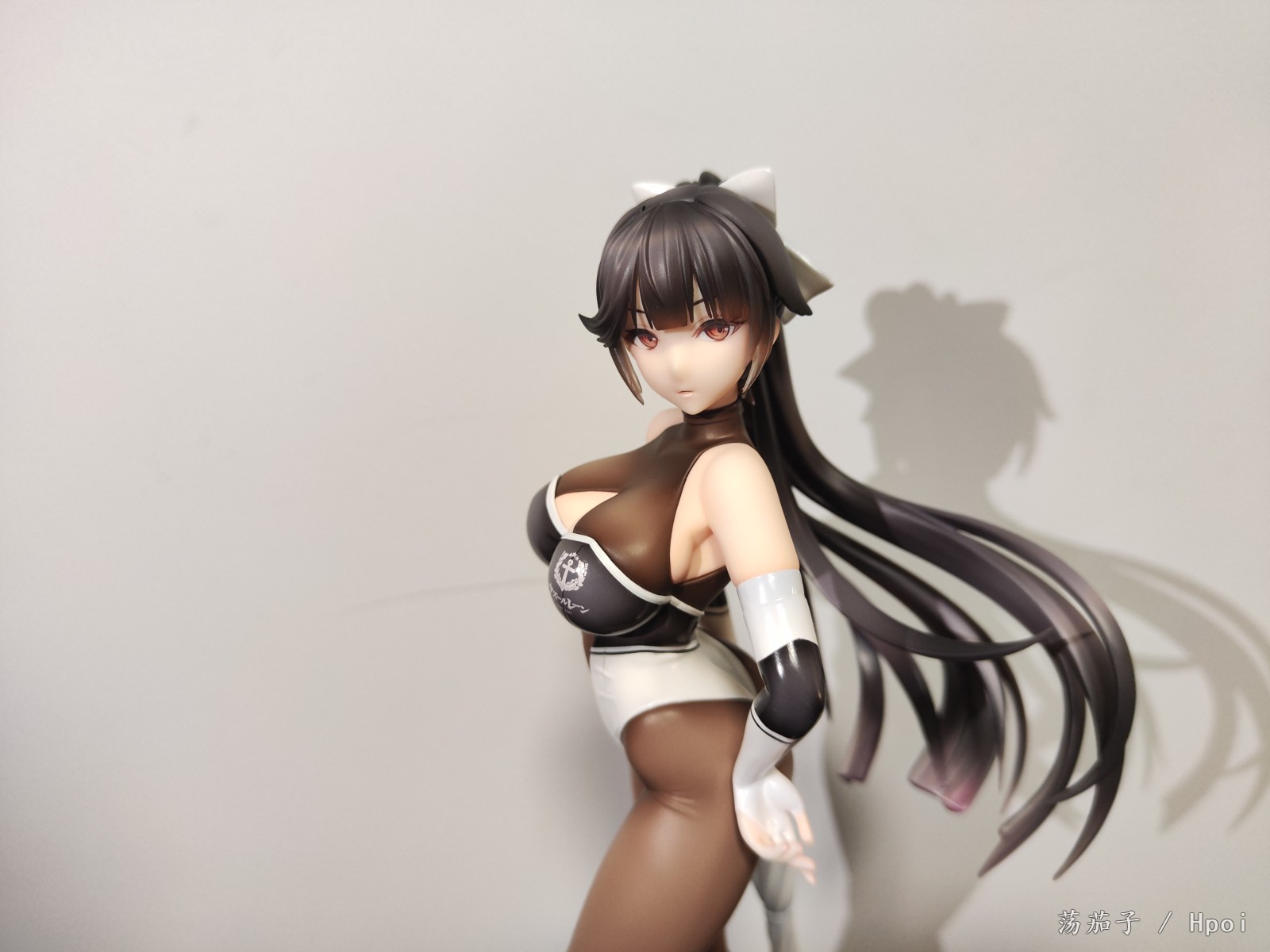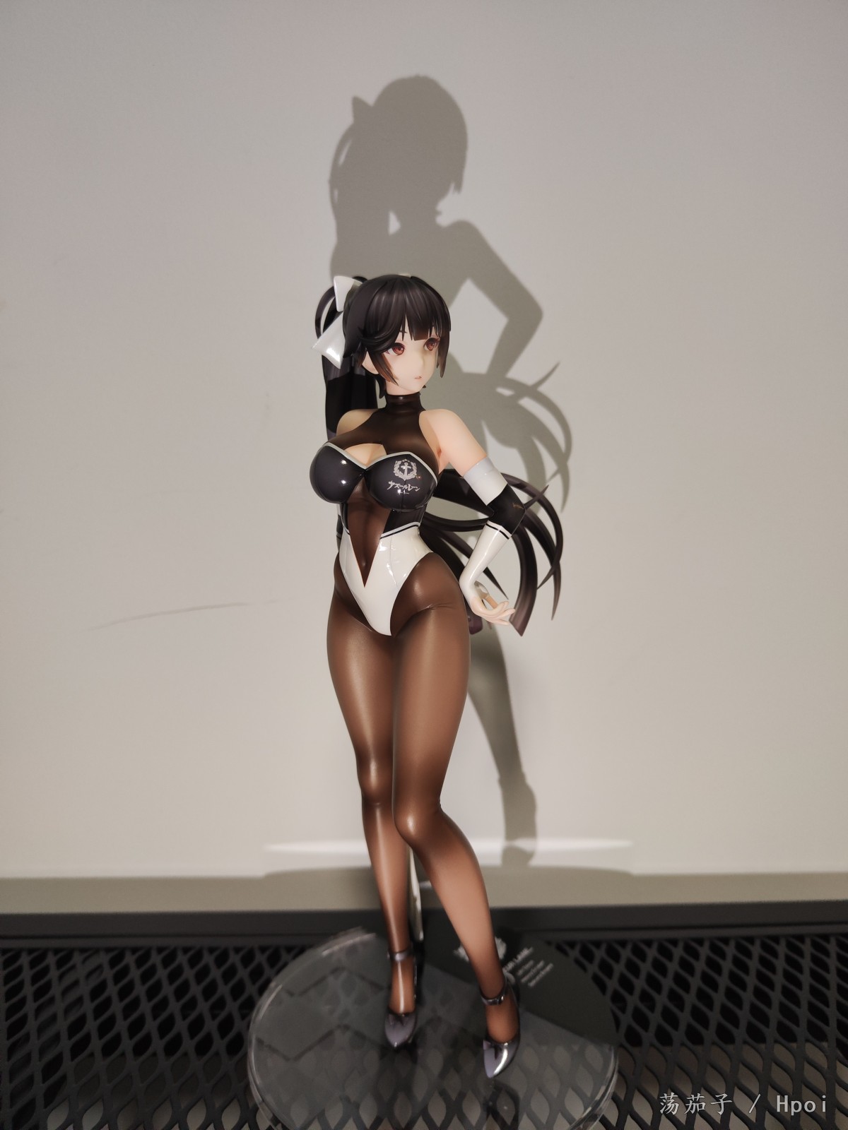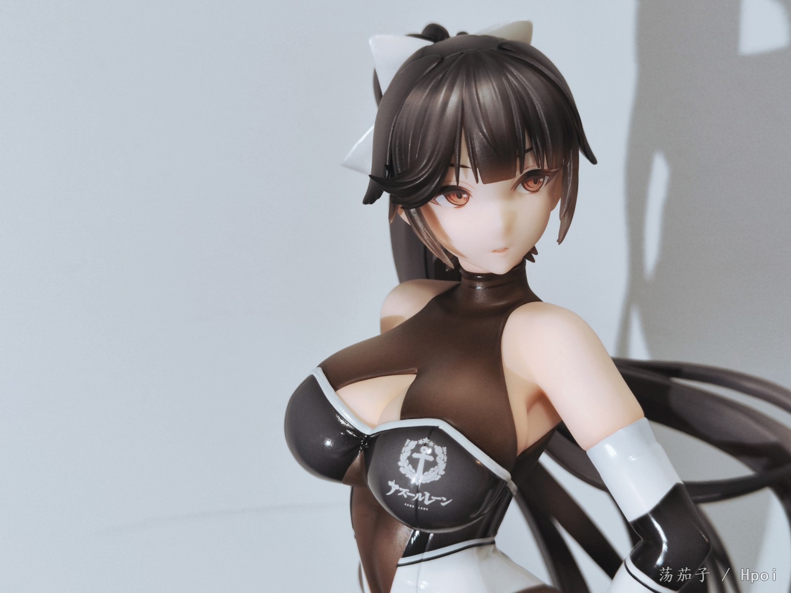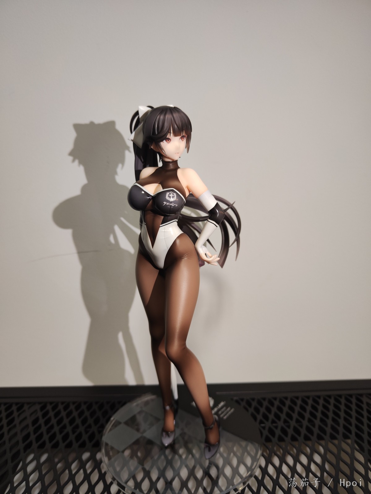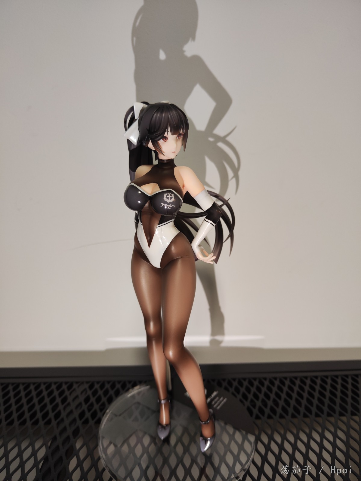 如其名字“至高焦点”,她确实抓住了我的视线,成为了我的焦点。我给她的主题是冷淡认真尽责高傲又自带神秘感。 1.面部:是该主题最明显的体现。 2.整体:最抓眼球的莫过于20D左右的微光深咖丝袜质地连体衣。收束肉体的同时,将小腿后肌群、大腿肌群、蜜桃臀、沙漏腰、小腹、北半球、锁骨、背部的肉体线条勾勒的淋漓尽致。 胯部、腘窝、臀线处的丝袜褶皱和颜色渐变,加上被胶衣和黑丝包裹的南半球上唯一的开放区域,让你可以从微观角度发挥想象,进入她的肉体和丝袜间的空间进行游走,你猜双球在看不到的地方是如何被温柔包裹的呢? 和深色连体衣形成强烈对比的白色深V赛车女郎制服,引诱着视线从上往下聚焦于天堂和地狱,一不小心就会沉沦难以自拔。 照片是想借用光和阴影来展现出身体线条和连体衣质感,点题:至高焦点。 3.想改进的地方:从南半球的地方可以看出这连体衣做的太厚了。实物的连体衣颜色是深咖,我还是更喜欢木shiyo原画中的颜色。 题外话:如何在物化和欣赏之间找到平衡点呢?总之,她很美。