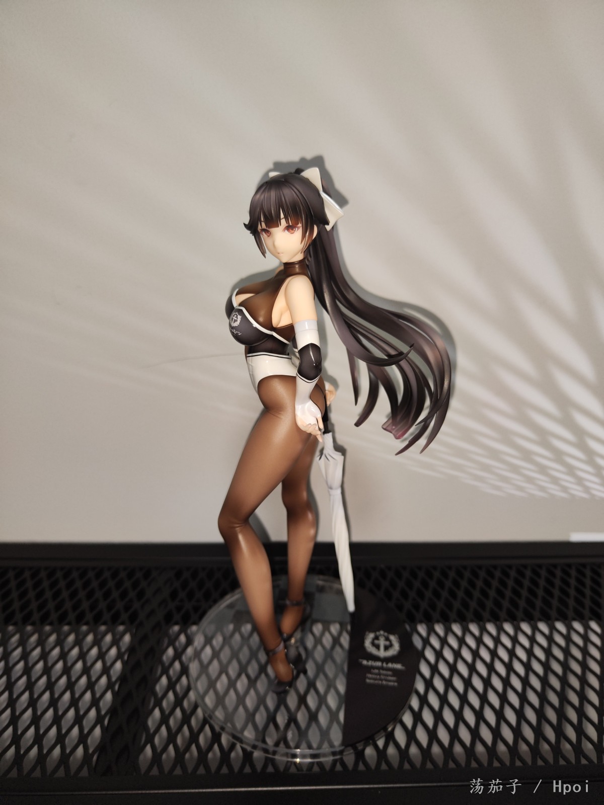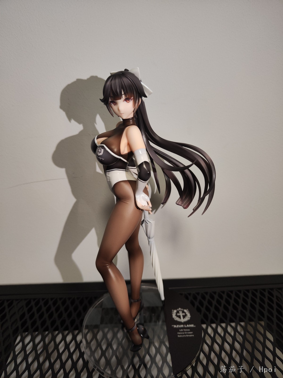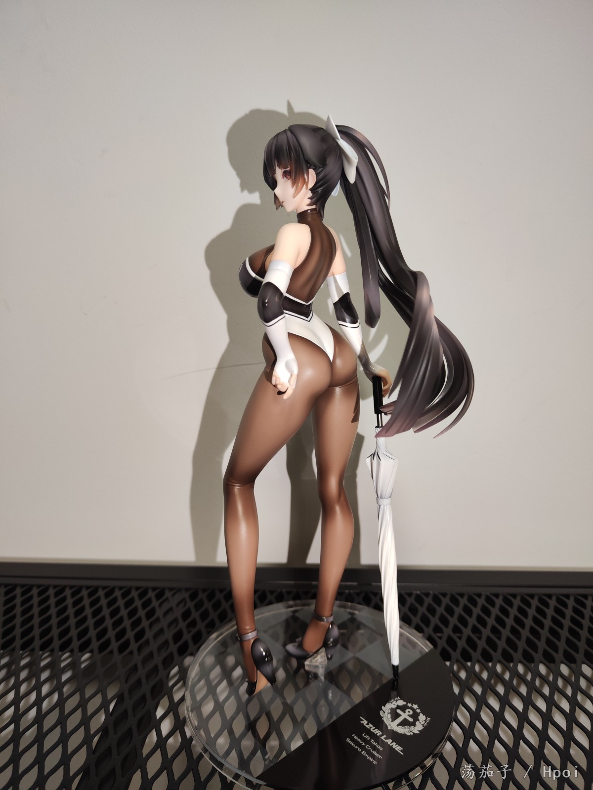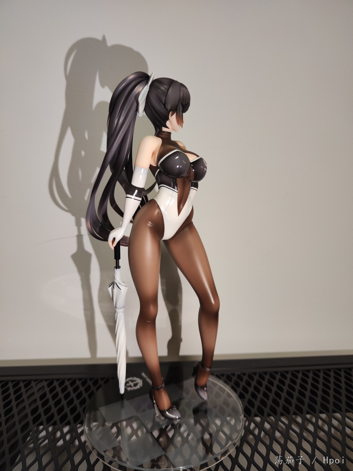 如其名字“至高焦点”,她确实抓住了我的视线,成为了我的焦点。我给她的主题是冷淡认真尽责高傲又自带神秘感。 1.面部:是该主题最明显的体现。 2.整体:最抓眼球的莫过于20D左右的微光深咖丝袜质地连体衣。收束肉体的同时,将小腿后肌群、大腿肌群、蜜桃臀、沙漏腰、小腹、北半球、锁骨、背部的肉体线条勾勒的淋漓尽致。 胯部、腘窝、臀线处的丝袜褶皱和颜色渐变,加上被胶衣和黑丝包裹的南半球上唯一的开放区域,让你可以从微观角度发挥想象,进入她的肉体和丝袜间的空间进行游走,你猜双球在看不到的地方是如何被温柔包裹的呢? 和深色连体衣形成强烈对比的白色深V赛车女郎制服,引诱着视线从上往下聚焦于天堂和地狱,一不小心就会沉沦难以自拔。 照片是想借用光和阴影来展现出身体线条和连体衣质感,点题:至高焦点。 3.想改进的地方:从南半球的地方可以看出这连体衣做的太厚了。实物的连体衣颜色是深咖,我还是更喜欢木shiyo原画中的颜色。 题外话:如何在物化和欣赏之间找到平衡点呢?总之,她很美。