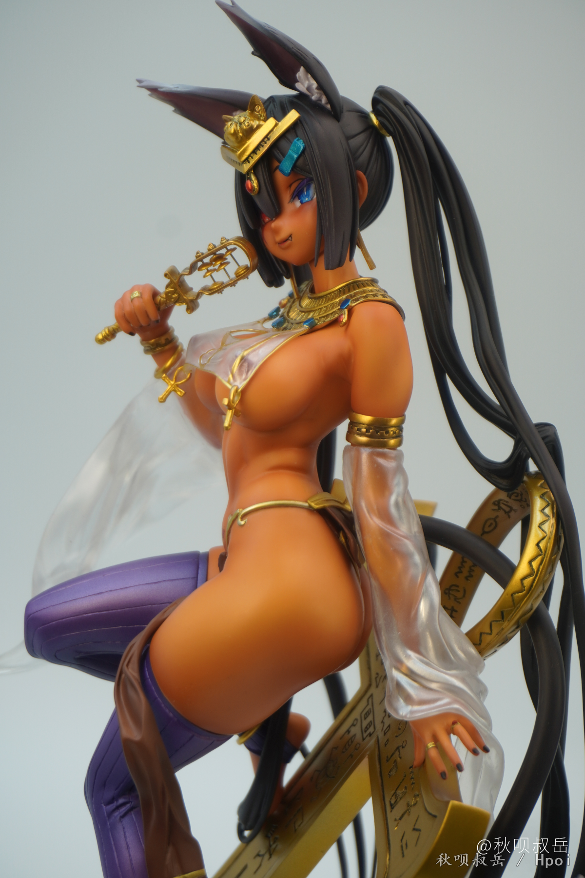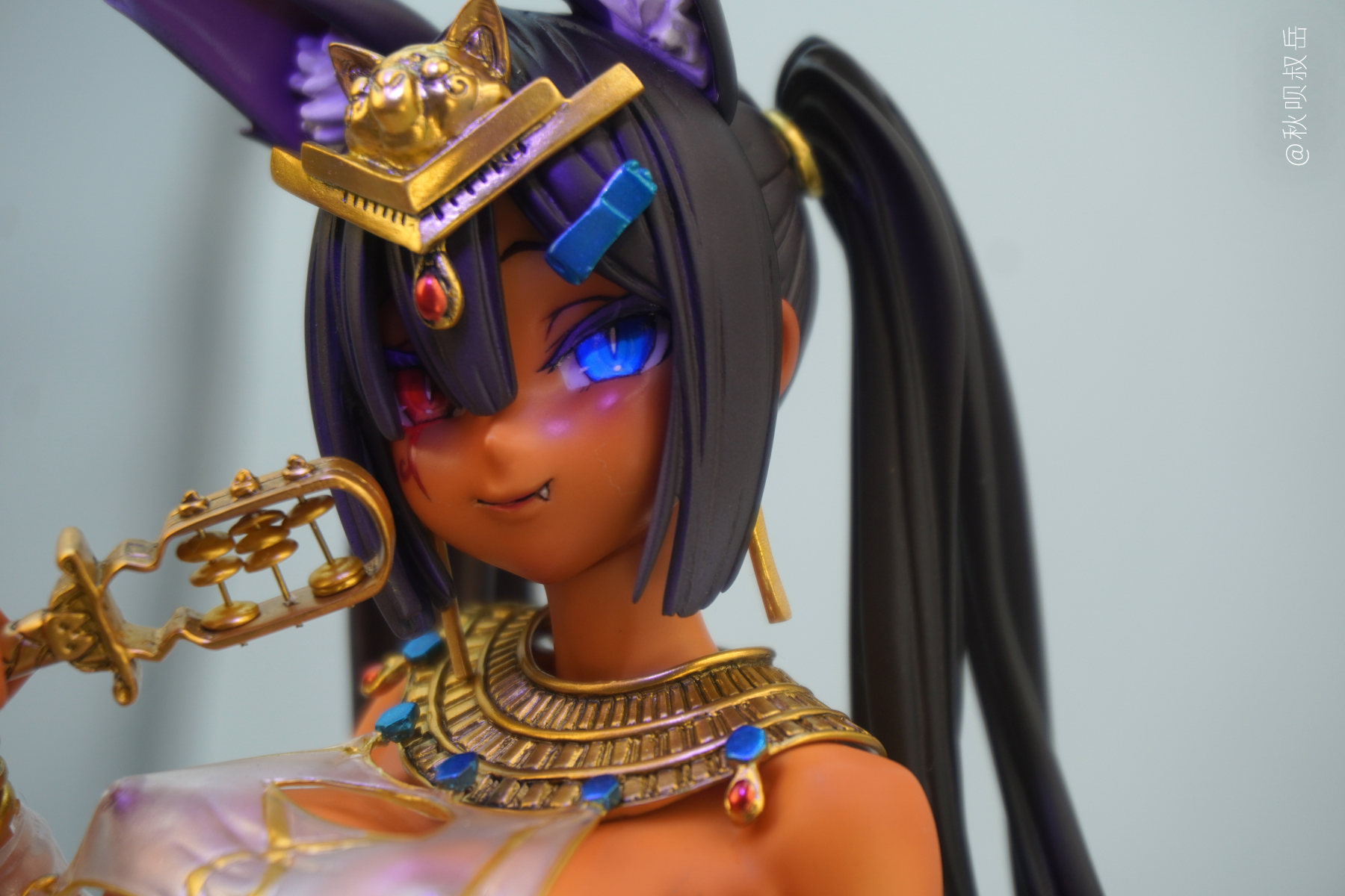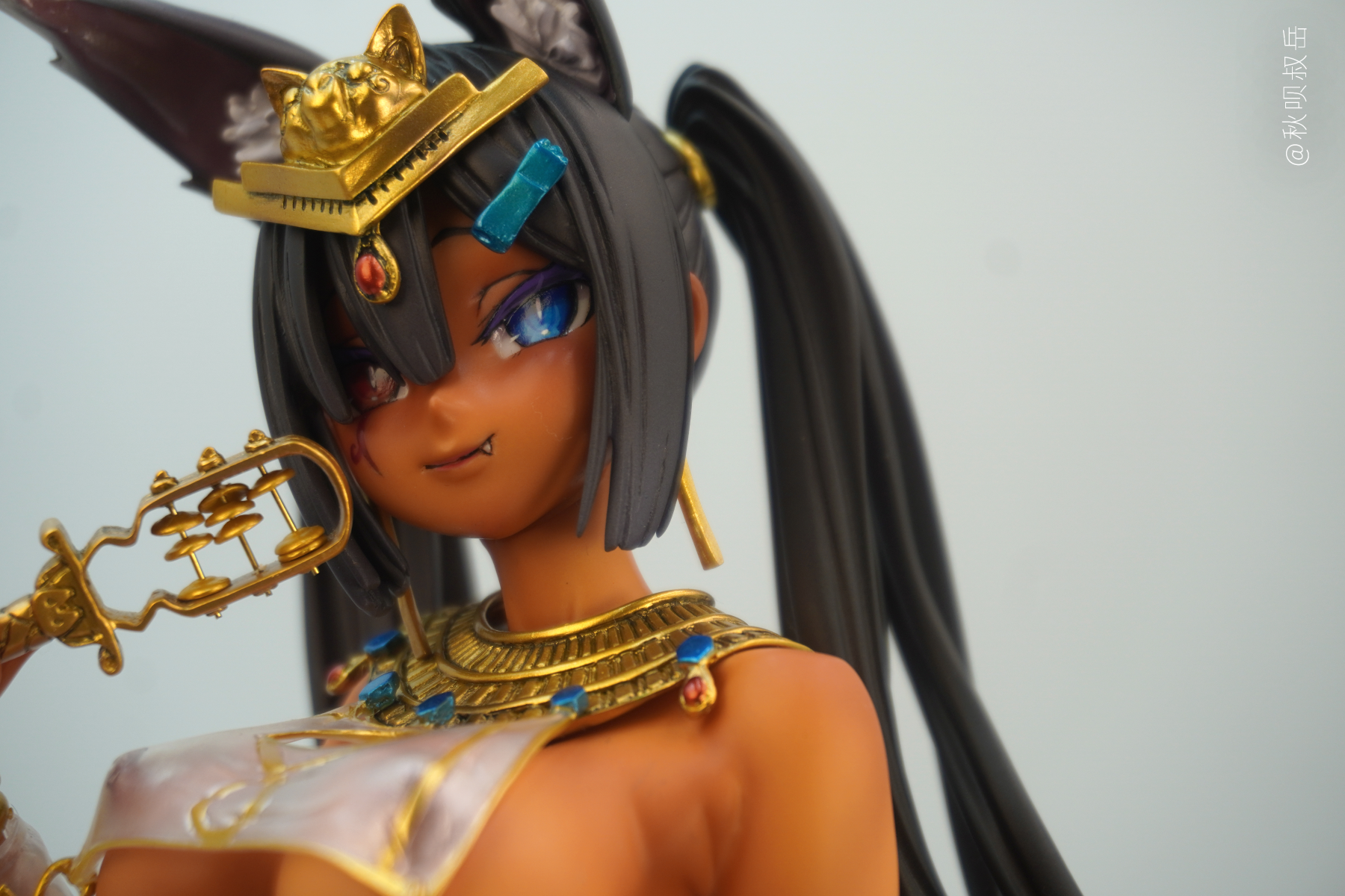 全程使用透明漆的黑皮。比起怎么喷黑皮,反而是怎么拍黑皮给我整不会了… 眼睛和圣甲虫喷了荧光透明色。 组装确实有点复杂,埋了几个磁桩或铜桩好让头发更贴合在十字架或地台上,然而拍的时候有一撮还是从十字架上翘起来了没注意到…