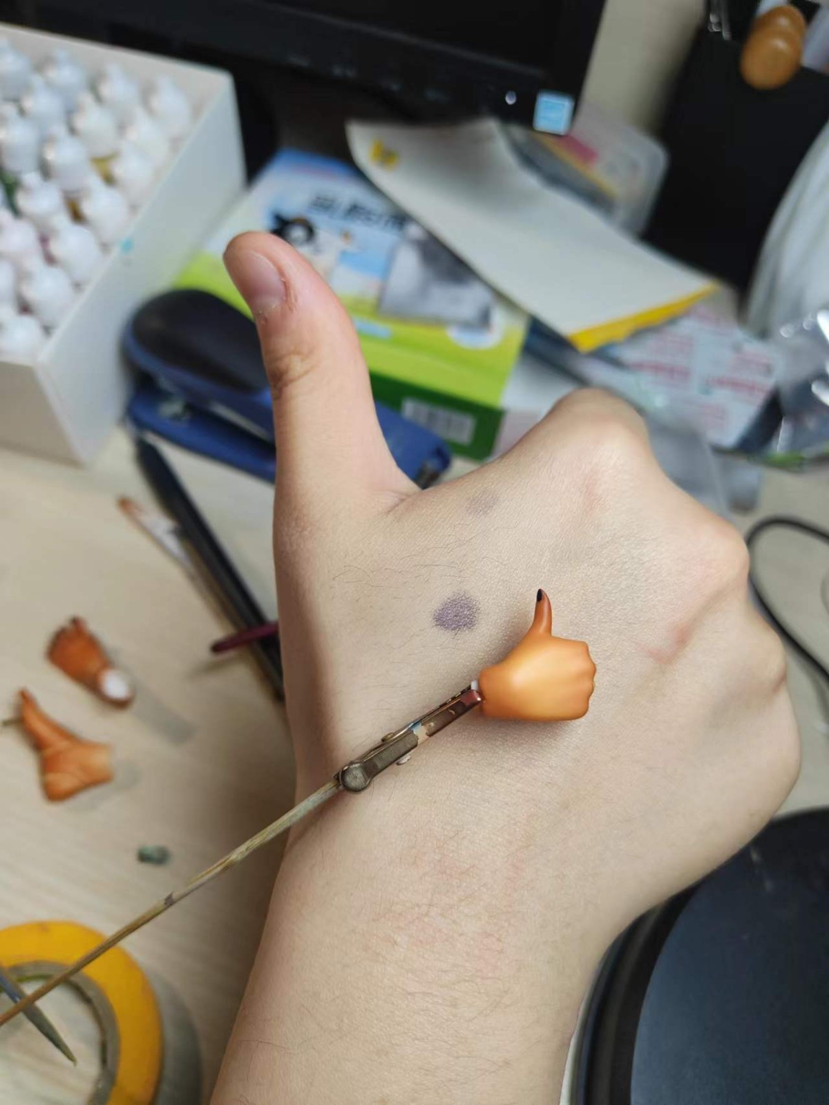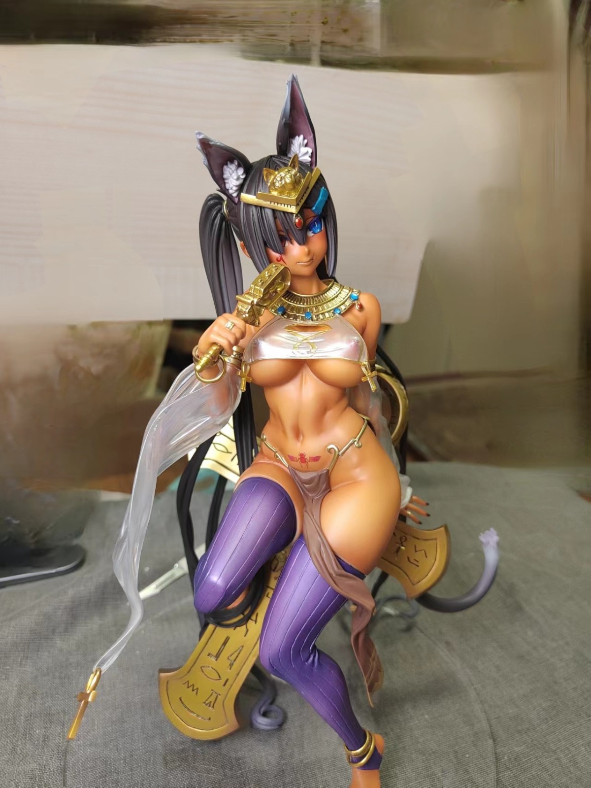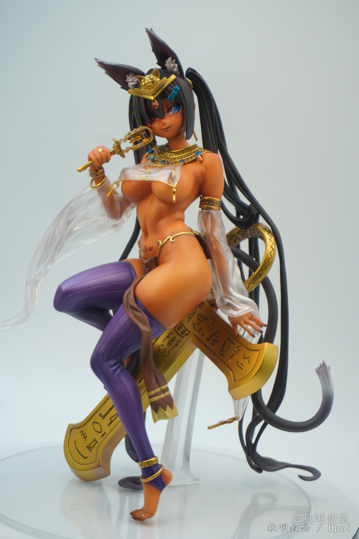 全程使用透明漆的黑皮。比起怎么喷黑皮,反而是怎么拍黑皮给我整不会了… 眼睛和圣甲虫喷了荧光透明色。 组装确实有点复杂,埋了几个磁桩或铜桩好让头发更贴合在十字架或地台上,然而拍的时候有一撮还是从十字架上翘起来了没注意到…
