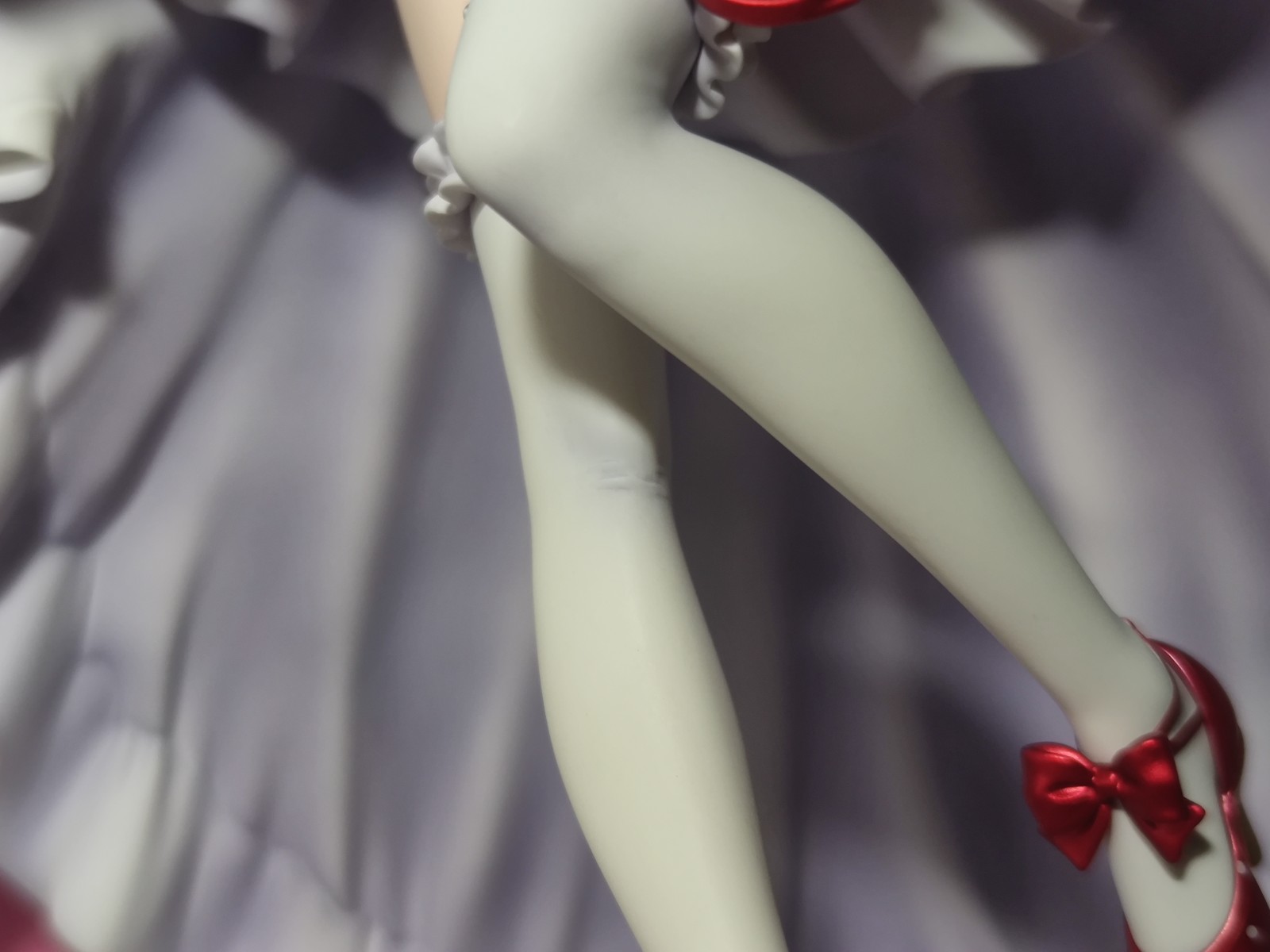 好不容易拆开塑料框,开始简单看一下情况,第一眼就发现右腿膝盖位置有点奇妙,有点暗色的皱痕看起来像瑕疵,但是对比一下其他返图感觉又好似本来就是这样设计,虽然其他返图看起来颜色没那么深就是了。