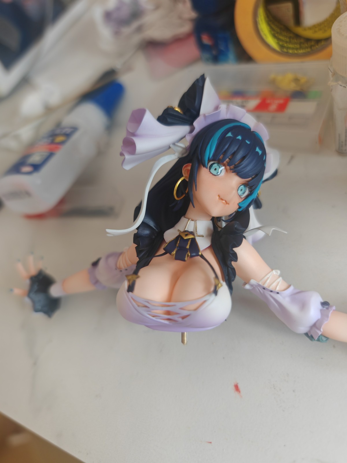 丝袜,这次是做比较后的丝袜,我不喜欢白色上加灰,或者蓝做阴影,但如果只是单纯肤色,然后阴影上白,这样的效果又不是很符合阴影的逻辑,这次试着在高光处喷了些白色,想更有层次点,感觉还行,当然喷完消光,拍照的时候就感觉喷的太多了