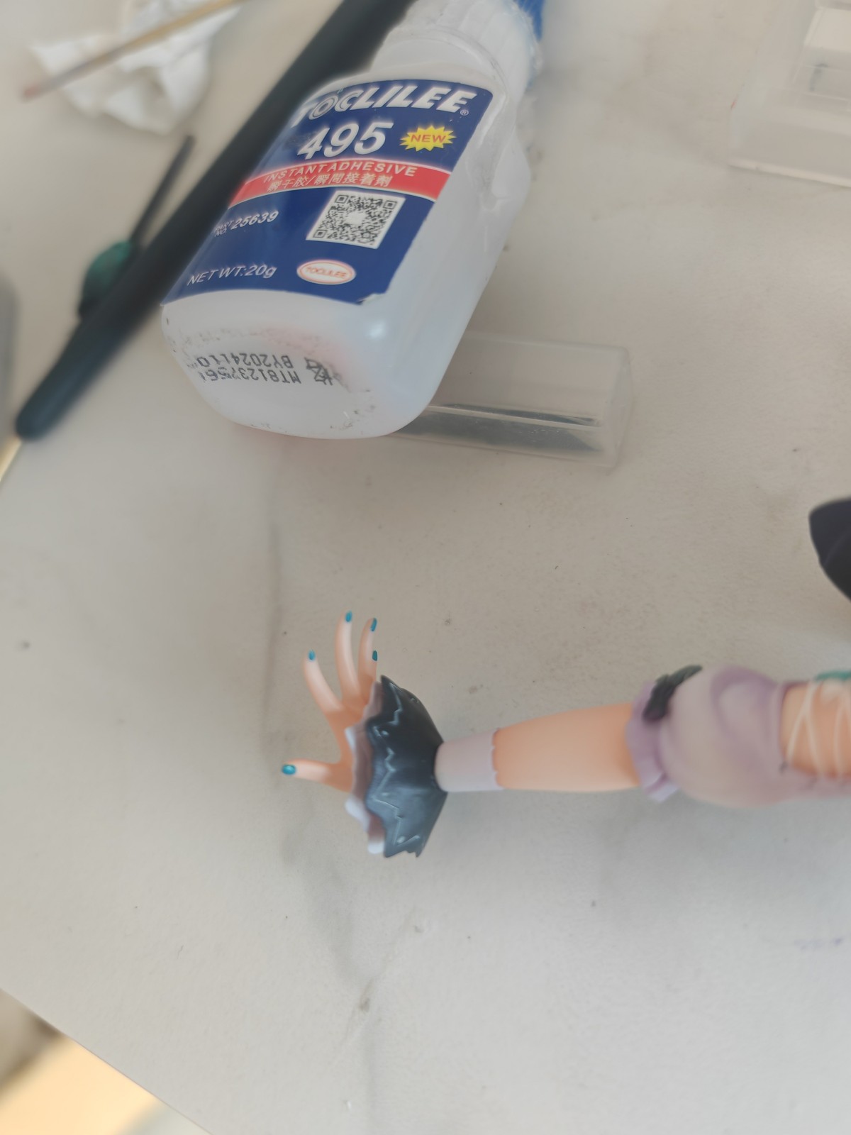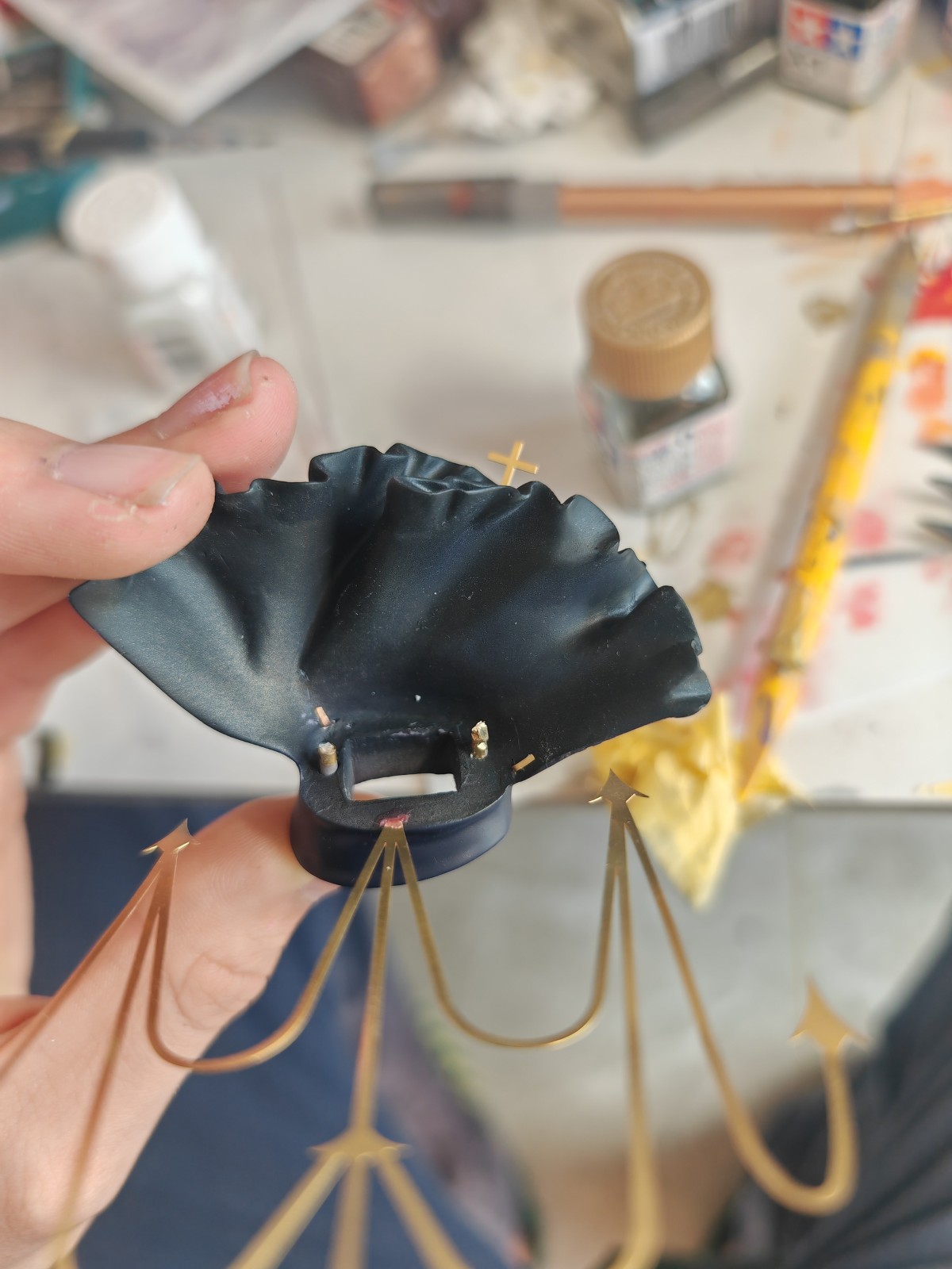 衣服这边的绳子因为正好合模线横穿,所以表面并不好,这里厚涂了珐琅,也就是利用珐琅的表面张力,让漆面包裹住瑕疵(当然,肤色部分肯定要认真打磨的)