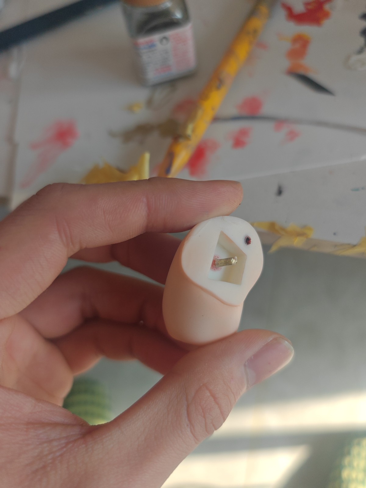 5.这个衣服间我加了两个铜桩,2mm,2.1cm左右的长桩,因为这个地方的组合度实在太差,而且还是比较关键的部位,固定不稳,整个手办体态就歪了