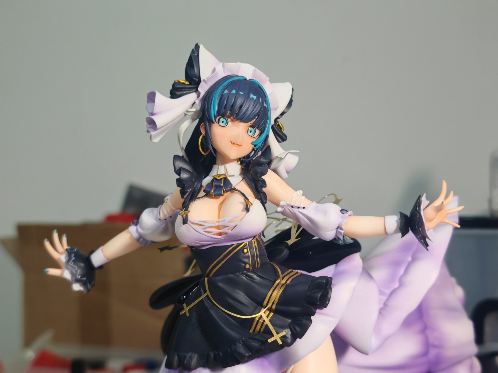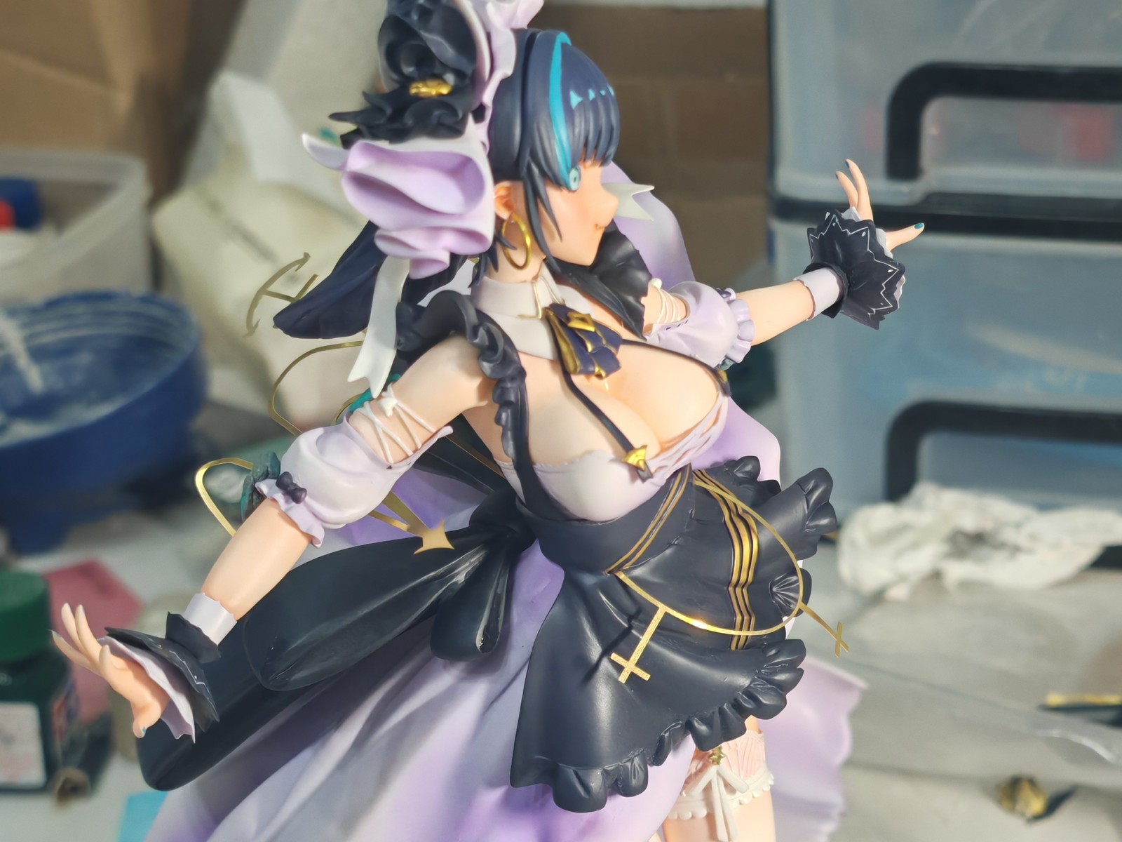 裙摆,我觉得没必要打磨深色,再喷浅色这样做阴影细节,这个曲面变化不是很剧烈,喷笔做完全够的。反而是落灰和开模的表面瑕疵很烦人