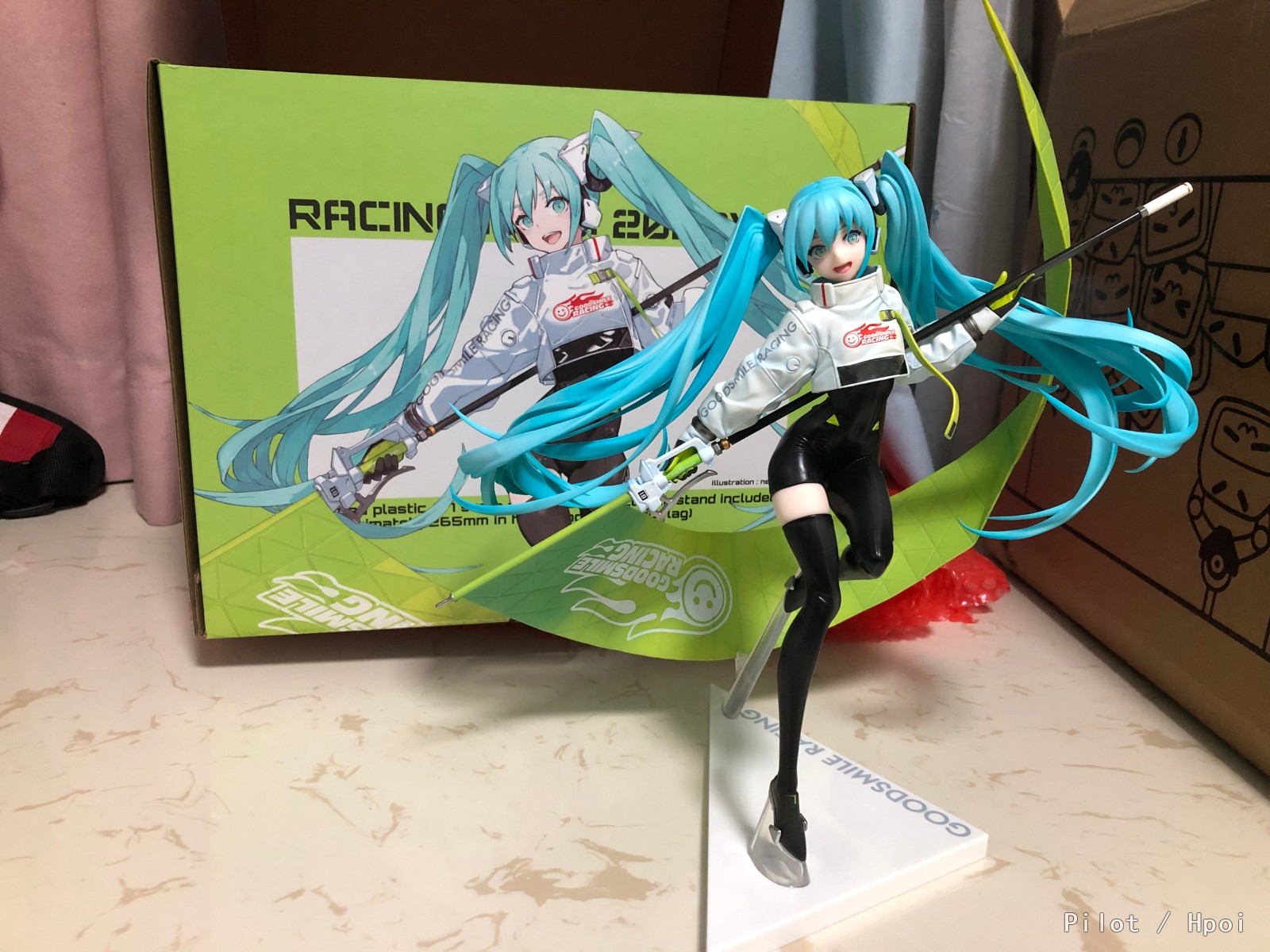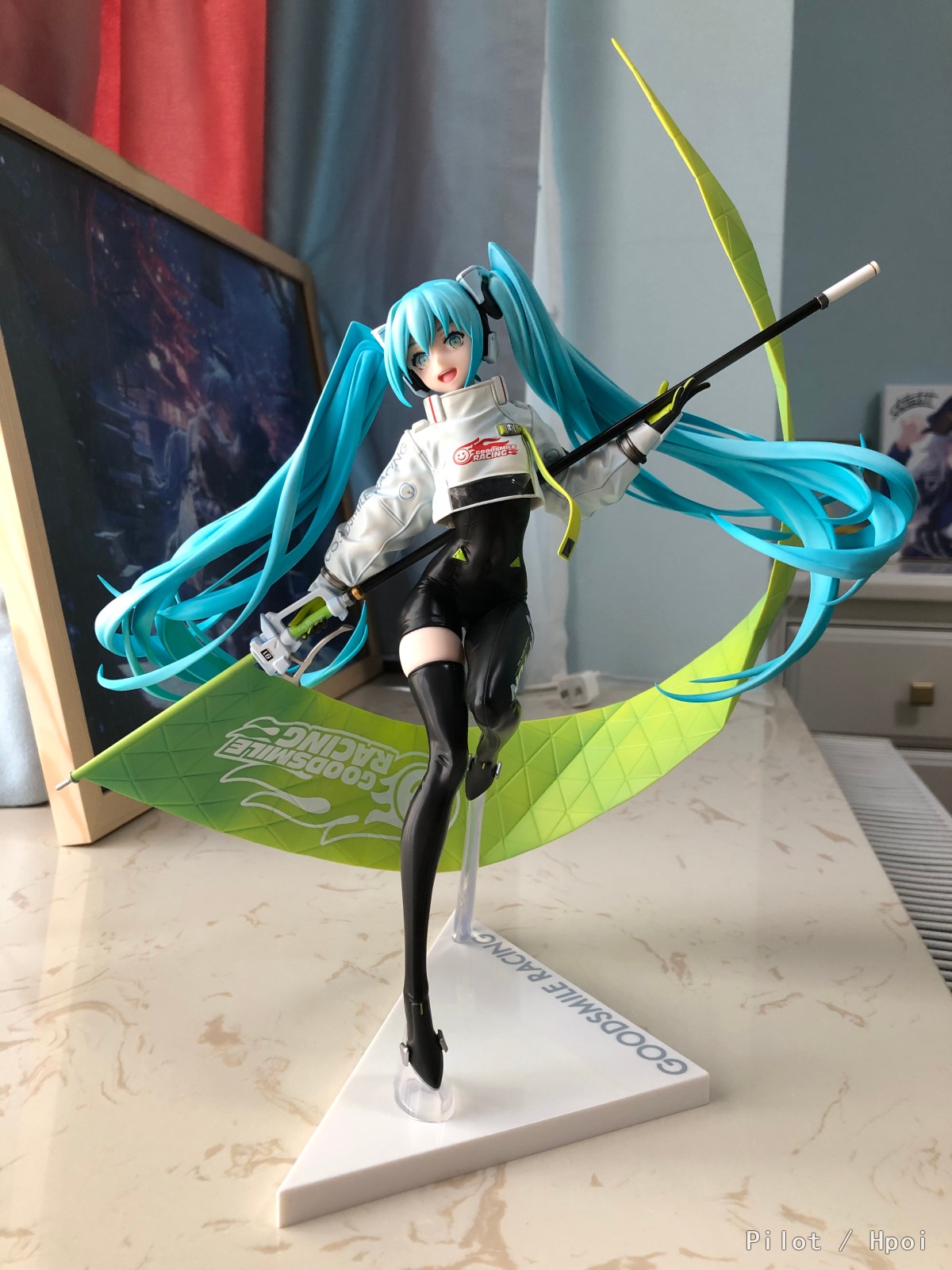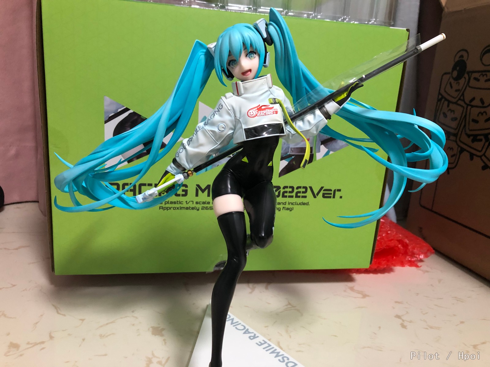 赛车未来2022开箱:D(手机渣拍好像有点糊(・・;)时间不早了择日再拍点好康的上传)让我十分甚至九分心动的一款赛车音,首先造型和身材的美感毋庸置疑,真的有人见过这样的miku还能说不好的?我反正是好了(⁎⁍̴̛ᴗ⁍̴̛⁎),满昏啊满昏💯;面相的话感觉略微少了点英气,个人感觉如果能更飒一点将是绝杀,成品感觉更偏圆润和可爱一点,但这何尝又不是一种反差呢,就算给不了满分在我这90+也是有的(*¯︶¯*)。通体的胶衣,完美的身材,姣好的面容,动态而大气的背景旗…再列下去我要在这理发店了_(:з」∠)_总的来说真的是一款很让我心动的手办,有趣的是上一款让我真心心动的是14赛车:D希望赛车音能再续辉煌GSR加把劲干出下一个我完全乐意奉上钱包的作品~((最后一丢丢吐槽,这根旗上的那层透明纸,我真的就差给它撕烂了,然后发现旗杆能拿下来_(:з」∠)_说明书里也妹有啊我还以为我给整断了笑死:D))