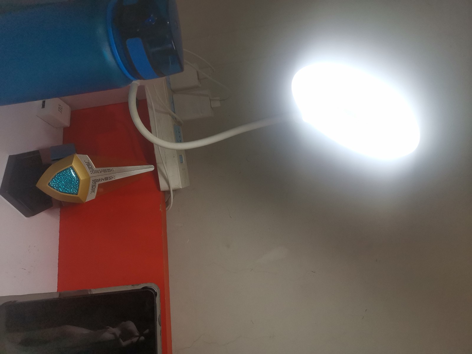 这是我的台灯,就这么个打光,手机是荣耀9x,四五年前的机子了,拍照一般,凑活