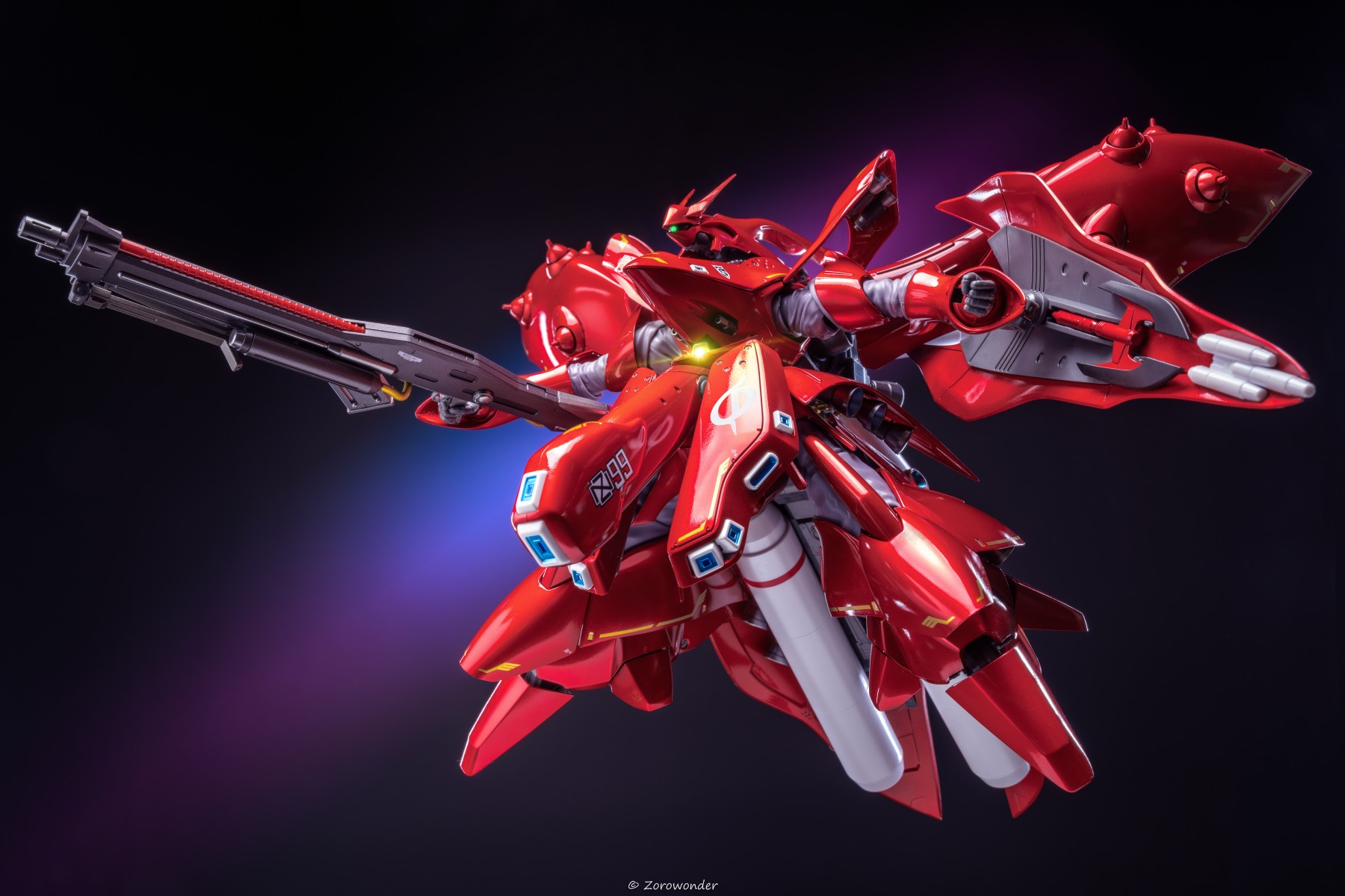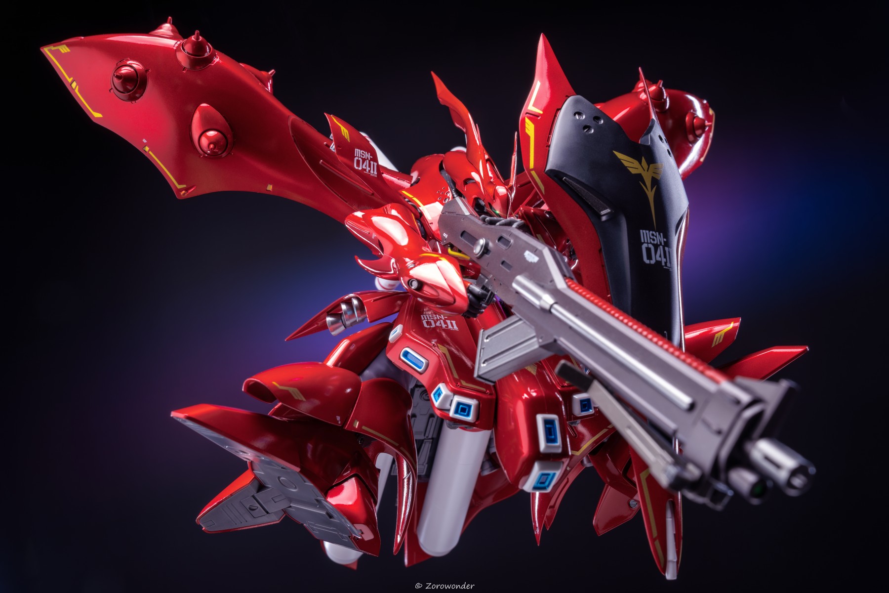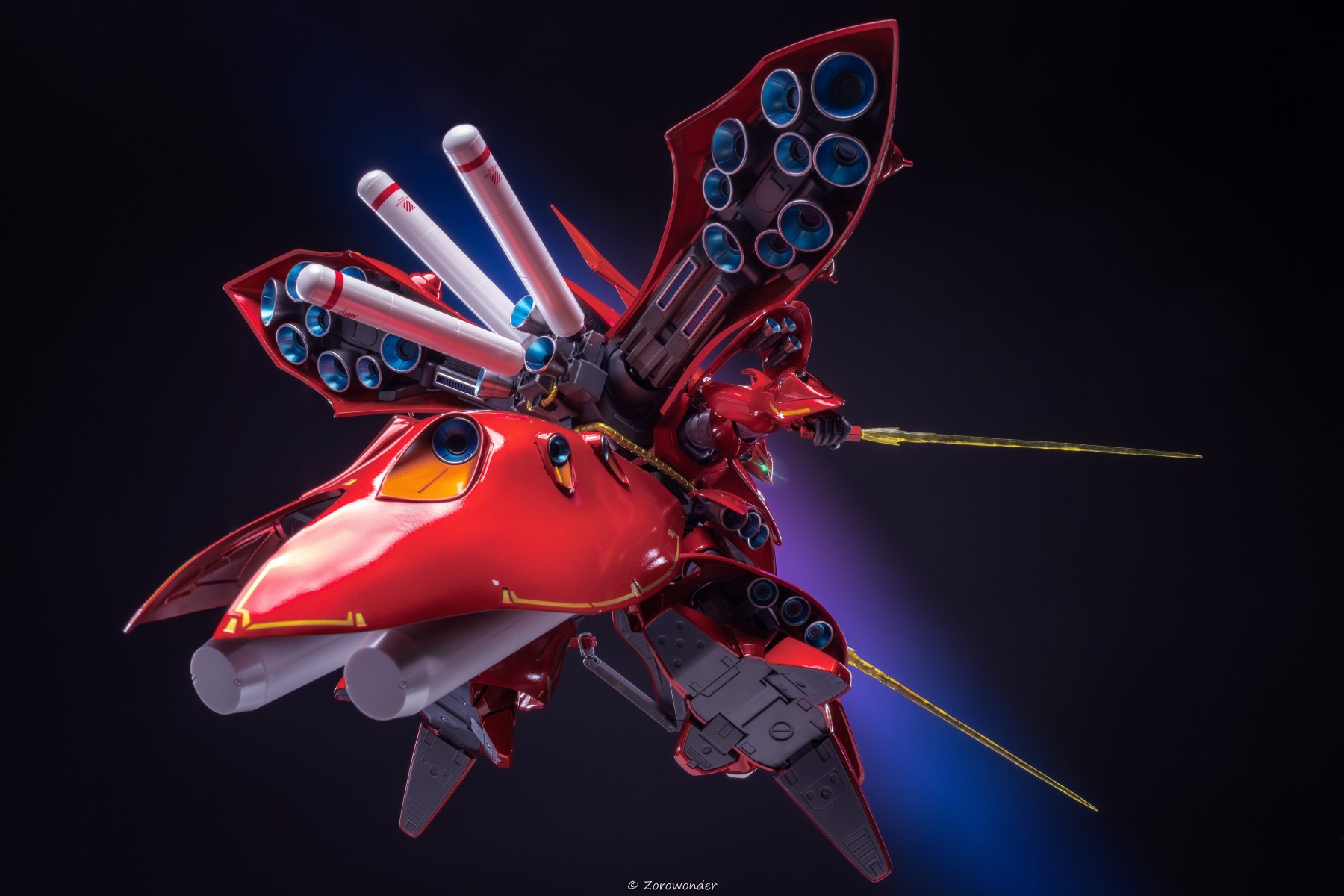 robot魂 夜莺 「留在地球上的家伙是只会污染地球被重力束缚了灵魂的人们啊!」 「地球是吞不下人类全部的自私的」 「我夏亚•阿兹纳布尔说要去肃清他们,阿姆罗!」 「这太自以为是了!」 这大家伙拍摄前期和后期都挺麻烦,前期需要尽量减少杂物反光,后期要进一步修理光面反射的瑕疵,虽然不情愿但每一张都很固执的修完了2333,红色也很难处理,感觉随时都在溢出的边缘,虽然各种麻烦,但还是希望一次性拍好这个大家伙,毕竟之后回盒就再也不想动了哈哈 这次关节把持力度都非常好,但是光面瑕疵会比较多,难顶,对于这个机设来说可动给的算比较足了,手臂伸展很灵活,下盘不太能动反而方便,转圈拍也不太用考虑怎么掰了,两个机翼可以拔下来调整避免蹭漆,玩一轮下来因为不怎么能动反而没磨损(笑)