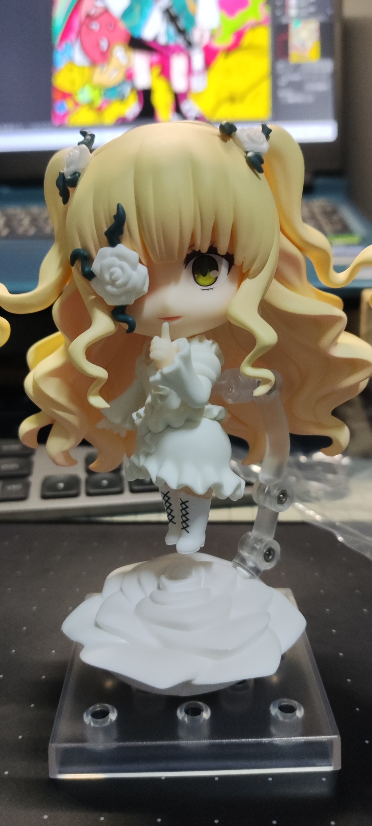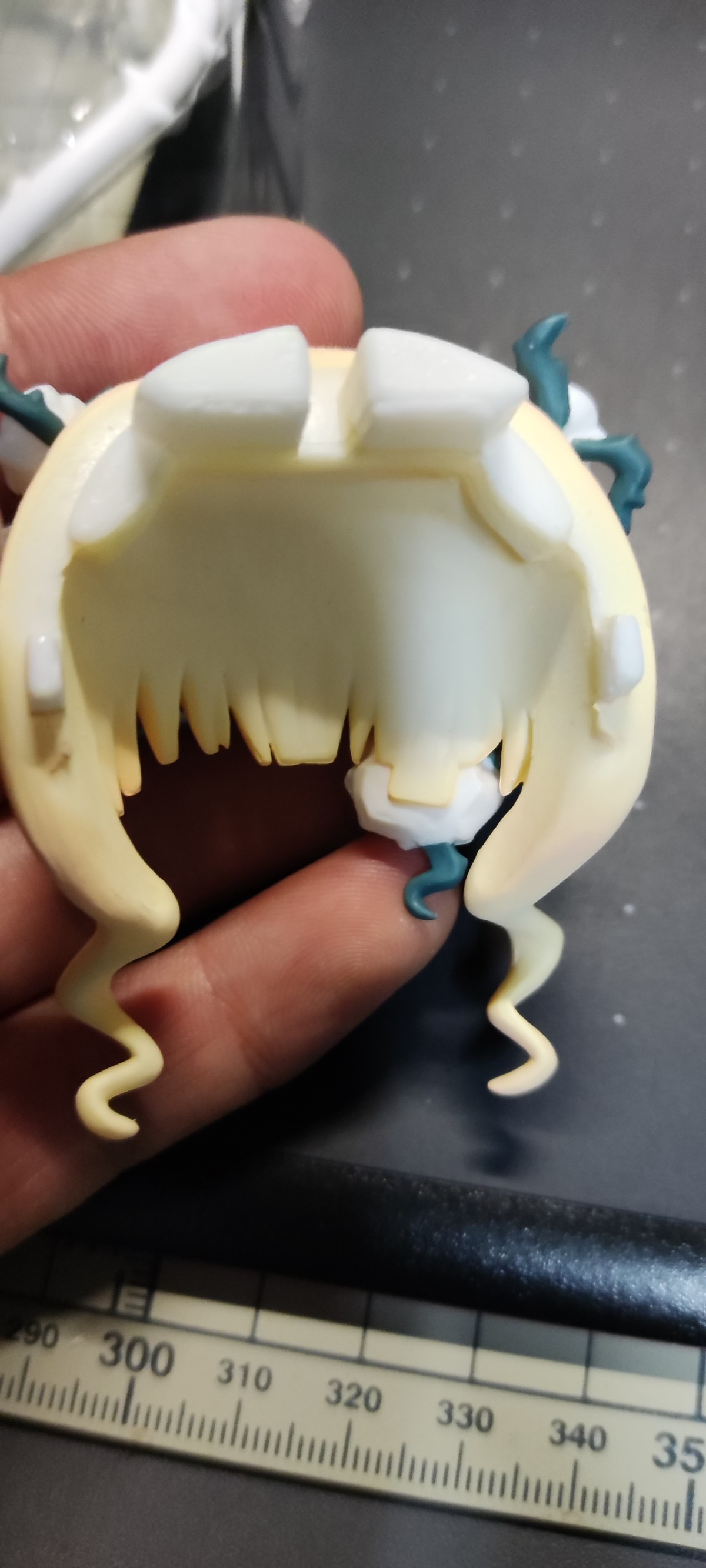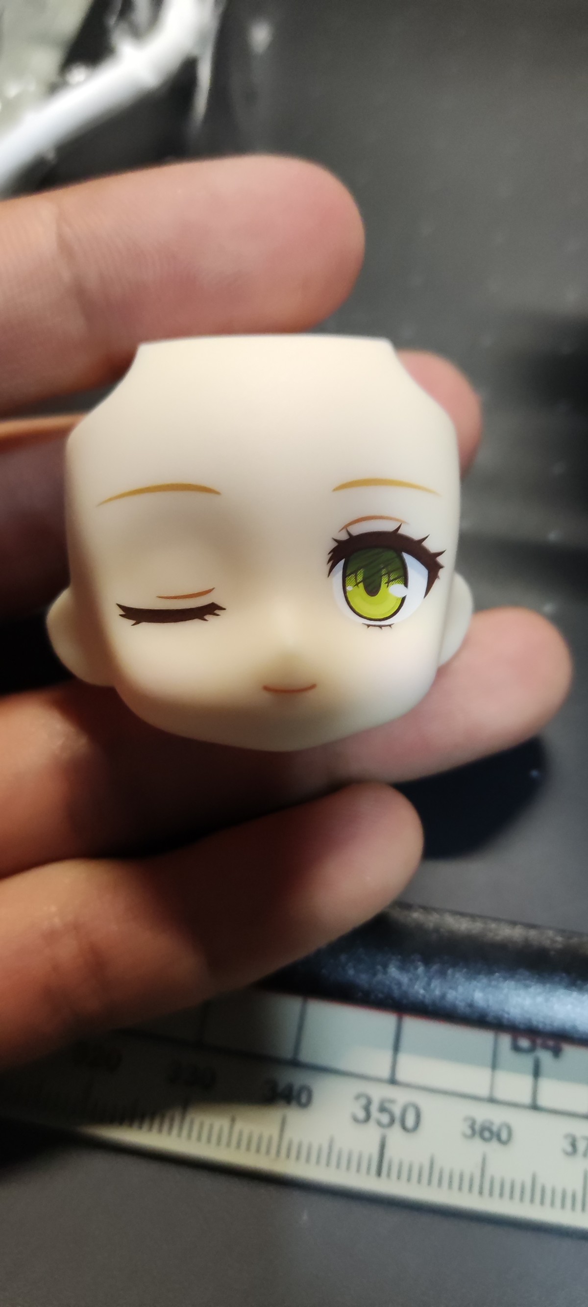 两张面雕就嘴型不一样,右眼都是眯眼状态,眼部蔷薇装饰不可拆卸,头发有阴影喷涂但一般般,都最后几款了真挺敷衍的 ̄^ ̄゜汗