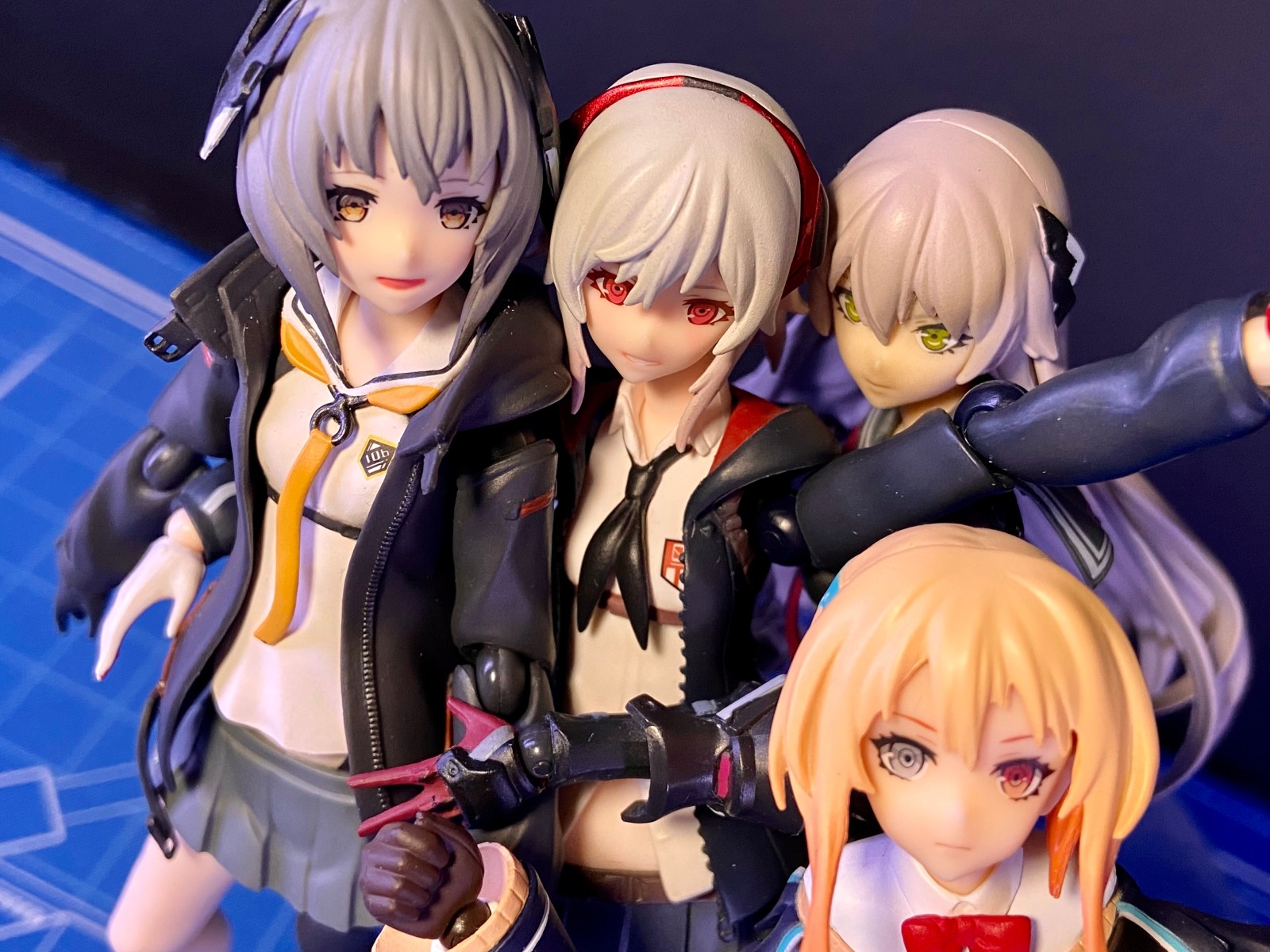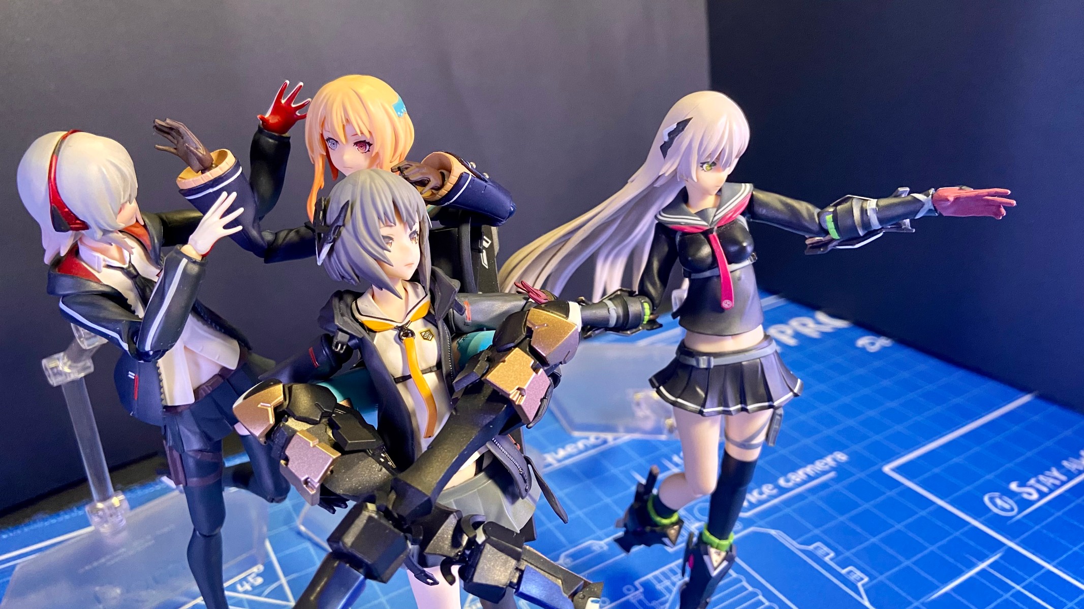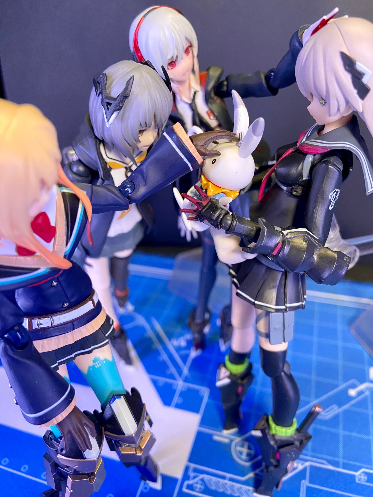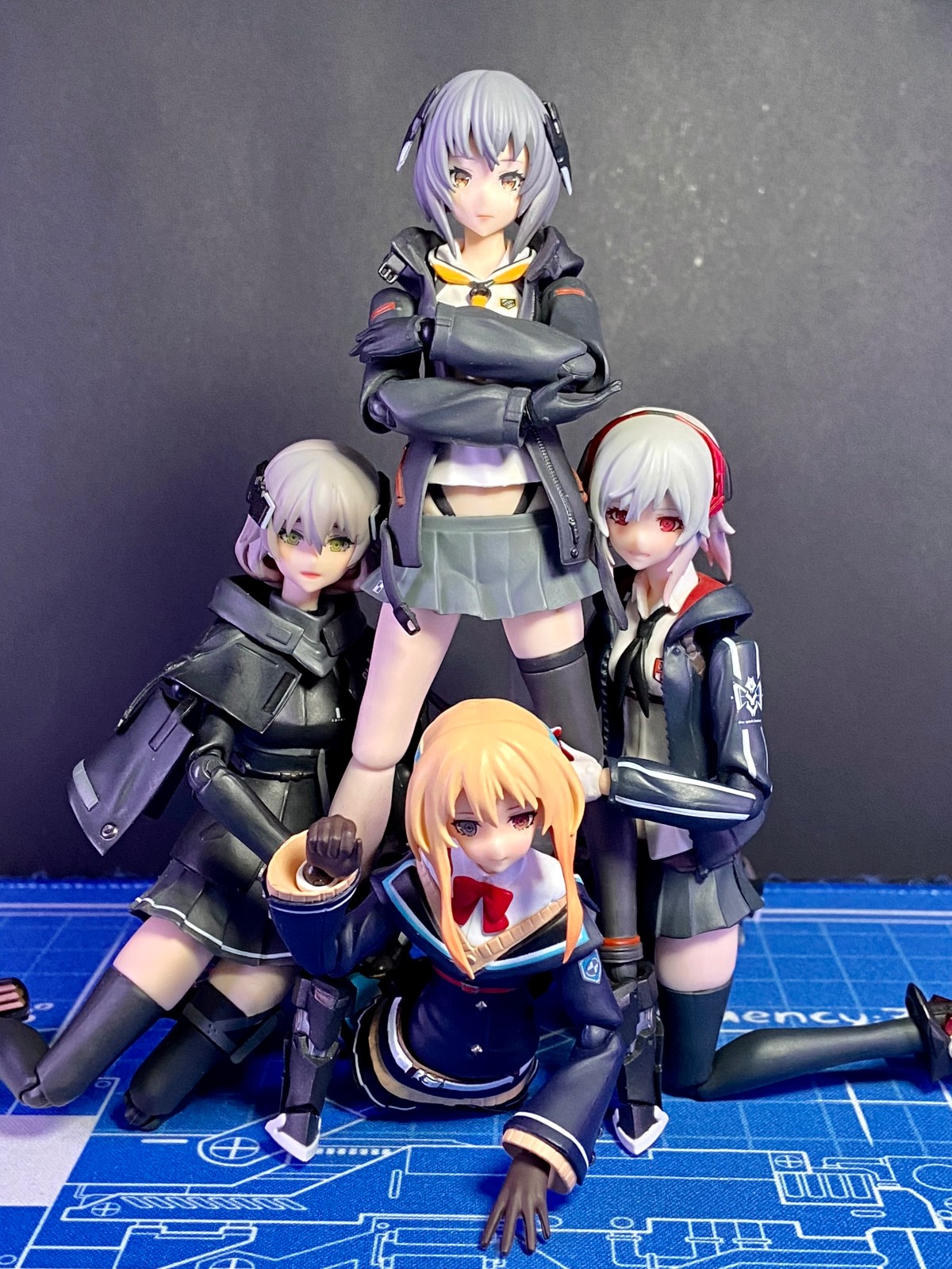 这张没有用支架,所以老是倒。一个人倒就会拉着另外三个人一起倒,给我拍笑了