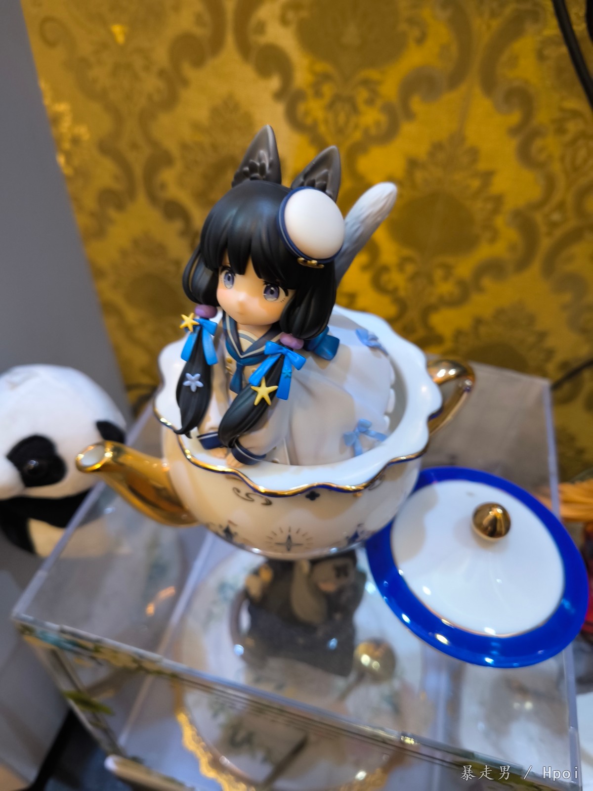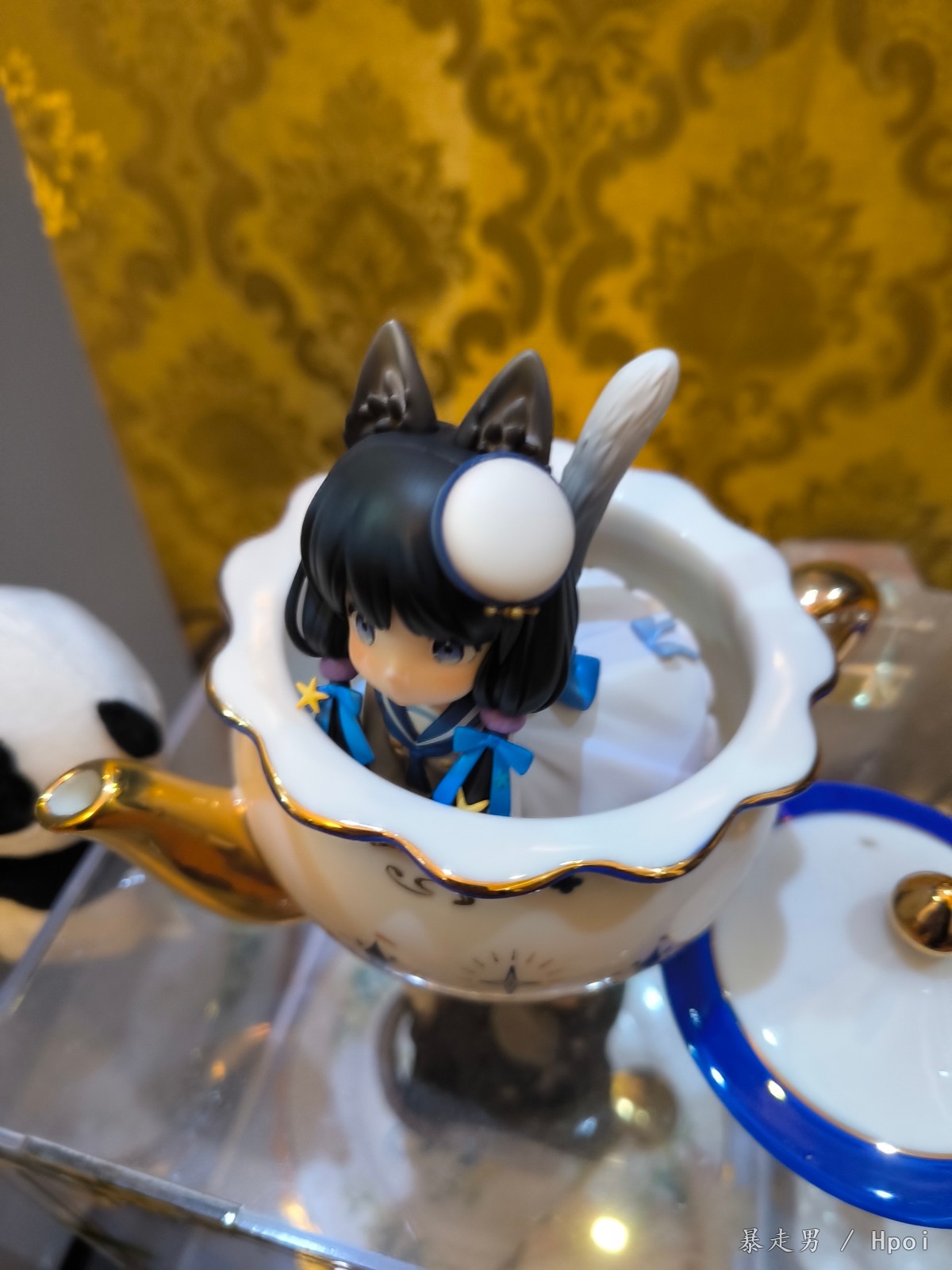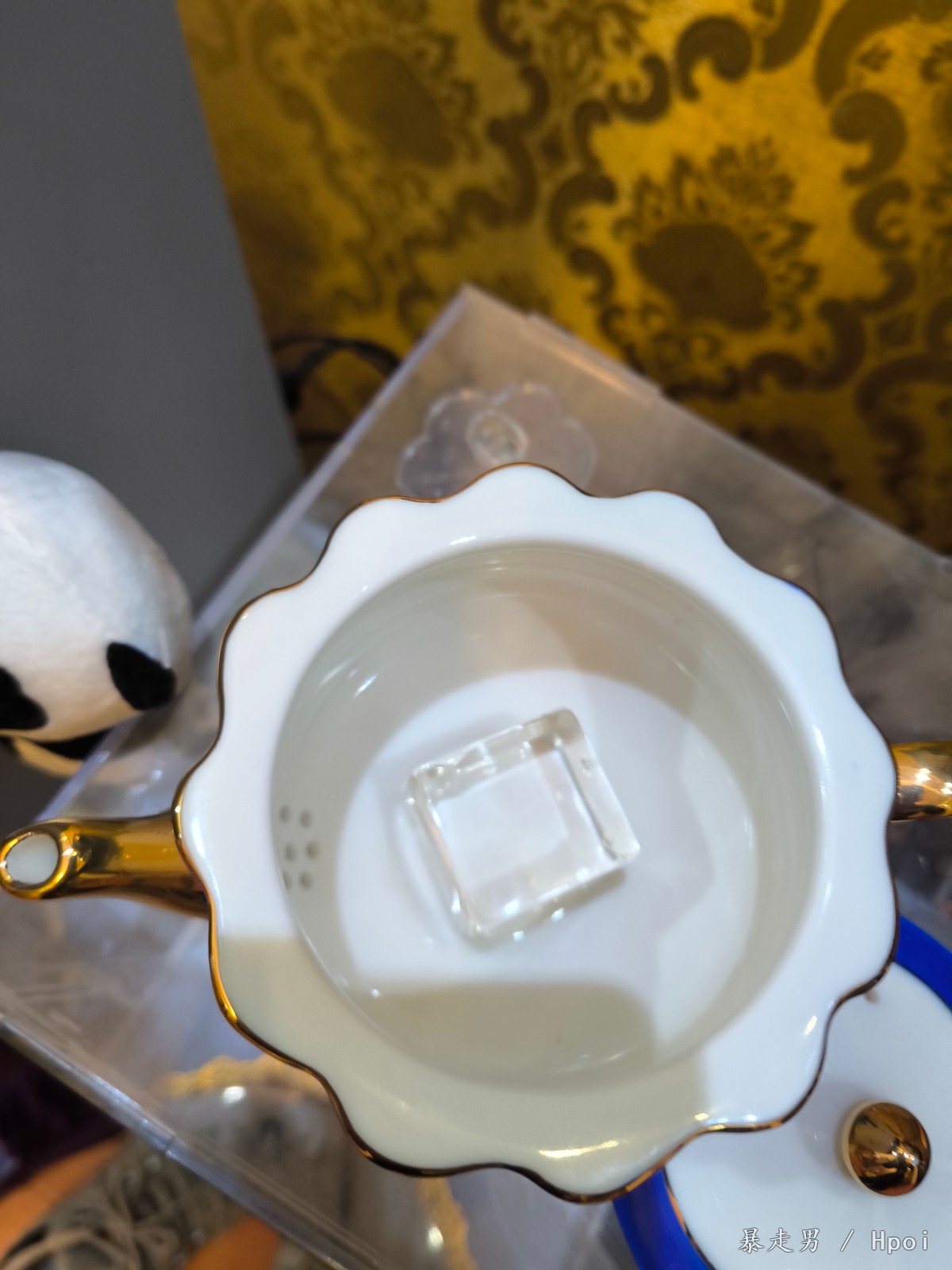 壶盖 虽然边缘有蓝边和顶部金色 但是中间的白色一圈还是略微感到有点单调 如果这部分稍微上点金丝的花纹 感觉会更好看点